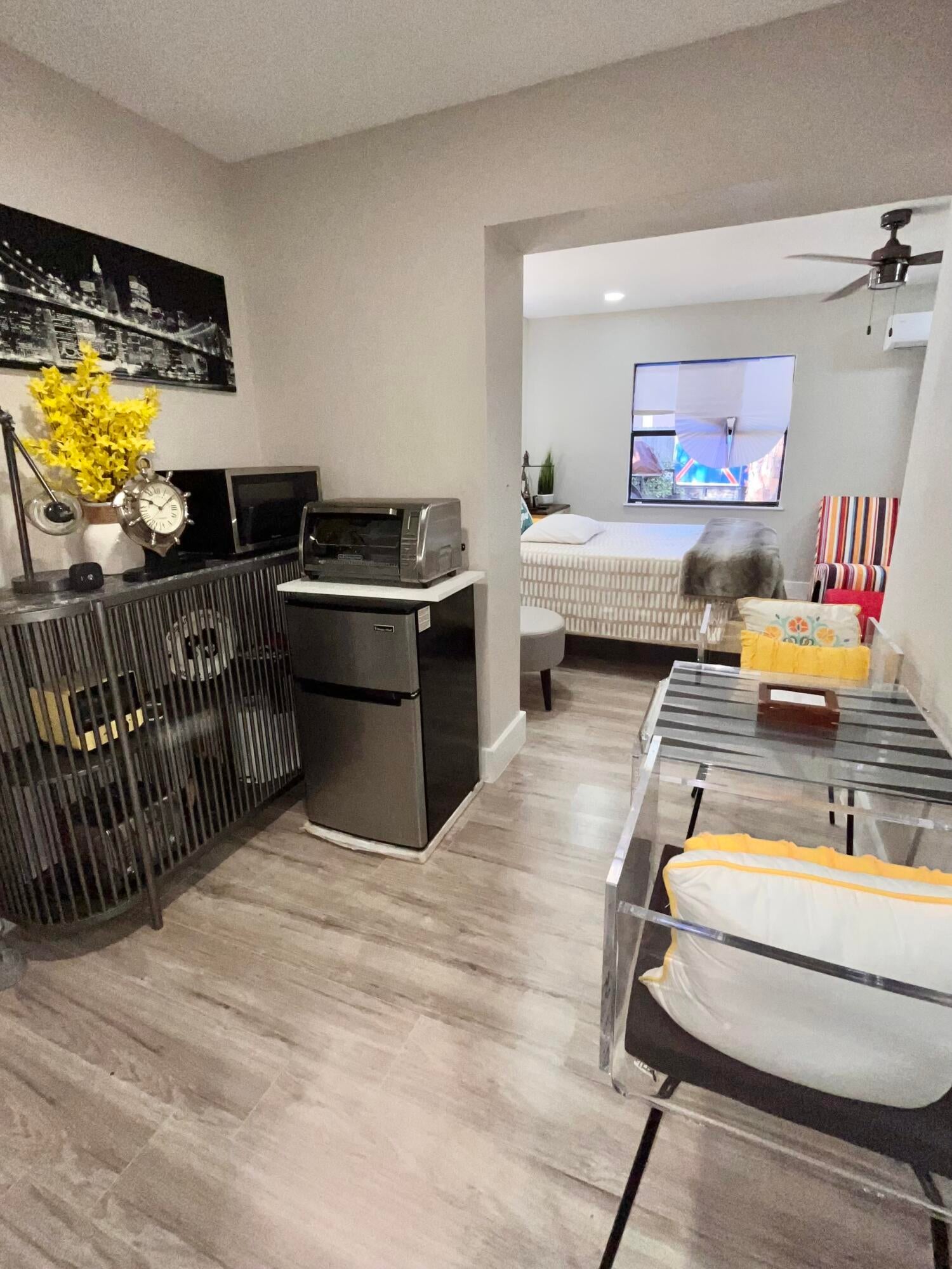 Tastefully decorated & fully furnished 1-bed, 1-bath in-law suite with a private entrance from the main house. Kitchenette offers a mini-fridge & microwave. Bathroom features a large walk-in shower & elegant tile. Rent includes utilities. Pets are allowed. Perfect for singles, students, or professionals seeking peaceful living yet close to shopping & dining and a short drive to parks and beaches. Come view this little beauty today!