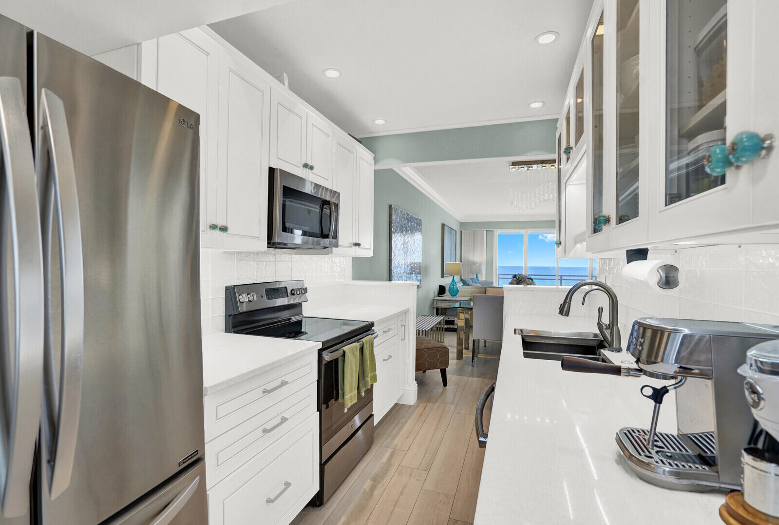 Fully renovated 7th-floor oceanview condo in Boca Reef on A1A. This rarely available top-floor unit offers direct ocean views the moment you enter, with a private patio overlooking the Atlantic and the Deerfield Beach Pier. Interior is completely updated--move in and enjoy without the hassle of remodeling. Community features: oceanfront pool, gated private beach area with tiki hut and shower, exercise room, pool table, lobby, and covered parking. Prime location with easy access to nearby restaurants and the fishing pier. Building improvements: new roof (completed), new glass balcony railings, full exterior paint, 30-year certification, and pool refurbishment. $60,000 special assessment paid in full by seller. Call for more details or to schedule a private showing!