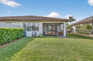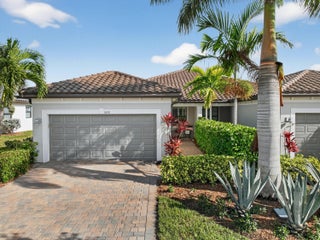 This 2-bedroom, 2-bath duplex-style home with an added office/den is situated on a premium lot within the gated Lakes at Waterway Village community. Built in 2021 by DiVosta Homes, featuring concrete block construction, impact glass windows, a concrete Boral tile roof, Hurricane proof front door and tile flooring throughout. The upgraded kitchen includes 42'' soft-close cabinets, with plenty of additional upgrades within. A 2-car garage & separate laundry room add everyday convenience, while the screened lanai & 5ft fenced in backyard create the perfect outdoor retreat. Residents enjoy resort-style amenities including a clubhouse, pool & spa, tennis/pickleball courts, fitness center, and scenic sidewalks. This home offers both comfort & convenience in a sought-after Vero Beach community.