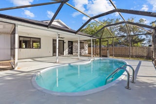 Showings must be scheduled with Showingtime. Exquisite 3-bedroom, 2-bathroom pool home, fully renovated in 2025. The gourmet kitchen boasts luminous Calacatta quartz countertops, bespoke soft-close shaker cabinetry, and premium high-end finishes, designed to inspire culinary excellence. Luxurious spa-inspired bathrooms feature sophisticated tile work, free standing tub, gorgeous vanities, and contemporary fixtures, elevating daily rituals to a serene escape. Impeccable waterproof laminate flooring, freshly painted interiors and exteriors, and brand-new, top-tier appliances blend style with functionality. No HOA restrictions. Seller is offering $3000 credit for fiberglass pool paint. 2025 Roof, 2018 AC, 2025 Water heater.