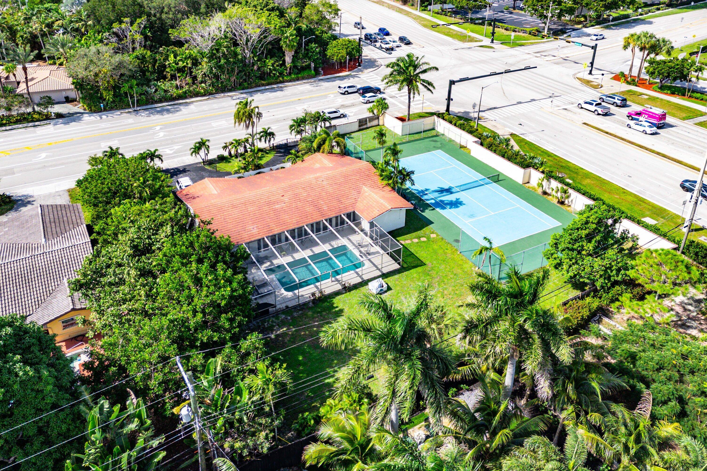 Great location in East Boca--just 25 minutes between FLL and WPB airports. Rare, large corner private lot (.58 acre), fully fenced and perfect for dog lovers. Zoned R-1-C, allowing not only residential use but also certain conditional non-profit uses (Sec. 28-340), such as school, child/adult care, or social center, with City approval. This property is an investment with many possibilities. It offers strong rental income potential, seasonally or annually. The current one lot can be converted back into two buildable lots with the variances required by the City. You can keep it as one lot for residential and conditional use, or build two homes on each deeded lot and sell. A tennis player's dream--this unique property offers many options. All nine high-end impact windows and thefront door were replaced in 2024. The back features four sets of custom impact French doors. Solid CBS structure with a 7-ft CBS wall surrounding the tennis court. Tile roof has had most valleys replaced. Includes a cabana bathroom and sauna. The separate entrance studio can be used as a fourth bedroom, guest suite, or rental. Call today to schedule a showing.