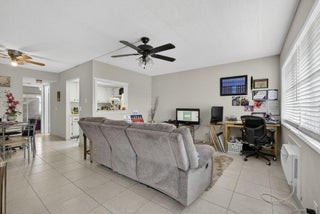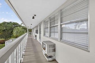 Bright and comfortable one bedroom, one bathroom second floor condo in the desirable 55 plus community of Century Village. Enjoy tile flooring throughout, one wall mounted AC, and a screened balcony overlooking a peaceful garden setting. Just steps from the community pool, this home offers exceptional convenience. Perfect for year-round living or investment thanks to strong rental demand. Century Village provides gated security along with a clubhouse, fitness center, pools, tennis, pickleball, theater, walking paths, and a courtesy bus. Cable and internet are typically included, making this an excellent value in West Palm Beach.