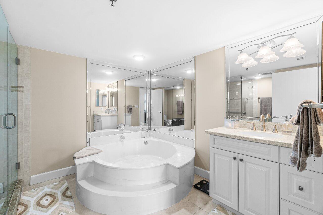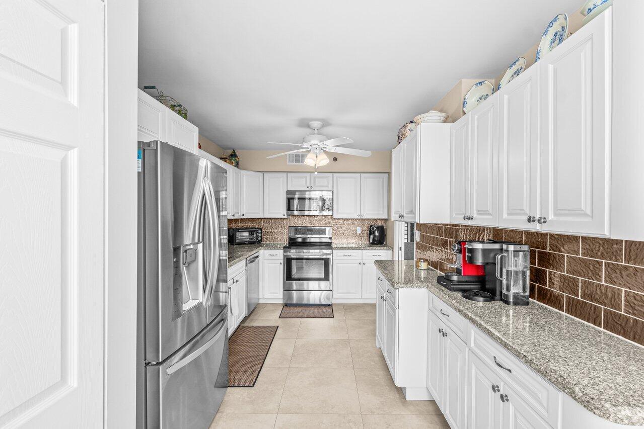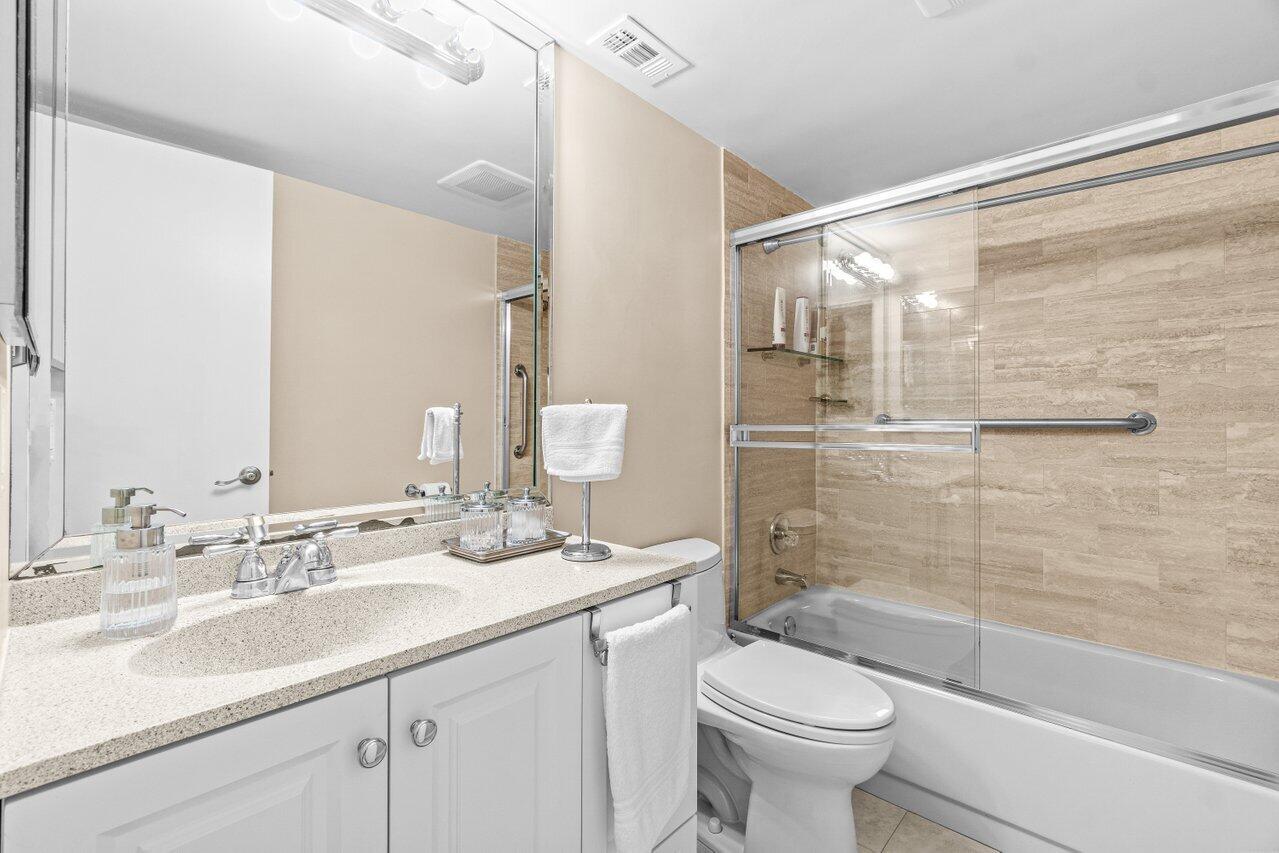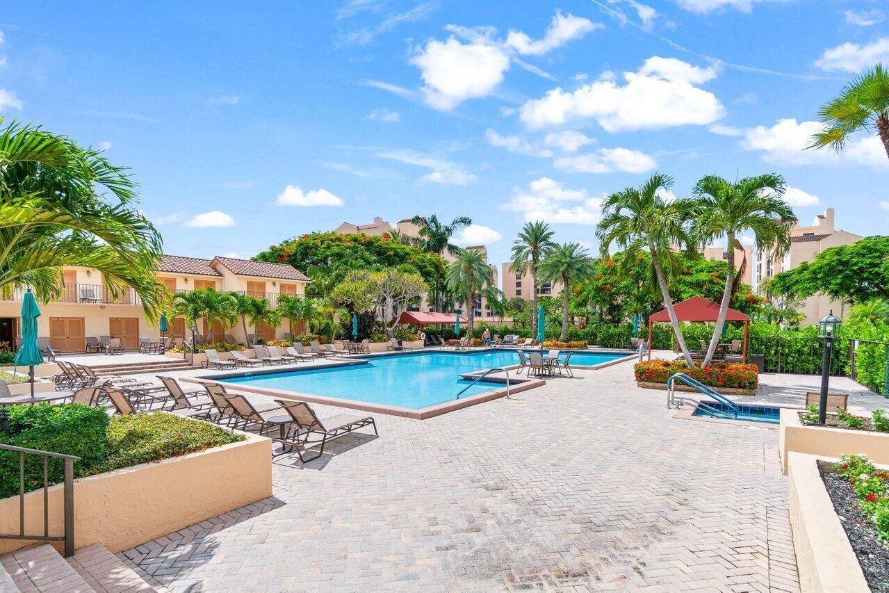 High-floor Promenade condo with 3 bedrooms, 2.5 baths, and stunning golf course and northern views. Expanded living space with impact glass. Second patio is glass-enclosed with shutters and screens. Beautifully updated throughout with large tile floors, smooth ceilings, and renovated kitchen and baths. Den/third bedroom features a stylish barn door. Kitchen offers white cabinets, granite counters, stainless appliances, French-door fridge, and custom backsplash. Electrical panel replaced; A/C 2022; updated water heater and washer/dryer. Primary suite has built-in closets and an updated bath with double sinks and Corian counters. Plantation shutters, upgraded powder room, and large patio storage. Enjoy a pool, on-site manager, exercise room, meeting room, walking paths and more.