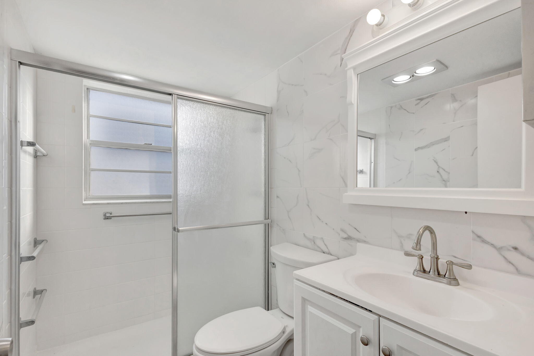 WOW! MOVE IN READY BEAUTIFULLY RENOVATED 2 BED 1.5 BATH 2ND FLOOR CORNER IN CENTURY VILLAGE HOUSING FOR ADULTS 55+ WELL MANAGED BUILDING WHICH HAS A LIFT. LARGE CERAMIC TILE FLOORING THROUGHOUT, STUNNING ,KITCHEN COMPLETE WITH WHITE SHAKER CABINETS, QUARTZ COUNTERTOPS, 2 SINKS AND NEW STAINLESS STEEL APPLIANCES. UPDATED BATHROOMS EXTRA WINDOWS PROVIDING EXTRA SUNLIGHT.Roomy closets (one walk-in), enclosed lanai, laundry room, assigned parking spot plus visitor parking available; local bus for errands/shopping both within & outside The Village; OME & ENJOY RESORT STYLE LIVING IN THIS GATED COMMUNITY FOR ADULTS 55