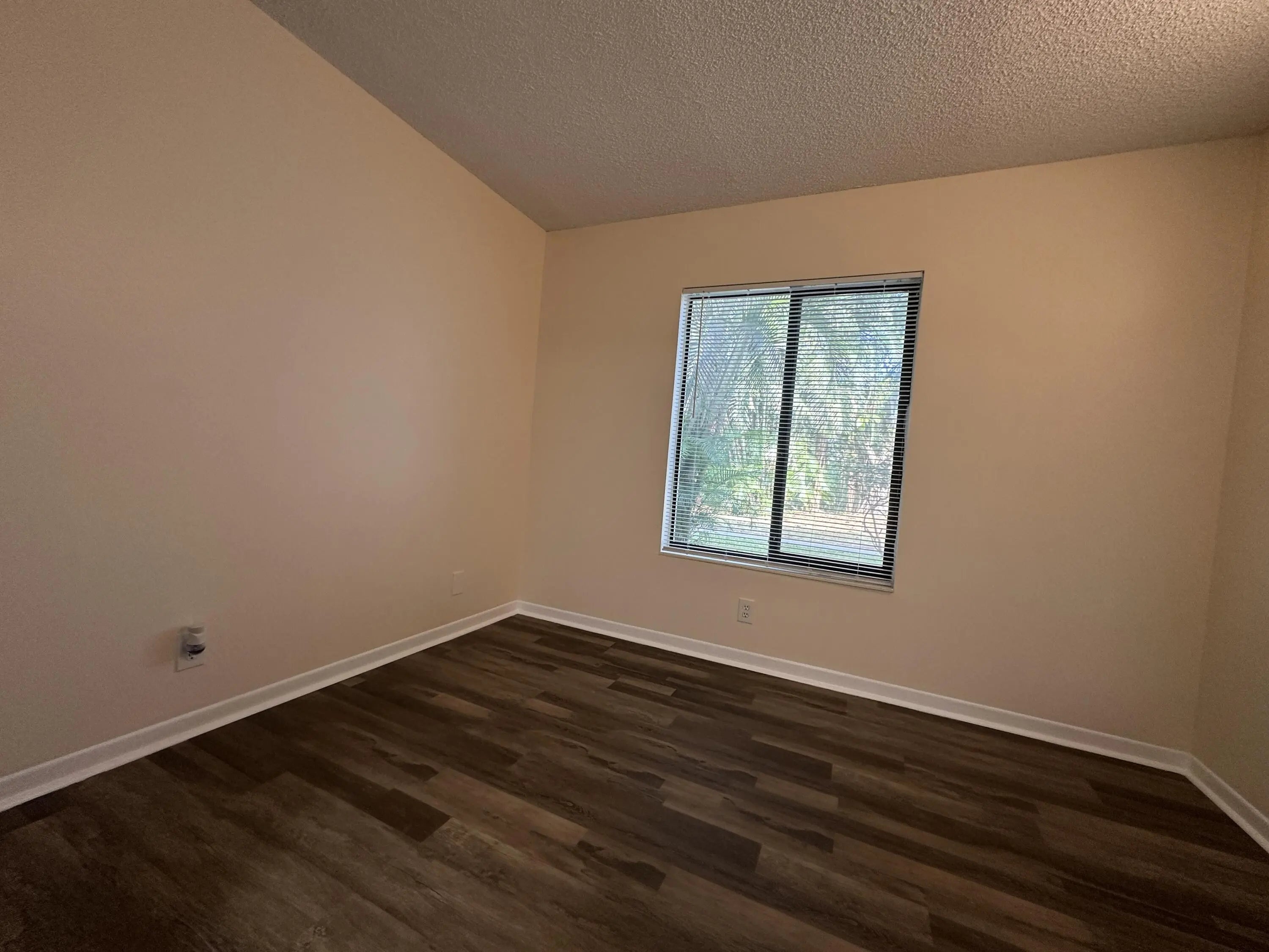 Spacious 2/2, Corner Unit with Screened Patio in Gated Community with Pool, Spa, Tennis Courts and a Clubhouse, which can be reserved for special events. First floor, plenty of parking, beautiful grounds with wide open spaces, big oak trees, benches, grills and picnic tables overlooking the lakes, which you are allowed to fish. Convenient location, West of Military Tr, North of Community Dr. Brand new Luxury Vinyl Flooring, Refurbished Kitchen, Newer Washer & Dryer in the unit, brand new blinds and fresh paint throughout. Clean and ready for move in after board approval. Cable, Water, Internet included. Small dog considered on a case by case basis.