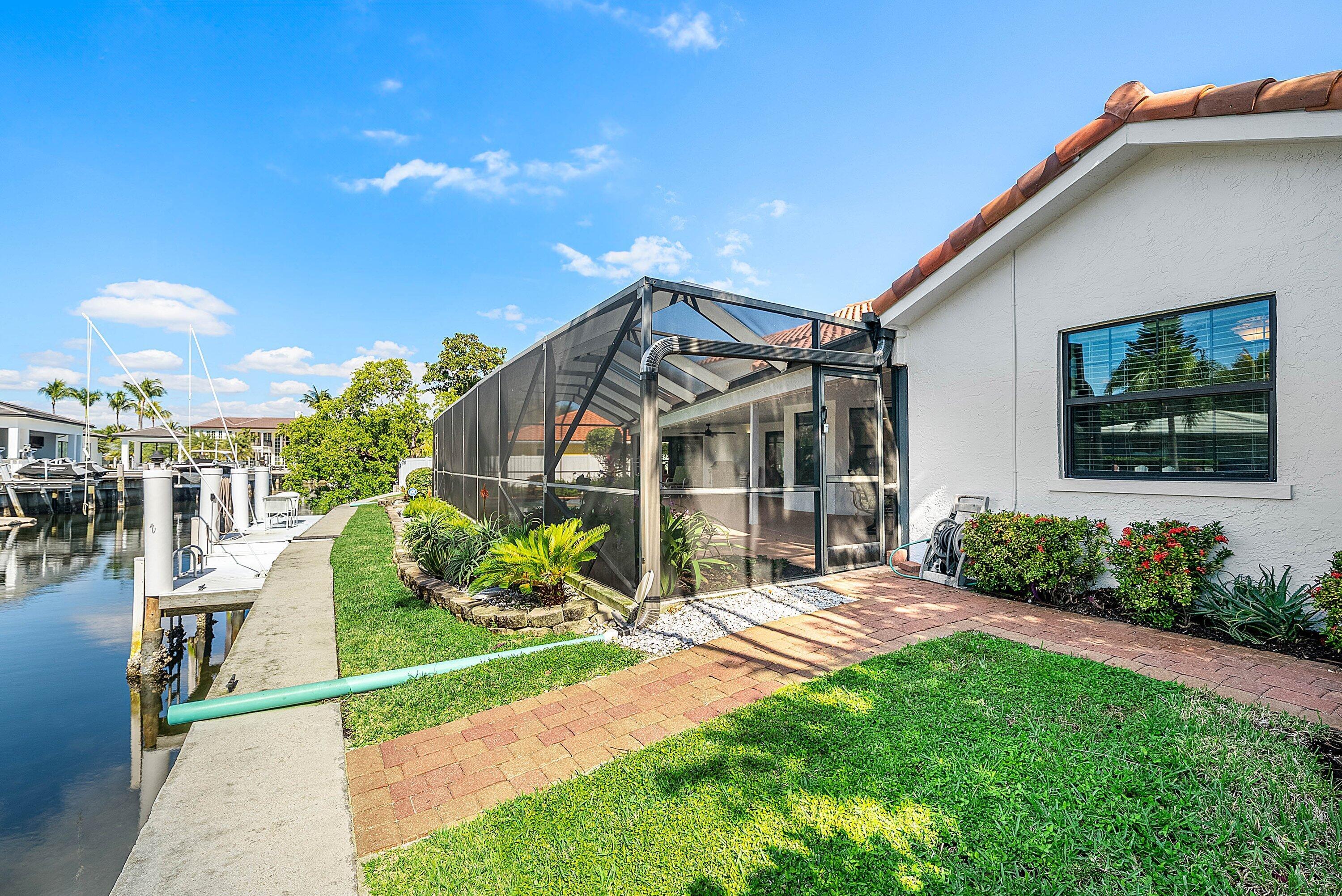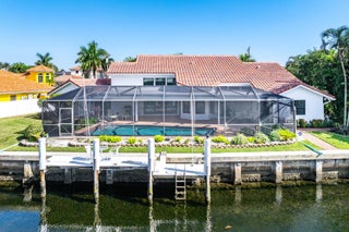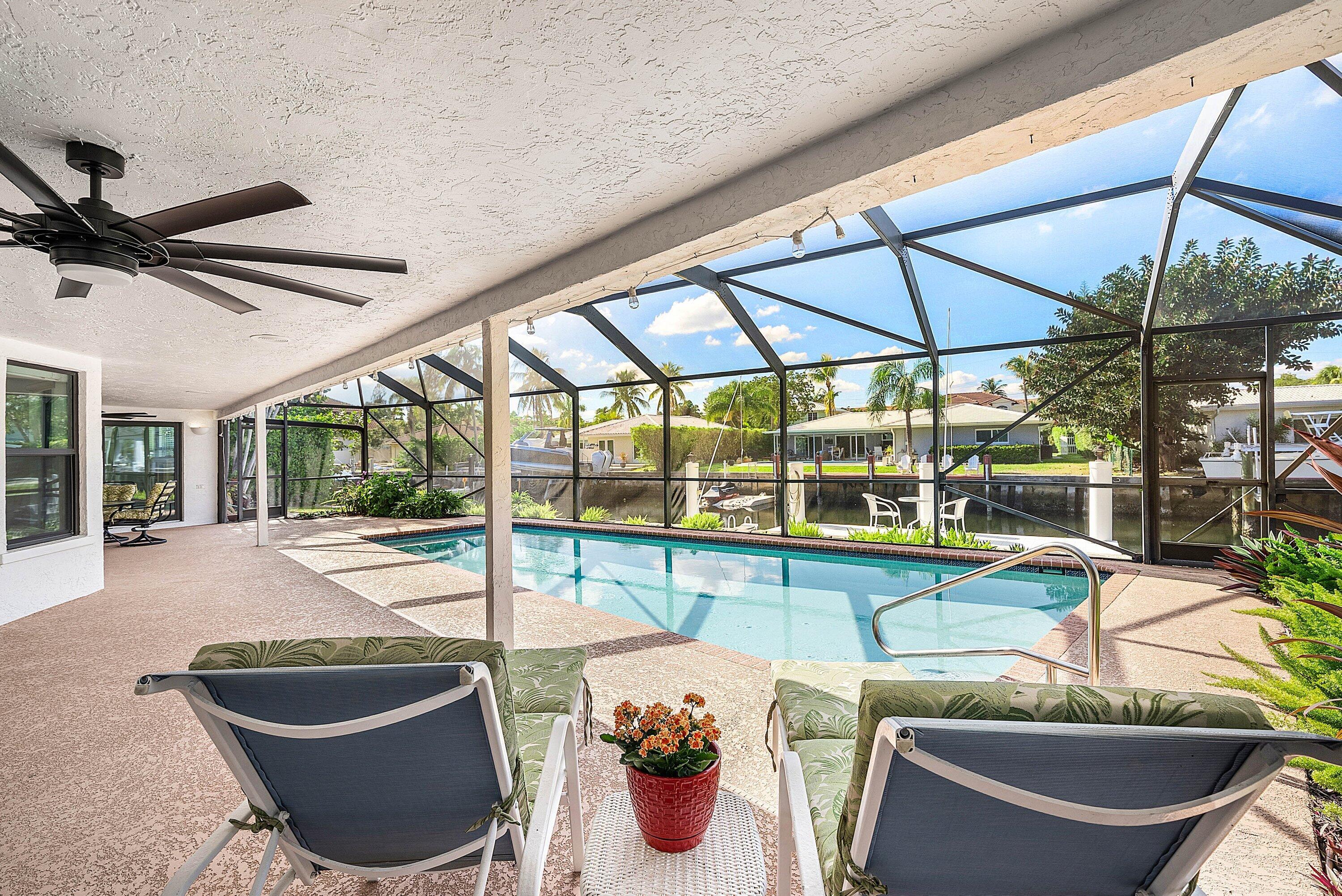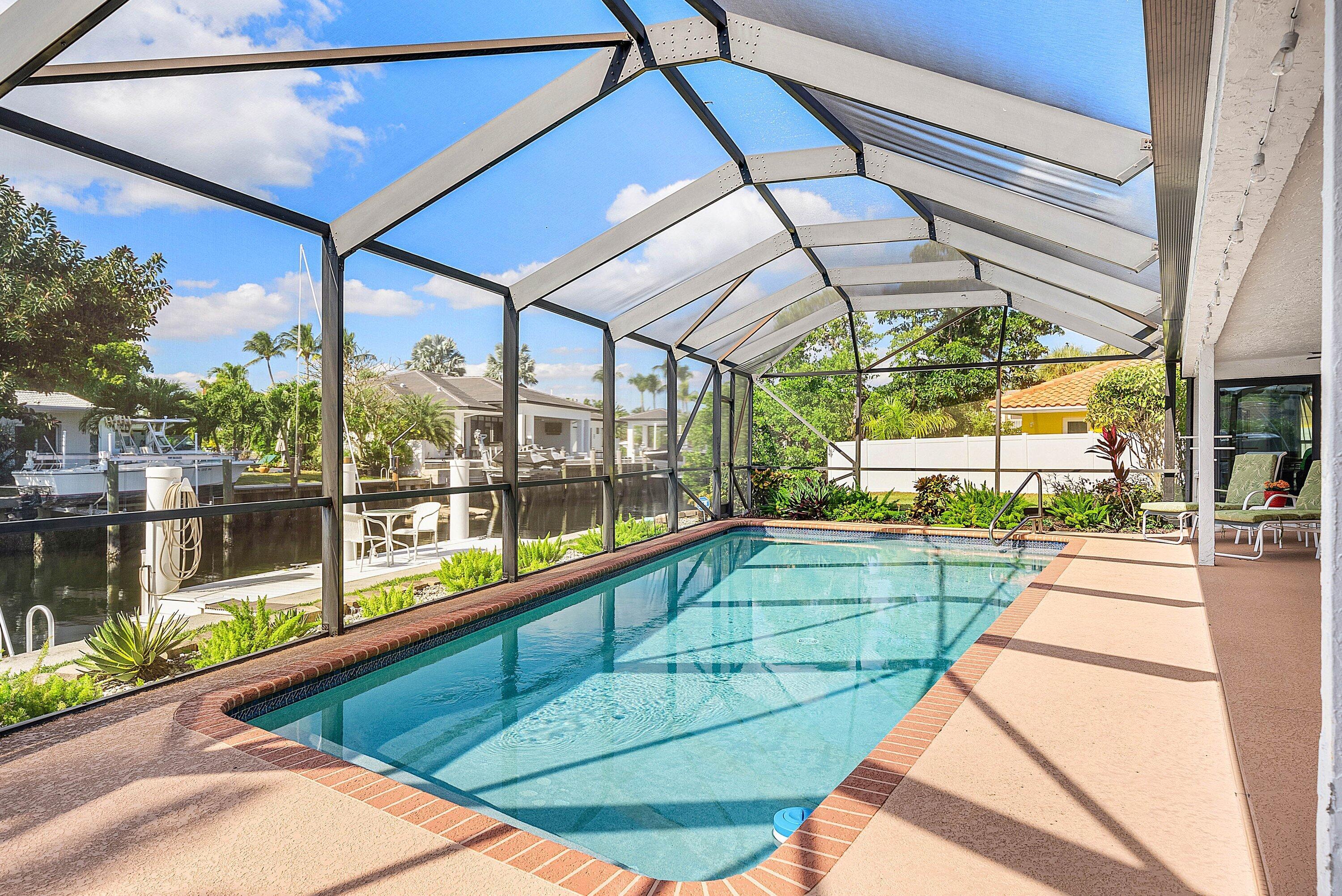 Discover an exceptional opportunity in Caribbean Keys with 130 feet of prime deepwater frontage, just one canal off the Intracoastal. Built in 1988, the residence features soaring vaulted ceilings in the living room, family room, and kitchen, along with all hurricane-impact windows, sliders, and garage door. The desirable split-bedroom floor plan includes a spacious, opened-up kitchen with Corian countertops, a new Bosch dishwasher, a newer microwave, breakfast nook, formal dining area, formal living room, and a comfortable family room. The exterior was freshly painted two years ago, and the screened pool and patio area offer an inviting space to relax, complete with a generous covered section and heated pool. Additional highlights include a brick paver driveway, easy mechanical accessalong the side yard, a quiet cul-de-sac location, Roof (2016), water heater (2018), and two HVAC units with UV lights and ozone (2021 and 2010). An incredible valuetruly a best buy in the community.