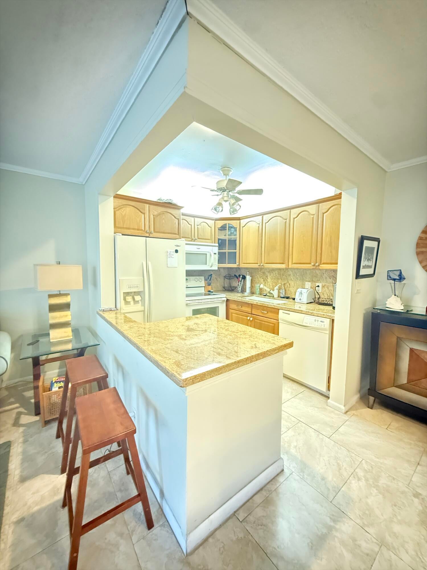 COME AND SEE THIS GORGEOUS 2nd FLOOR CONDO | 1 BEDROOM/ 1.5 BATHROOM VERY WELL MAINTAINED, IN A PRESTIGIOUS GATED 55+ COMMUNITY OF CENTURY VILLAGE | LED Custom Lighting | Eat-In Kitchen || Wood Cabinets | Pantry | Formal Dining Room | Large Primary Bedroom | Large Closet | Ensuite | Screened Covered Balcony | Tropical Lush Manicured Landscaping | Assigned & Guest Parking | Laundry Facilities | Resort-Like Amenities Offer, Clubhouse, Theater, Card room, Community Room, Billiards. Shuffle Board ,Tennis , Pickleball ,Bocce, Ball and Outdoor & Indoor Heated Pools, Shuttle & so much more! Rent After 1 Year | Minutes to Downtown, Fine Dining, Shops, PBI Airport, I-95, Beaches | PRESENT ALL OFFERS!