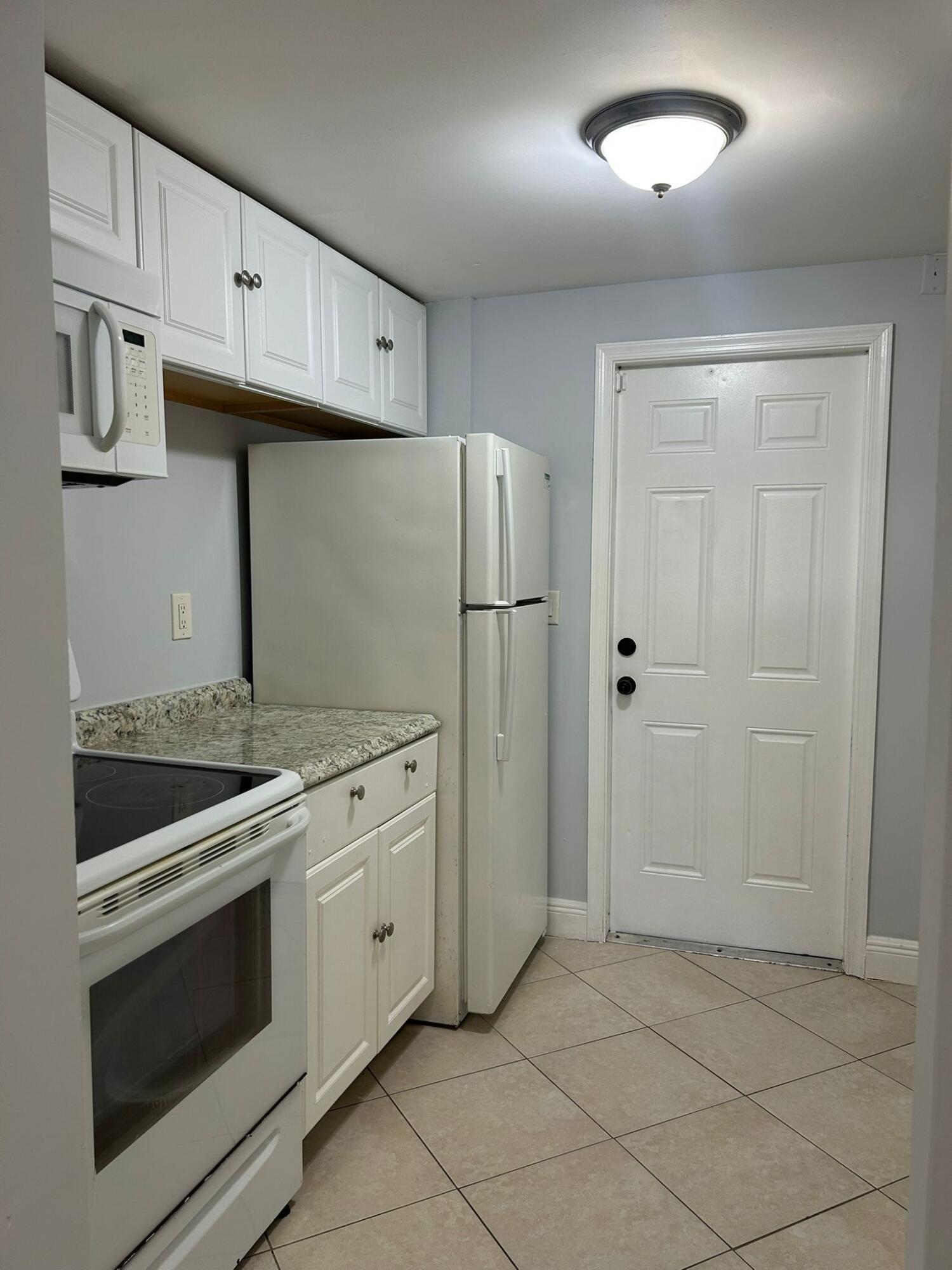 Charming Spanish style one bedroom one bath located two blocks from intercoastal. all tile flooring, white kitchen cabinets, stone counter tops, shower and bathroom