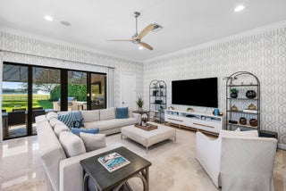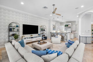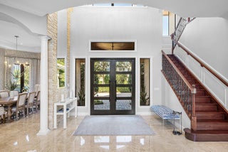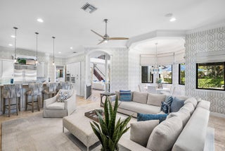 An Estate that will take your breath away! Elegant and expansive, 6,594 tot sq ft, waterfront home situated on almost .5 acres of pristine and lushly landscaped property! Here are just some of the amazing features: Expanded Stone Facade, Impact Glass, 2025 Roof, Stone Fireplace Mantle, Polished Marble Flooring, Personal Elevator, Quartzite Kitchen Counters, Sub Zero Fridge, Farmer's Sink, Induction Cook-top, Custom Seating in Dinette, Home Theater boasting 120'' Projection Screen, Garage Organizers, Complete Summer Kitchen, Newly Refinished Pool with Travertine pavers, Sand/Fire Pit and so much more... This is a ''Must See''. Equus has a 7,000 Clubhouse with Athletic Center, 2 Har-Tru Tennis Courts, Pickleball (Coming Soon) Tot Lot & Billiard Room, Pool/Spa and on-site manager.