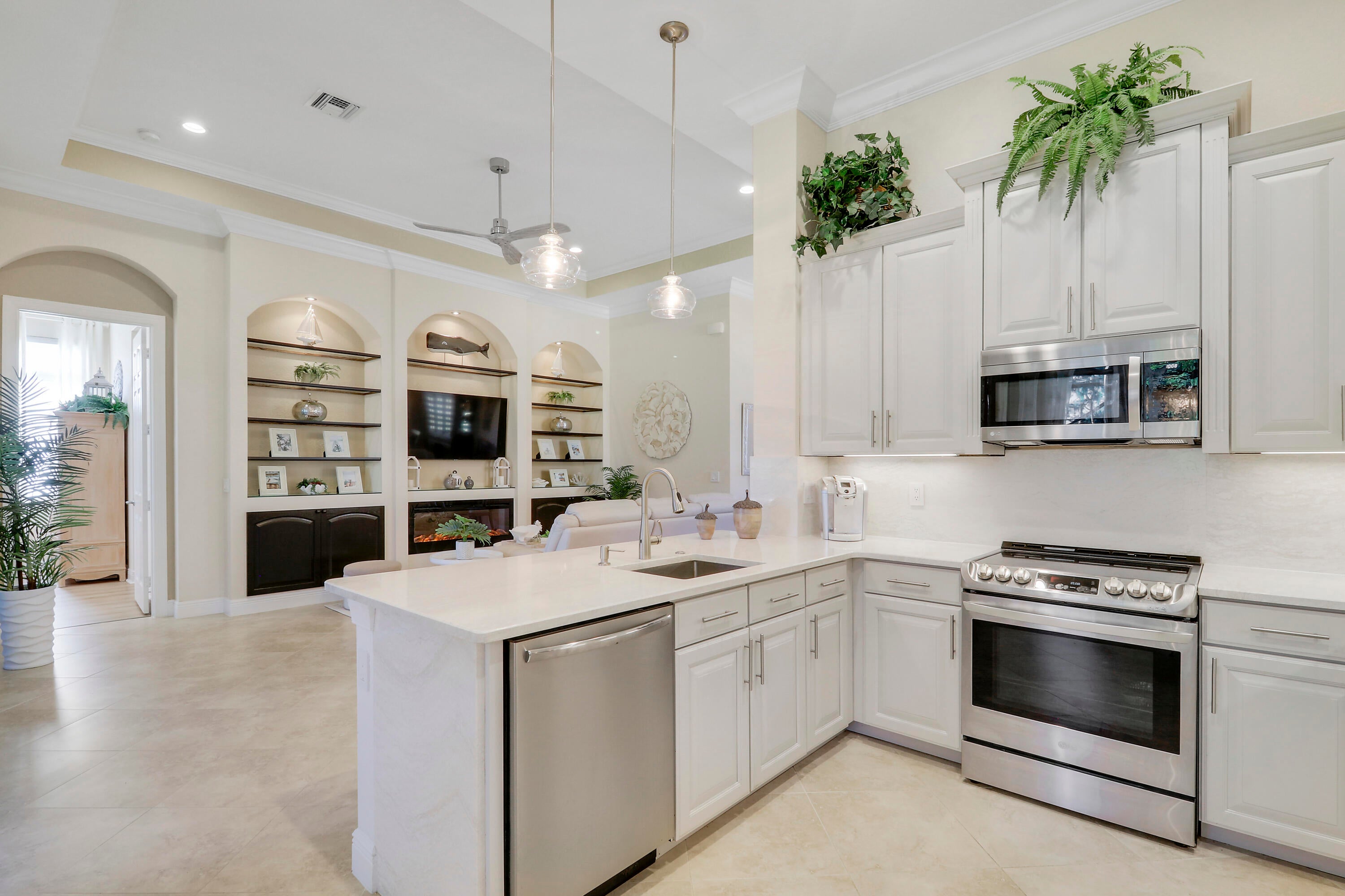 Built-in Shelves, Fireplace(s), Foyer, Split Bedroom, Walk-in Closet