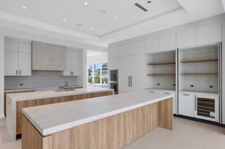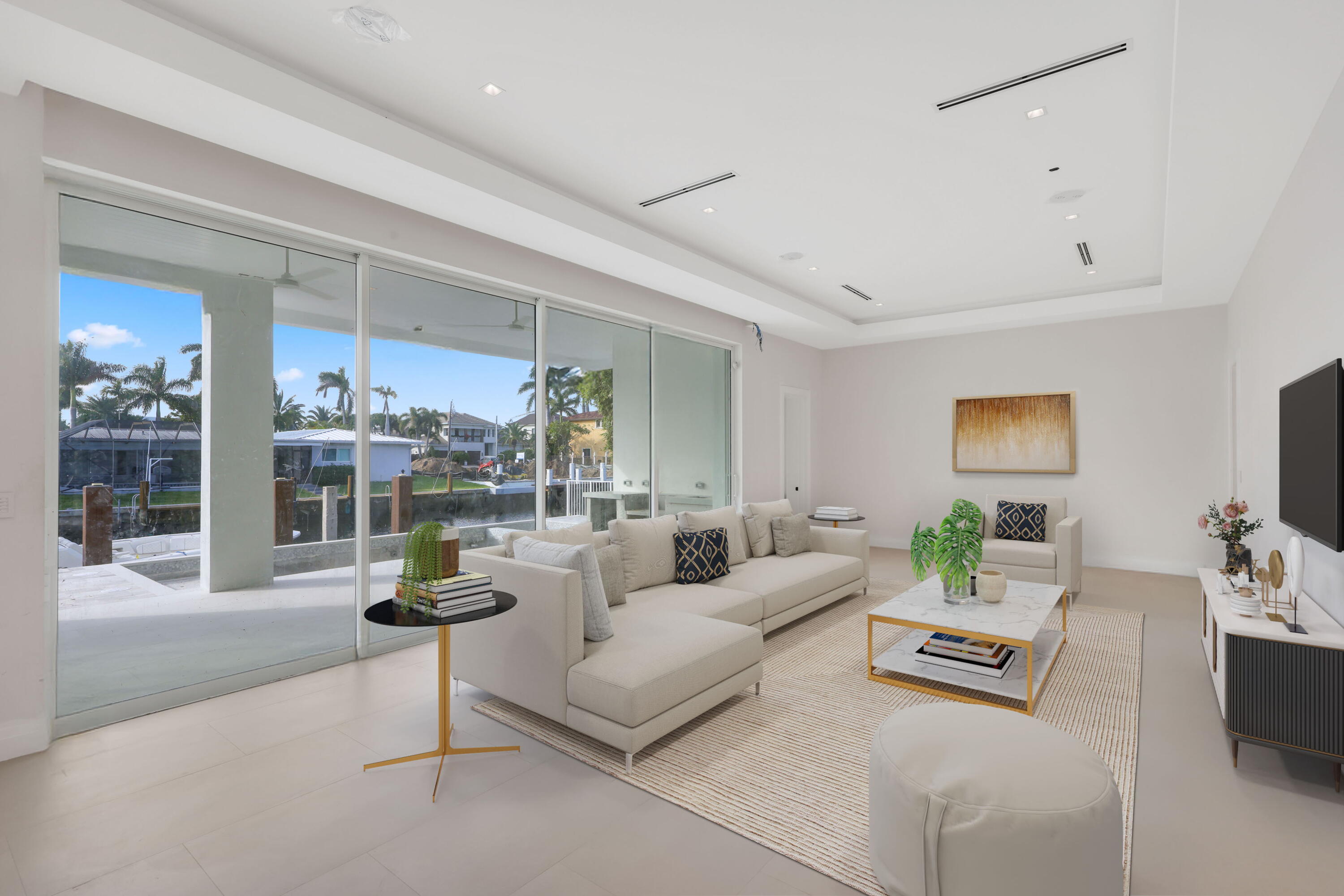 Redefined at every level, this reimagined 2025 custom waterfront estate in Boca Harbour exquisitely marries Key West charm with the sophistication of contemporary coastal living. Designed by PX Architecture and brought to life by Barron Development, the residence was meticulously rebuilt from the studs up with unwavering attention to detail and superior craftsmanship. Every system has been thoughtfully upgraded and replaced--from plumbing and electrical to roofing, foam insulation, and impact-rated doors and windows--ensuring a modern, state-of-the-art foundation for enduring elegance.Spanning 5,641 square feet under air and 6,912 total square feet, the home offers five bedrooms, five full bathrooms, and two powder rooms, including a convenient cabana bath. A first-floor guest suite provides privacy and versatility, while the second floor reveals four additional bedrooms and a generous flex lounge framed by floor-to-ceiling glass windows perfect as an upstairs living area or media retreat. A nearby office or study nook offers a serene, naturally lit workspace. The primary suite is a private oasis, thoughtfully designed to evoke the tranquility of a luxury spa. Its bathroom features dual vanities, a freestanding soaking tub, and a glass-enclosed shower, all appointed with premium finishes and elegant detailing. Expansive custom closets have been fully built out to accommodate even the most extensive wardrobe with both sophistication and functionality. The home's heart is an entertainer's dream: a gourmet chef's kitchen with dual islands, a professional-grade gas range, and a hidden butler's pantry for seamless preparation and storage. A formal dining room provides a refined setting for gatherings, while the rear façade, adorned with ten-foot, floor-to-ceiling glass windows, floods the interior with light and frames sweeping views of the waterfront. Outside, the estate offers 80 feet of deep-water frontage with no fixed bridges, providing effortless access to the open water. The dock, installed in 2022, complements a resort-style pool, fully equipped outdoor kitchen, and expansive sun deck perfect for sophisticated entertaining or enjoying serene sunset vistas. Additional features include a three-car garage, engineered oak flooring on the second level, large-format porcelain tile on the first, and bespoke designer lighting that elevates the home's refined ambiance. A true architectural landmark in one of Boca Raton's most coveted waterfront communities, 810 NE 70th Street embodies the pinnacle of coastal living, where timeless design meets contemporary innovation to create an atmosphere of effortless sophistication.
