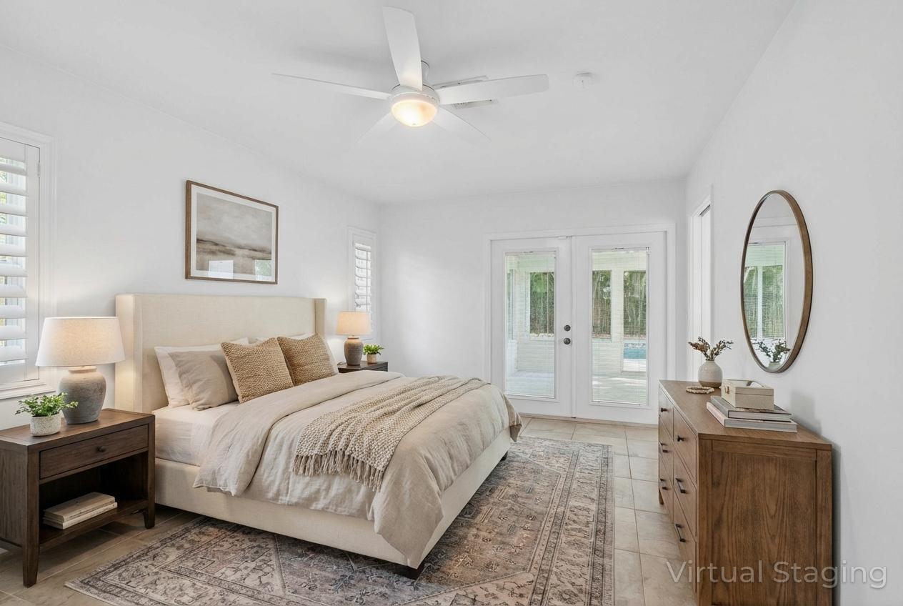 Split Bedroom, Walk-in Closet, Built-in Shelves, French Door