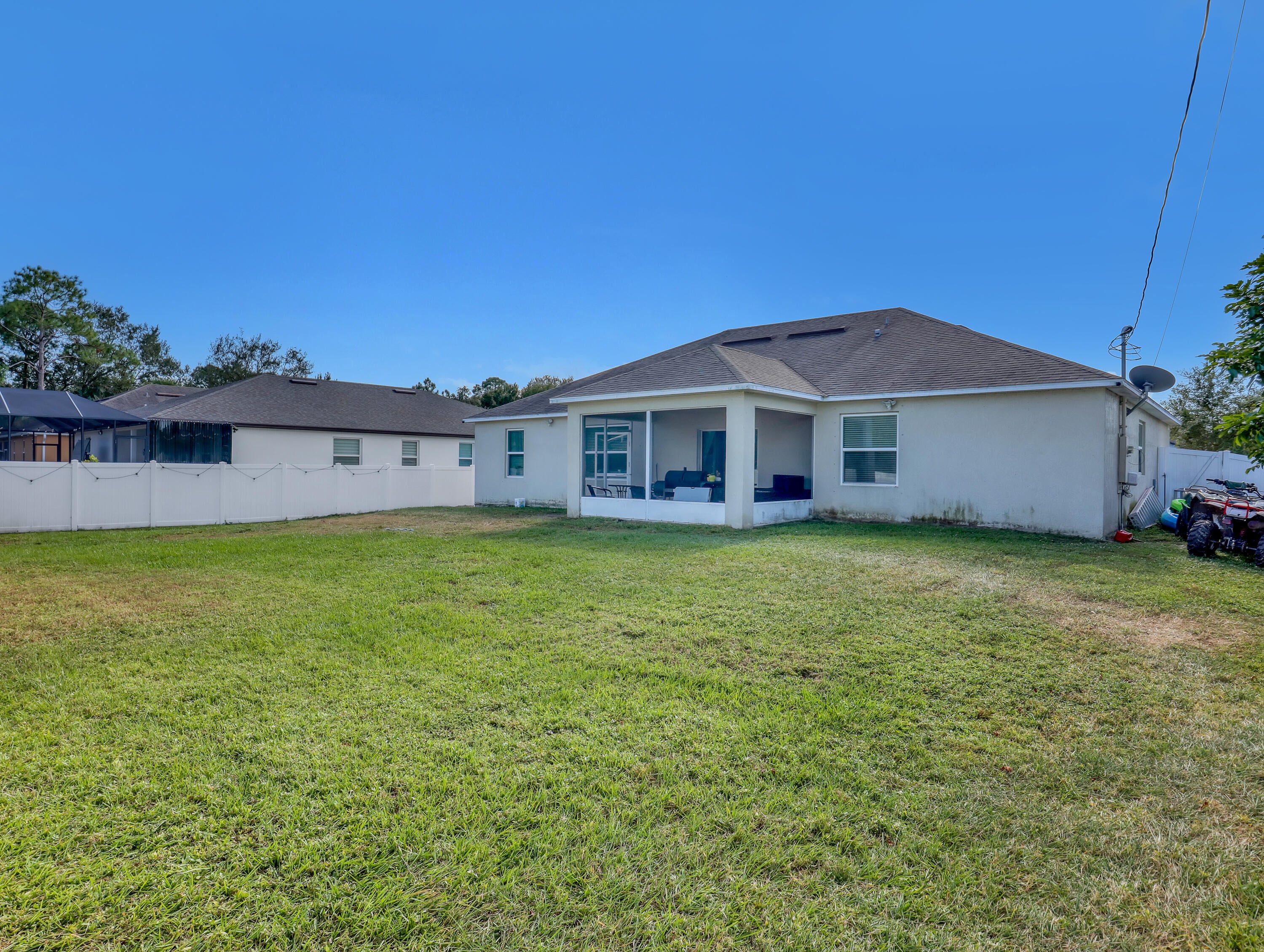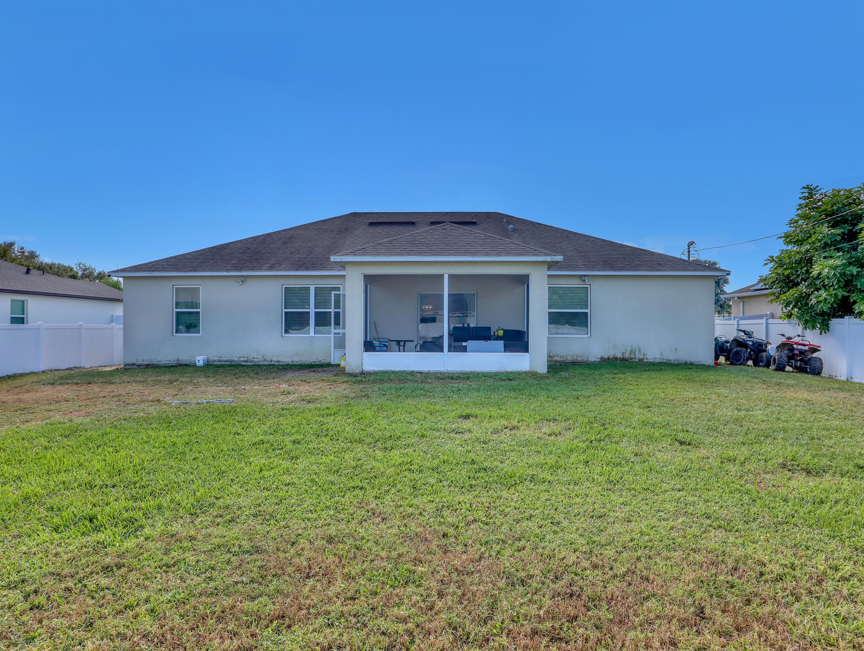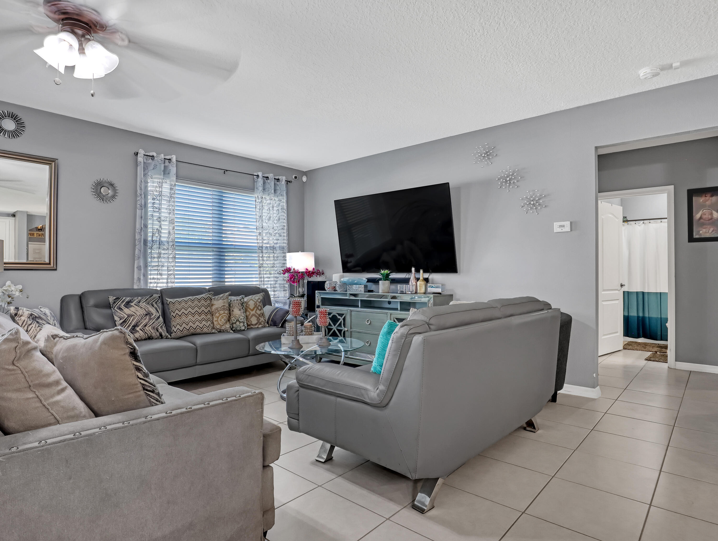 This beautifully remodeled single-family home, built in 2016, features 6 spacious bedrooms and 2 full baths ideal for first time homebuyer and investor. The desirable split floor plan and open concept layout make this residence perfect for families and entertaining. The modern kitchen is equipped with stainless steel appliances, granite countertops, elegant white cabinetry creating a chef's dream space. The main living area boasts elegant ceramic tile flooring, while the bedrooms laminate flooring, providing both comfort and practicality.The generous master bedroom includes a large walk-in closet and a luxurious bathroom with both a soaking tub and a separate shower. Step outside to the screened-in covered patio that leads to a large backyard, ideal for outdoor gatherings andactivities. Located conveniently near shopping, dining, major highways, and beautiful beaches, this property offers easy access to I-95. Enjoy the added benefits of no HOA fees and a converted garage that provides extra flexibility for use as a bonus room or additional storage. Don't miss the opportunity to own this stunning home in a prime location! Schedule your showing today!