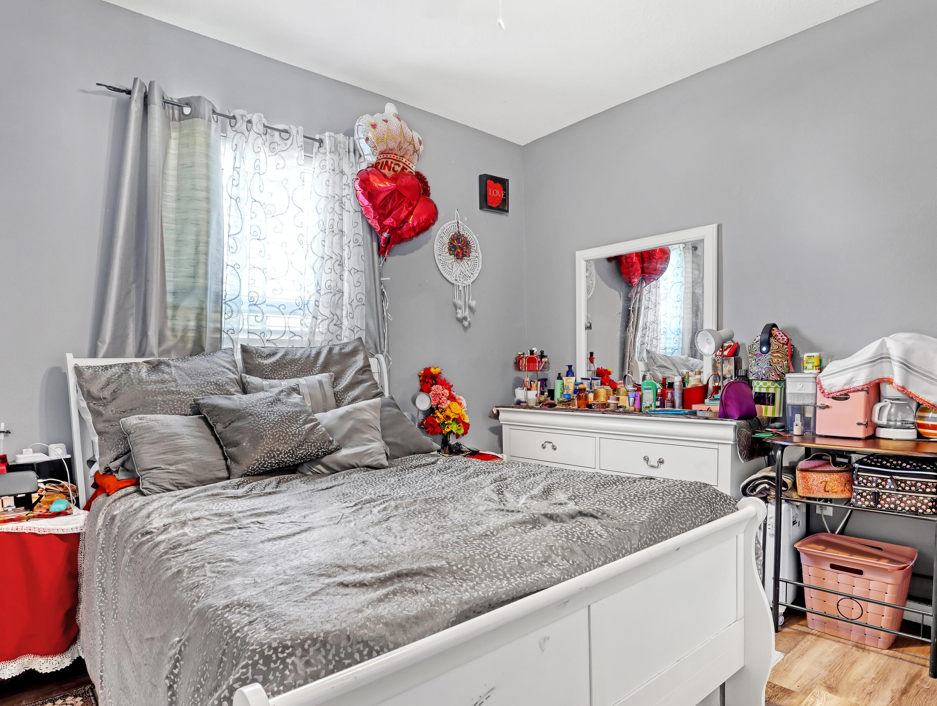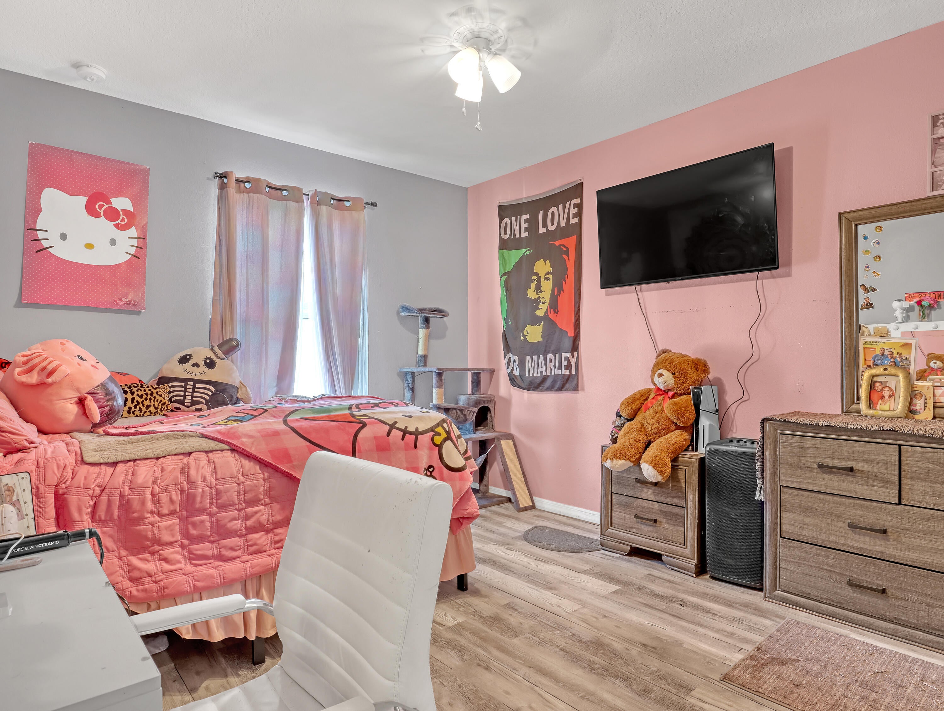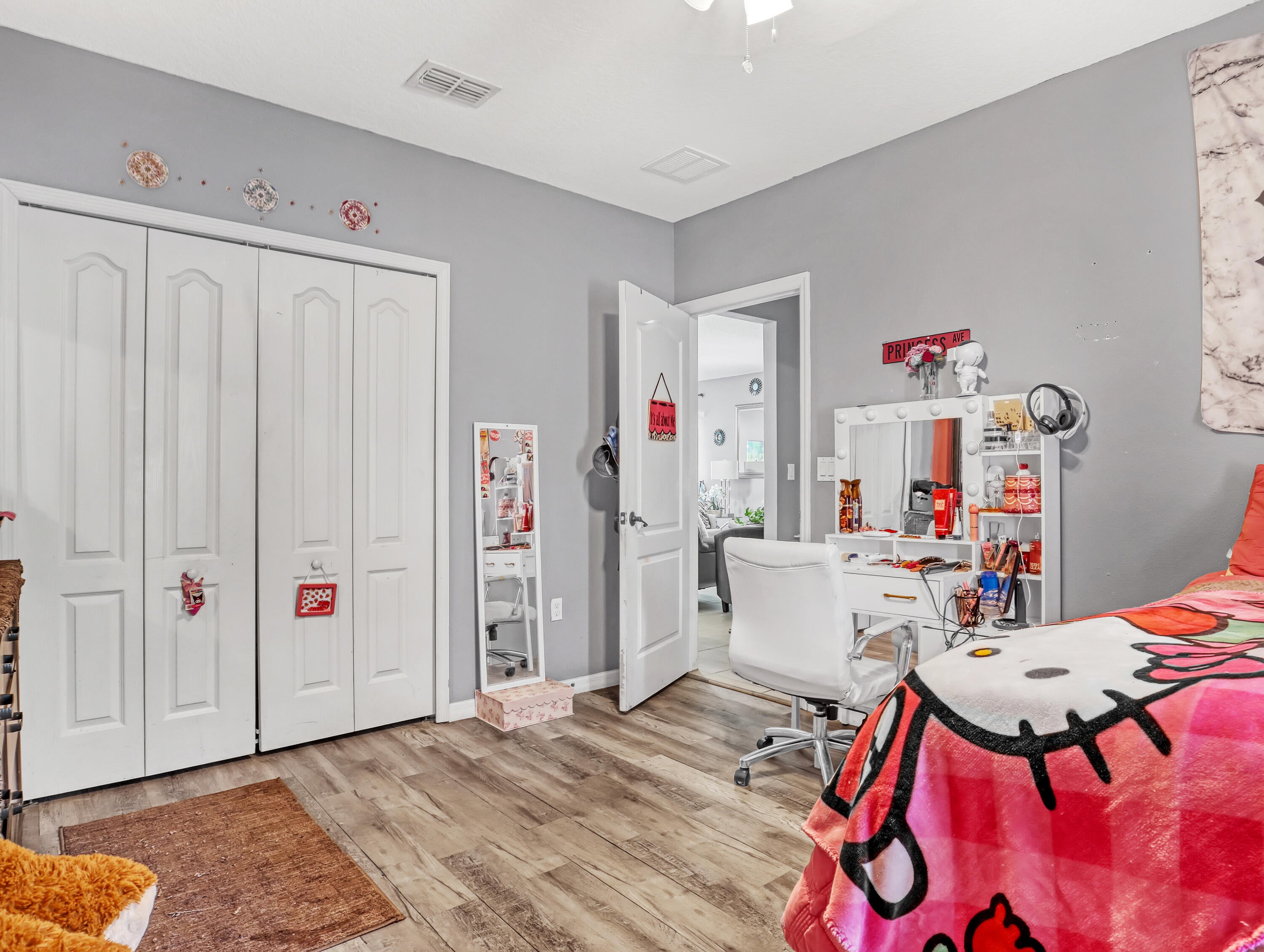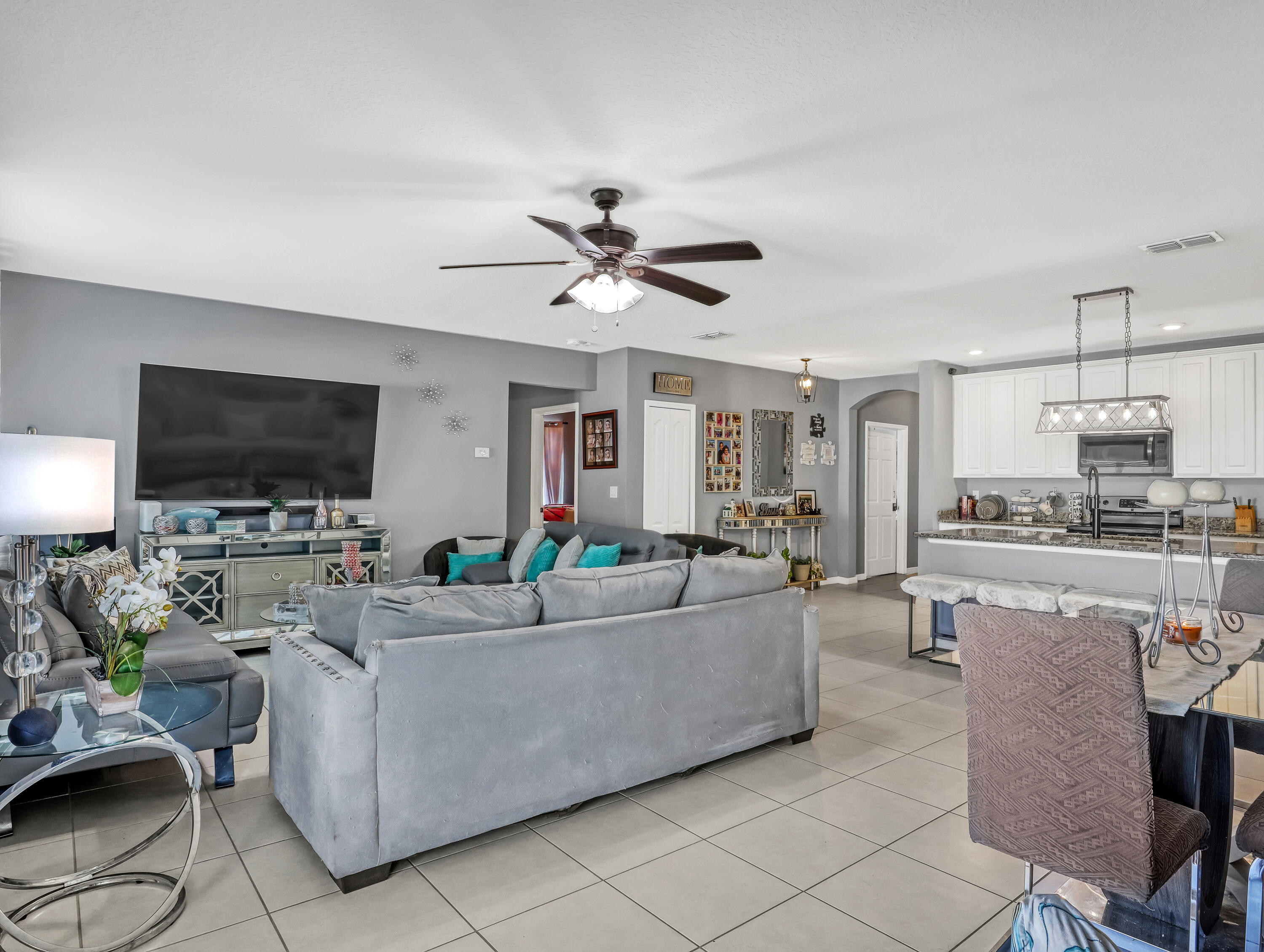 This beautifully remodeled single-family home, built in 2016, features 6 spacious bedrooms and 2 full baths ideal for first time homebuyer and investor. The desirable split floor plan and open concept layout make this residence perfect for families and entertaining. The modern kitchen is equipped with stainless steel appliances, granite countertops, elegant white cabinetry creating a chef's dream space. The main living area boasts elegant ceramic tile flooring, while the bedrooms laminate flooring, providing both comfort and practicality.The generous master bedroom includes a large walk-in closet and a luxurious bathroom with both a soaking tub and a separate shower. Step outside to the screened-in covered patio that leads to a large backyard, ideal for outdoor gatherings andactivities. Located conveniently near shopping, dining, major highways, and beautiful beaches, this property offers easy access to I-95. Enjoy the added benefits of no HOA fees and a converted garage that provides extra flexibility for use as a bonus room or additional storage. Don't miss the opportunity to own this stunning home in a prime location! Schedule your showing today!