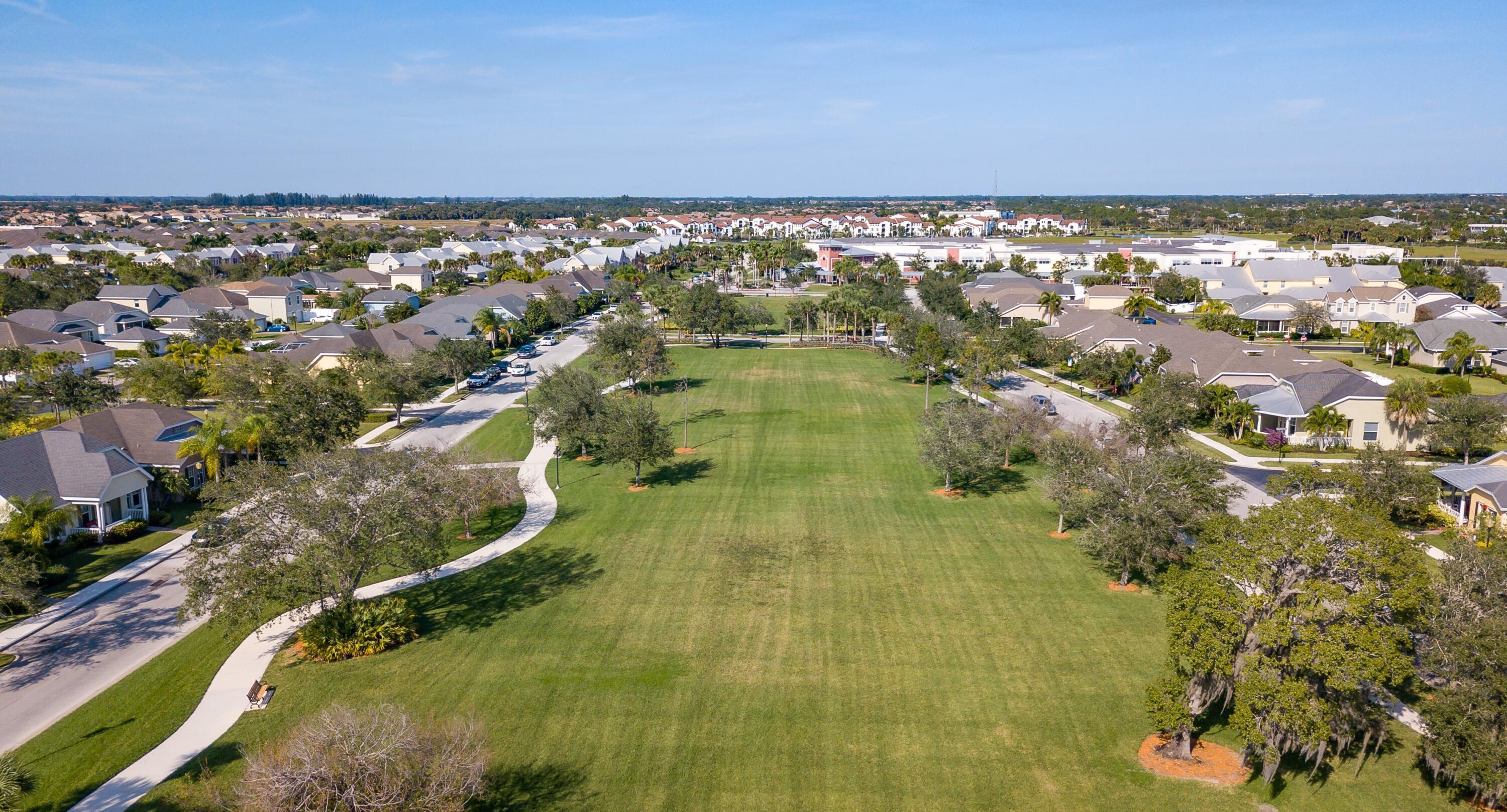 Beautiful 2BR/2BA/2CG + Den in Bedford Park at Tradition! This charming home features new exterior paint, stainless steel appliances, Corian countertops, tiled backsplash, and a pantry. Enjoy easy-care laminate wood-look flooring, a detached garage, and a large backyard perfect for outdoor living. The covered and screened lanai includes a sun shade for those sunny Florida days. Additional features include 2023 metal roof, 2025 gas water heater, laundry tub, and French doors. The spacious primary suite offers dual sinks and a walk-in shower.Bedford Park residents enjoy fantastic amenities, including a community pool, park, dog park, community room, and more! Conveniently located close to Tradition Square for shopping, dining, entertainment, and everyday conveniences