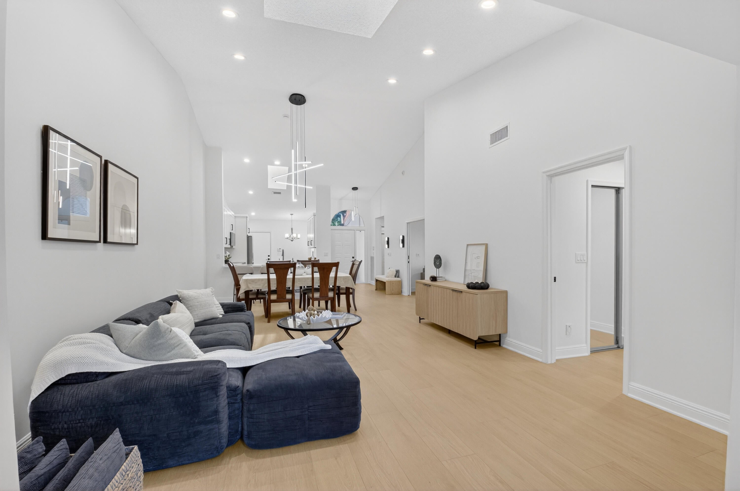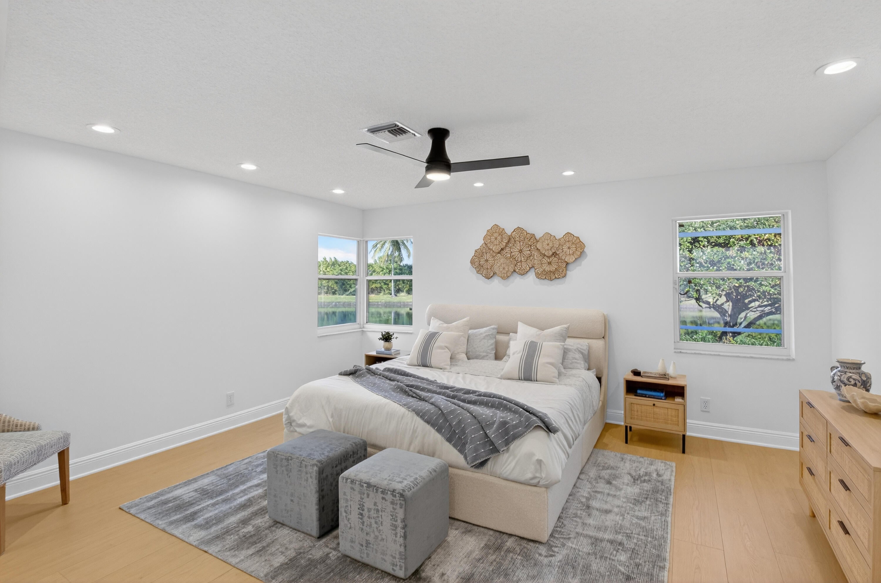 Spectacular 2 br Villa that has been professionally designed by ''Debra Lipset Designs''. No expenses have been spared in this fully renovated gem. Upgrades galore in every room. Beautiful lake views from your enclosed patio in the backyard. Come and live the country club lifestyle in Palm Isles without all the high dues . Community has tennis, pickleball, restaurant, fitness, 4 pools and much much more.