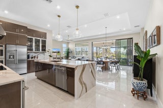 3 Bed + Den | 3 Bath | Lakefront | Built 2024 - Stunning like-new home on a spacious corner lakefront lot with premium upgrades throughout. The entertainer's dream outdoor area includes a screened-in oversized heated pool, custom lighting, speakers, outdoor kitchen, and electric hurricane screens. Inside features luxurious tile floors (no carpet), an upgraded kitchen with walk-in pantry, and open-concept living. Extras: impact glass and doors (upgraded slider), whole-house generator, whole-house water treatment system, AC in garage, dog run, and professional landscaping. Enjoy PGA Verano's resort amenities--clubhouse, fitness center, pools, spa, tennis, pickleball, and golf cart-friendly community living at its finest.