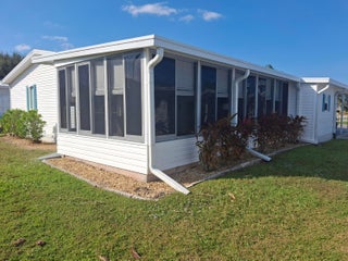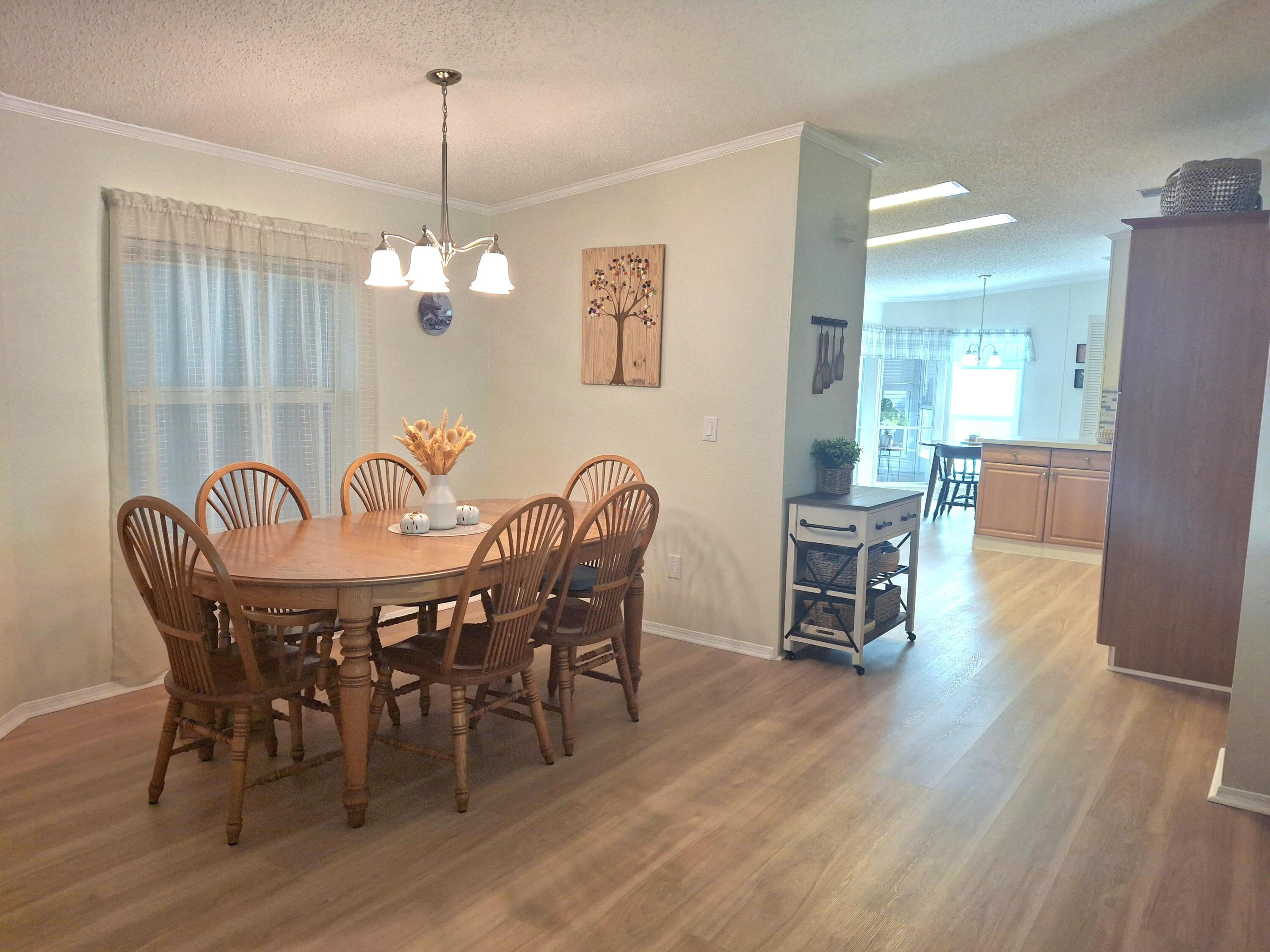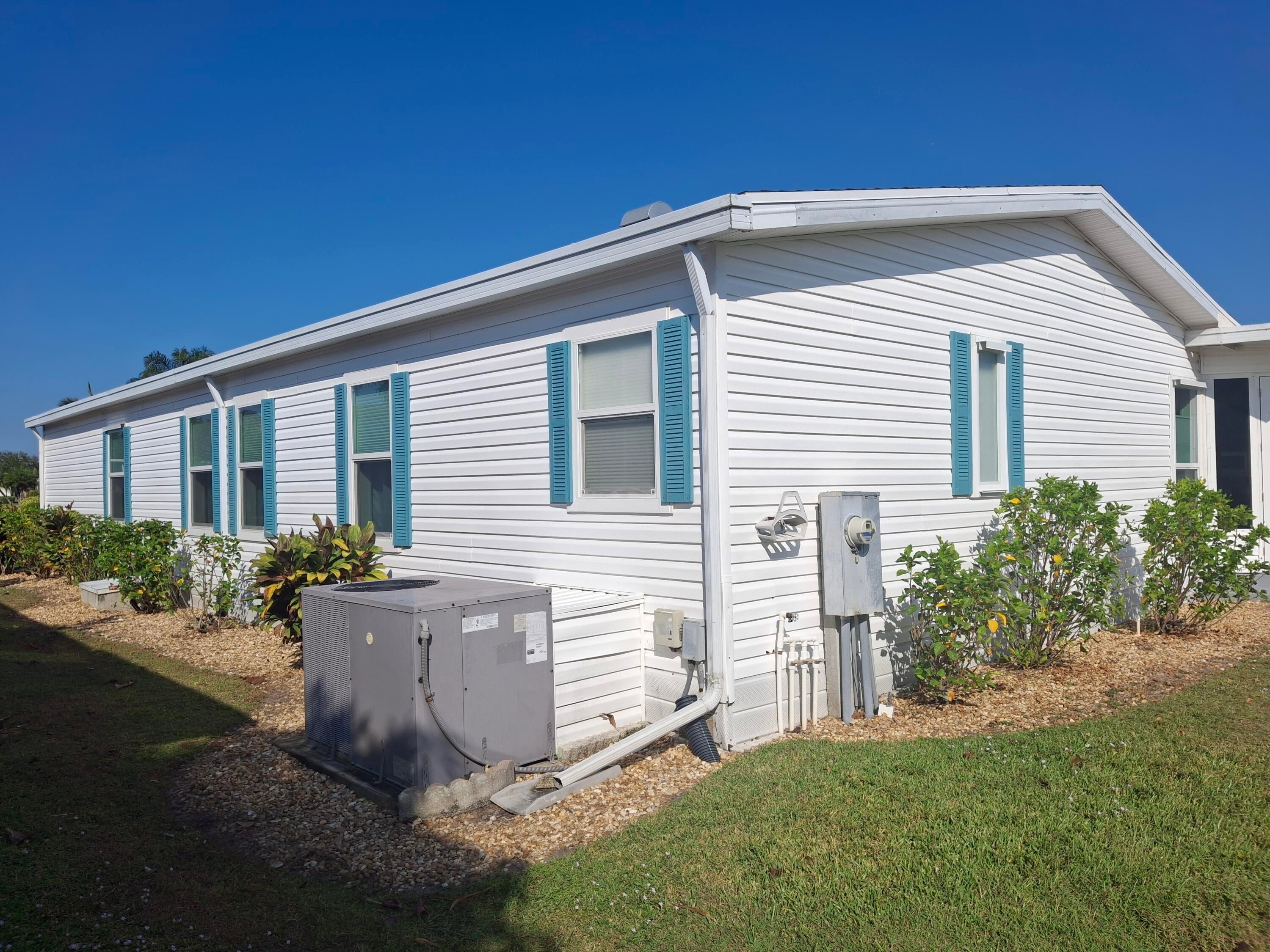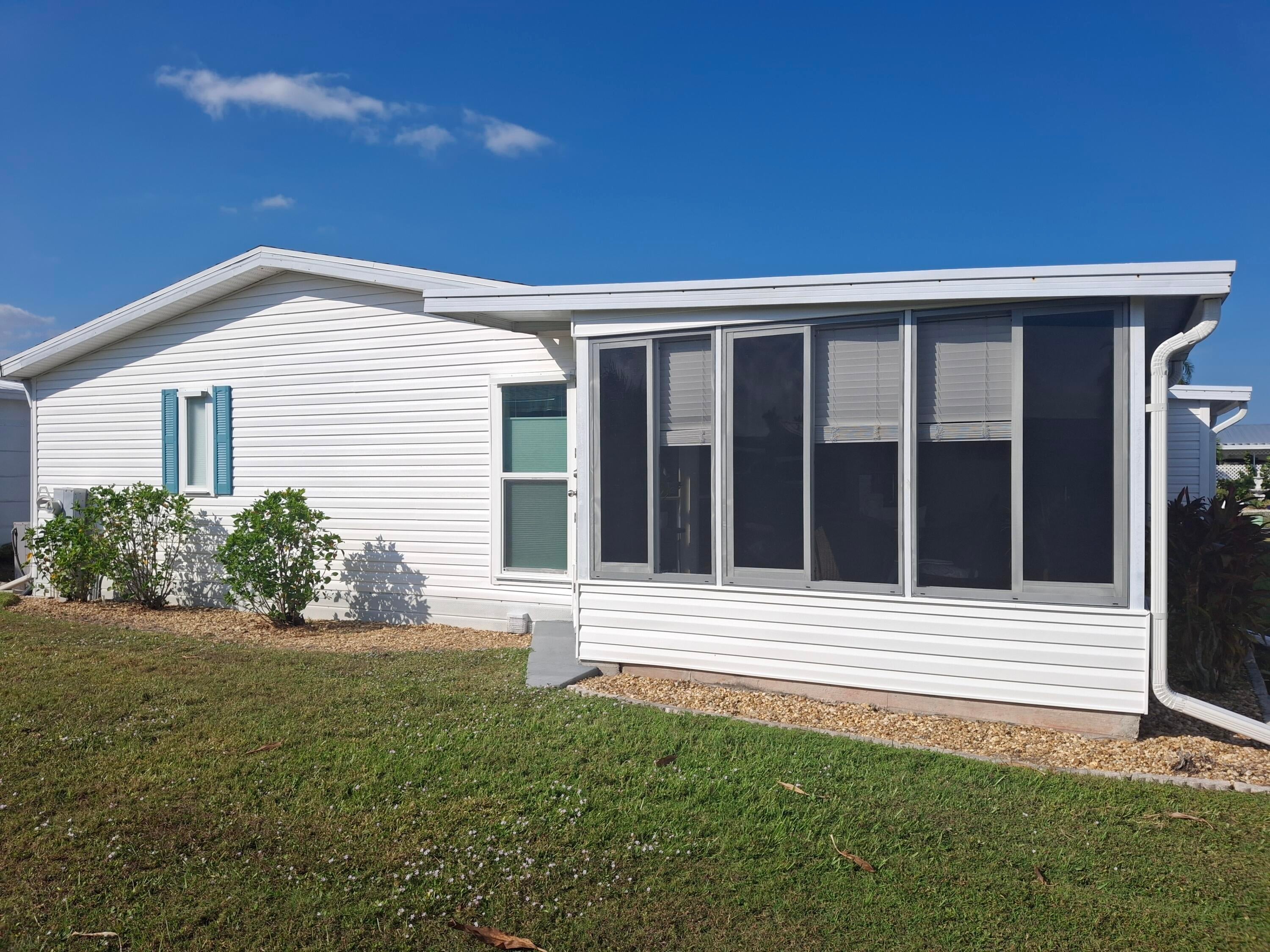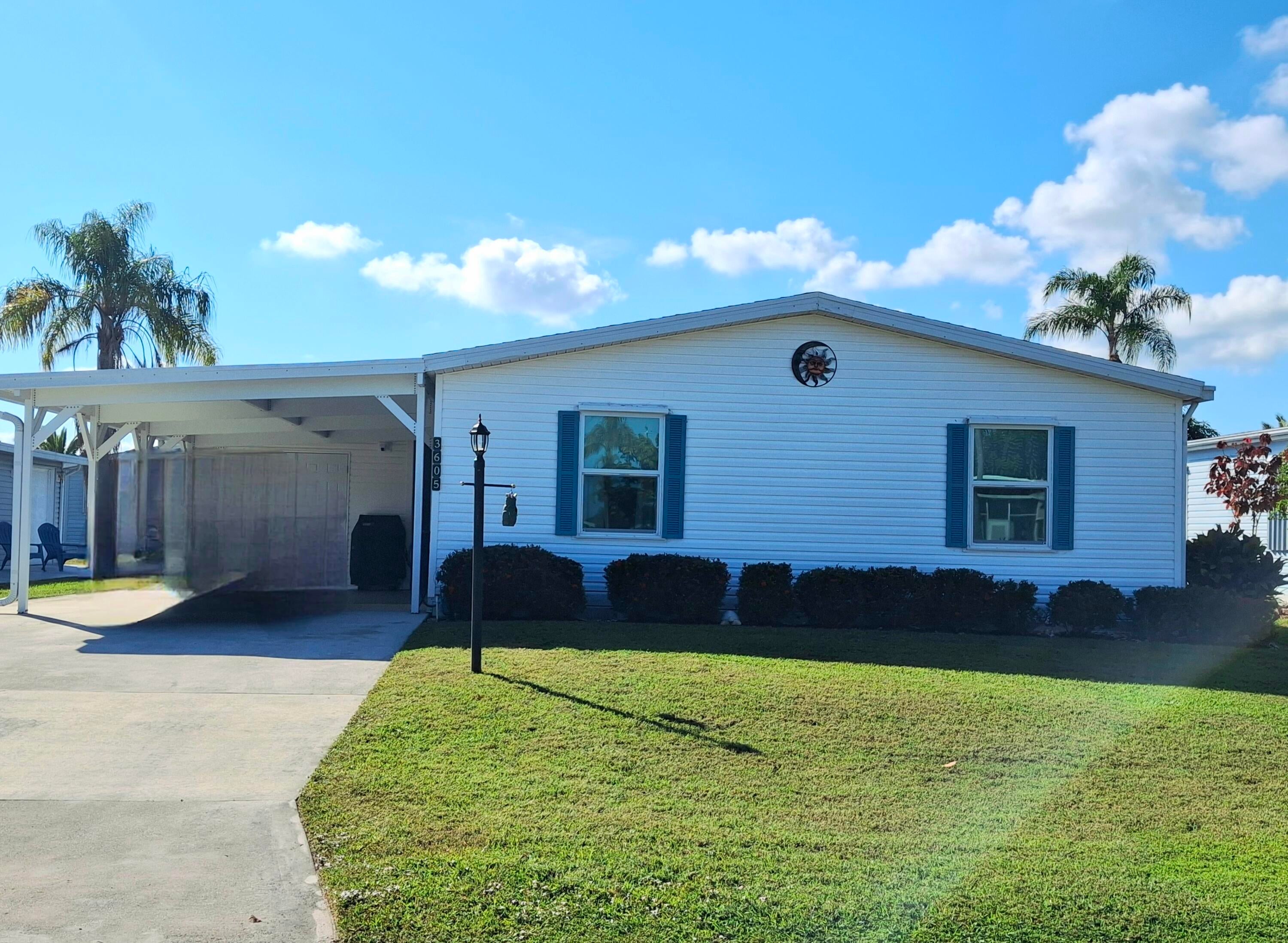 RARE Land-owned 3 bedroom, 2 bath home. Immaculate and move-in ready! Located just steps from a clubhouse, pool, on-site restaurant, golf shop & exercise room. This home offers exceptional convenience and value. Recent updates include a 2020 roof, impact windows, new LVP flooring (2024), new refrigerator (2024), and new toilets and vanities (2024). The dishwasher was replaced in 2025 and fridge (2024). The open, spacious layout includes French doors, a formal dining room, and a separate dinette off the kitchen. Enjoy the Florida lifestyle on the large lanai or the open patio. Perfect for grilling and entertaining. A land-owned 3-bedroom home in such close proximity to major amenities is truly hard to find--and will not last long! Come see how affordable Savanna Club is!
