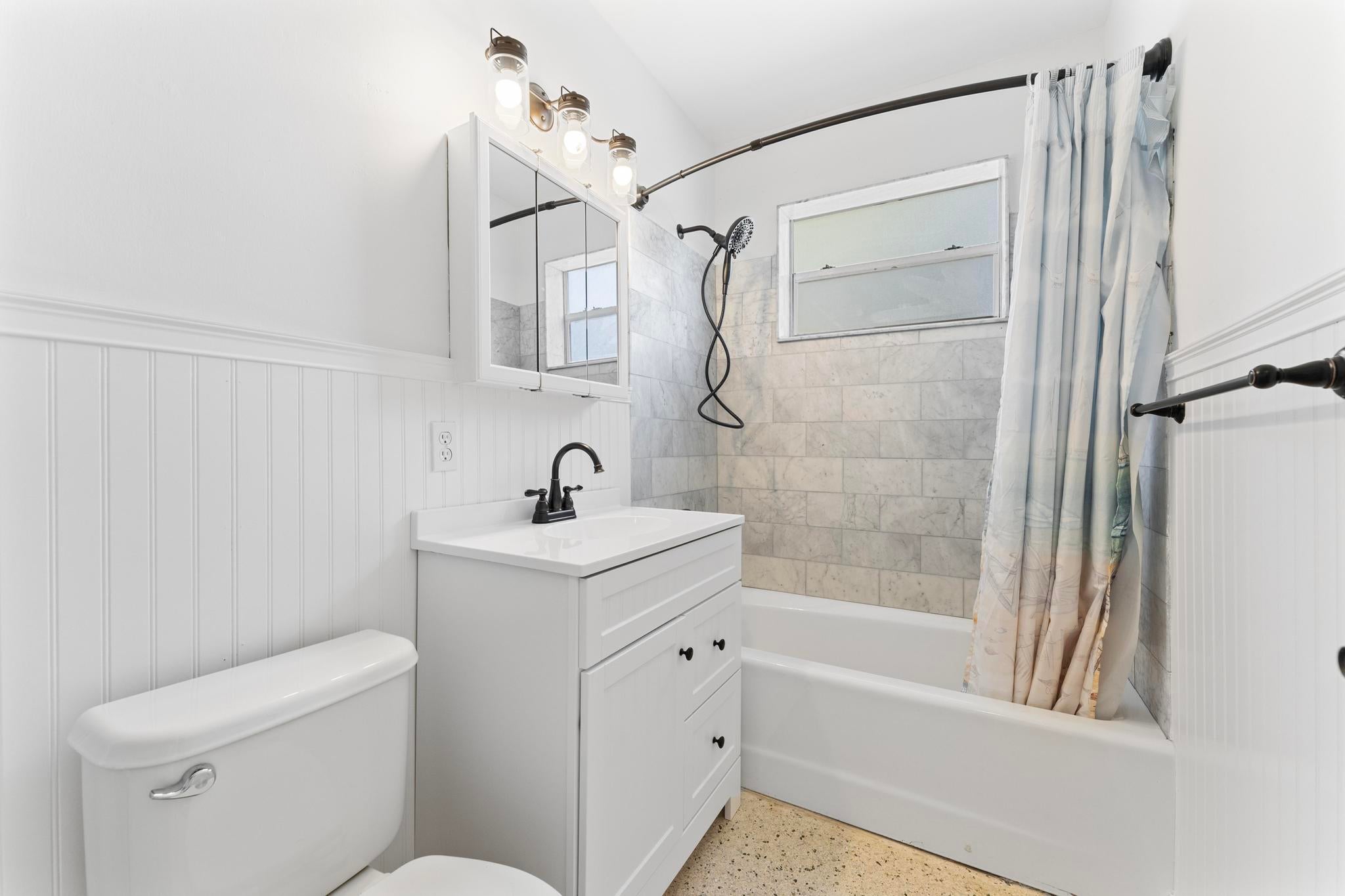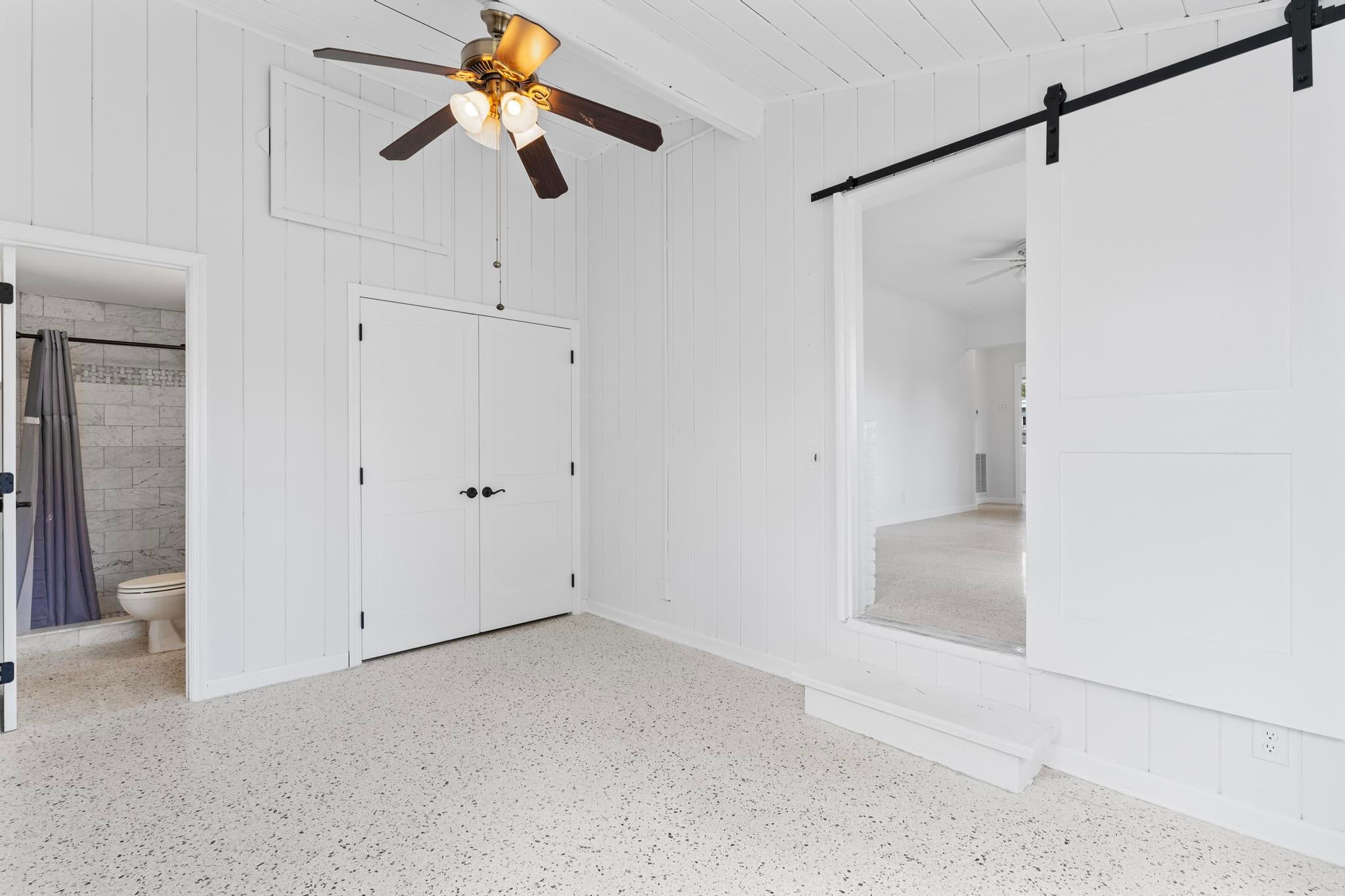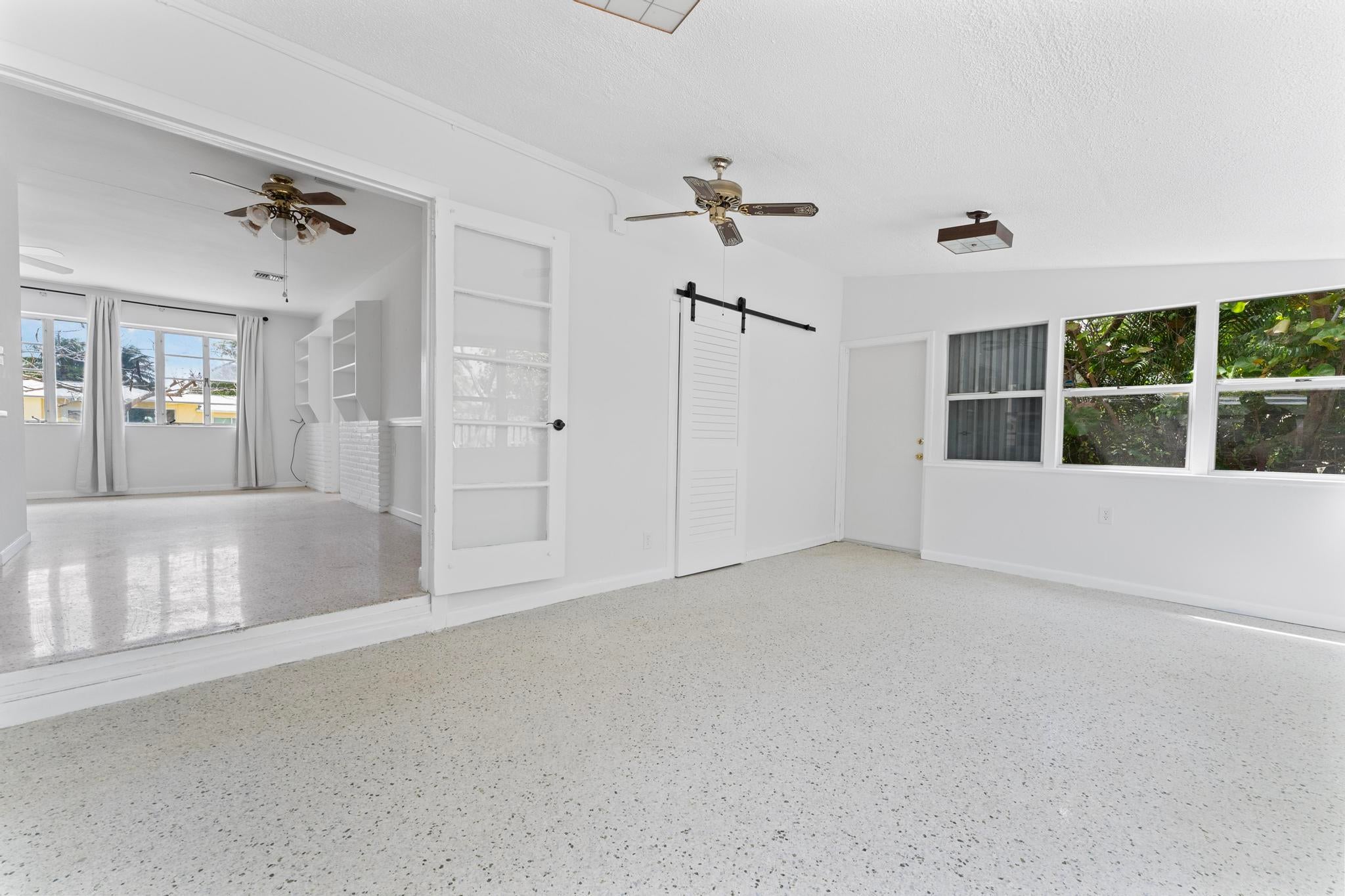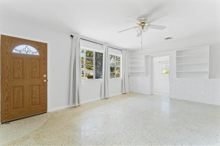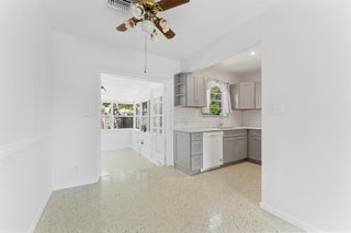Welcome to this inviting 3-bedroom, 2-bathroom home featuring terrazzo floors throughout, an updated kitchen with modern gray cabinets, quartz countertops, along with an open floor plan. Modern barn doors in the primary bedroom add character, while the primary bathroom offers a convenient walk-in shower. Relax in the Florida Room or enjoy outdoor gatherings on the patio. Conveniently located minutes away from downtown West Palm Beach, local shops, restaurants, and the Intracoastal.