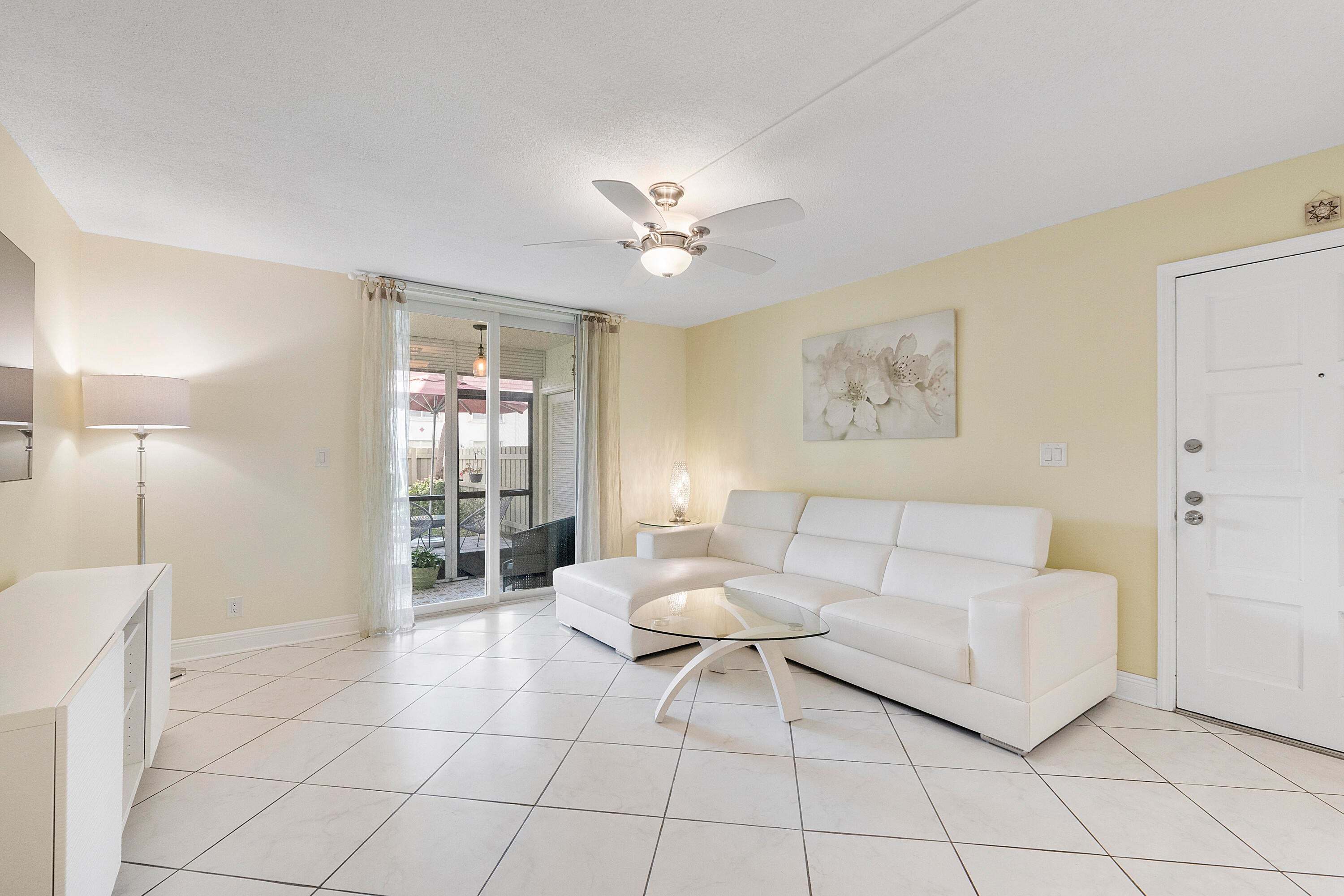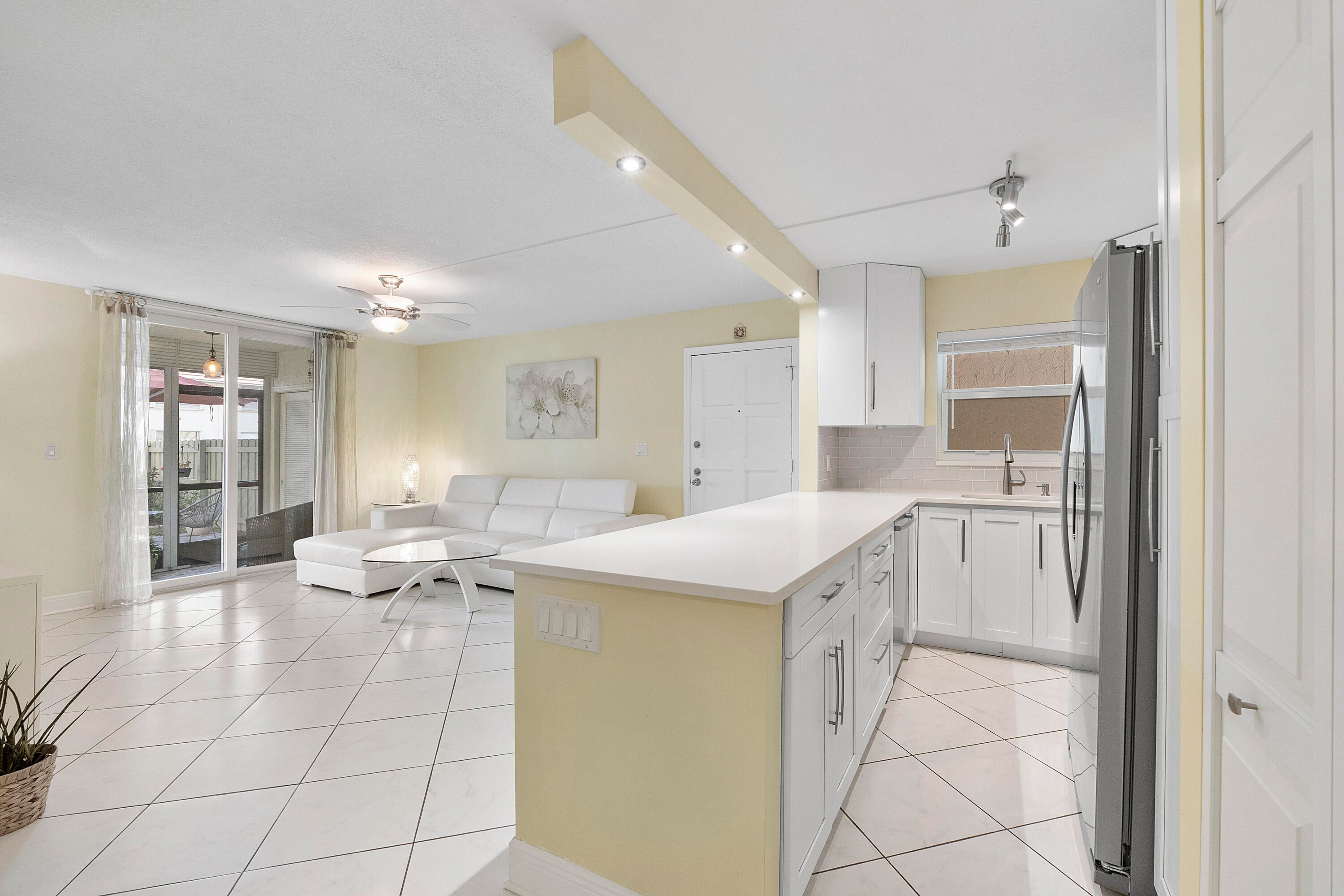 A UNIQUE opportunity awaits you!! Your new home has a completely fenced PRIVATE yard to enjoy-PERFECT FOR OUTDOOR RELAXATION OR PLAY AREA FOR YOUR CHILDREN OR PET! Convenient first floor location feels like a VILLA! Meticulously maintained & tastefully renovated for you to just move right in! NEW ROOF IN 2024! Updated kitchen equipped with all stainless appliances, white custom cabinetry, white quartz countertops accented with grey subway tile. Neutral tile in the living areas with wood- like flooring in both bedrooms for easy care and looks beautiful! Hurricane impact windows & sliding glass doors throughout for your protection. Only 4 residences have a completely PRIVATE FENCED YARD surrounded by lush landscaping to enjoy all year! A MUST SEE! SUPER LOCATION IN EAST BOCA RATON!The primary suite has a walk-in closet and luxury updated bath. The guest bath is equally updated. The open bar area in the kitchen has custom lighting above and is perfect when entertaining!! Convenient Whirlpool washing machine with a laundry facility outside your door. Furniture can be purchased if desired to make this an easy transition for you! AC, hot water heater and electrical panel box are all well maintained, plus a Ring Camera system. You have an extra storage closet on your screened porch with added storm protection with roll- up shades. Your outside patio and green area are totally private and make this HOME in EAST BOCA RATON - A MUST SEE!!! Lush Landscaping surrounds you!! Boca Linda West is ideally located near FAU, hospital, schools, shopping, restaurants and Fabulous DOWNTOWN BOCA RATON! Boca Linda West has a community pool and a clubhouse for you to meet new friends and relax with your family and guests. All ages are welcome and 1 small pet is permitted. Superb LOCATION near 1-95, Three Airports and The Brightline train station! Come and see this amazing condominium today!!!