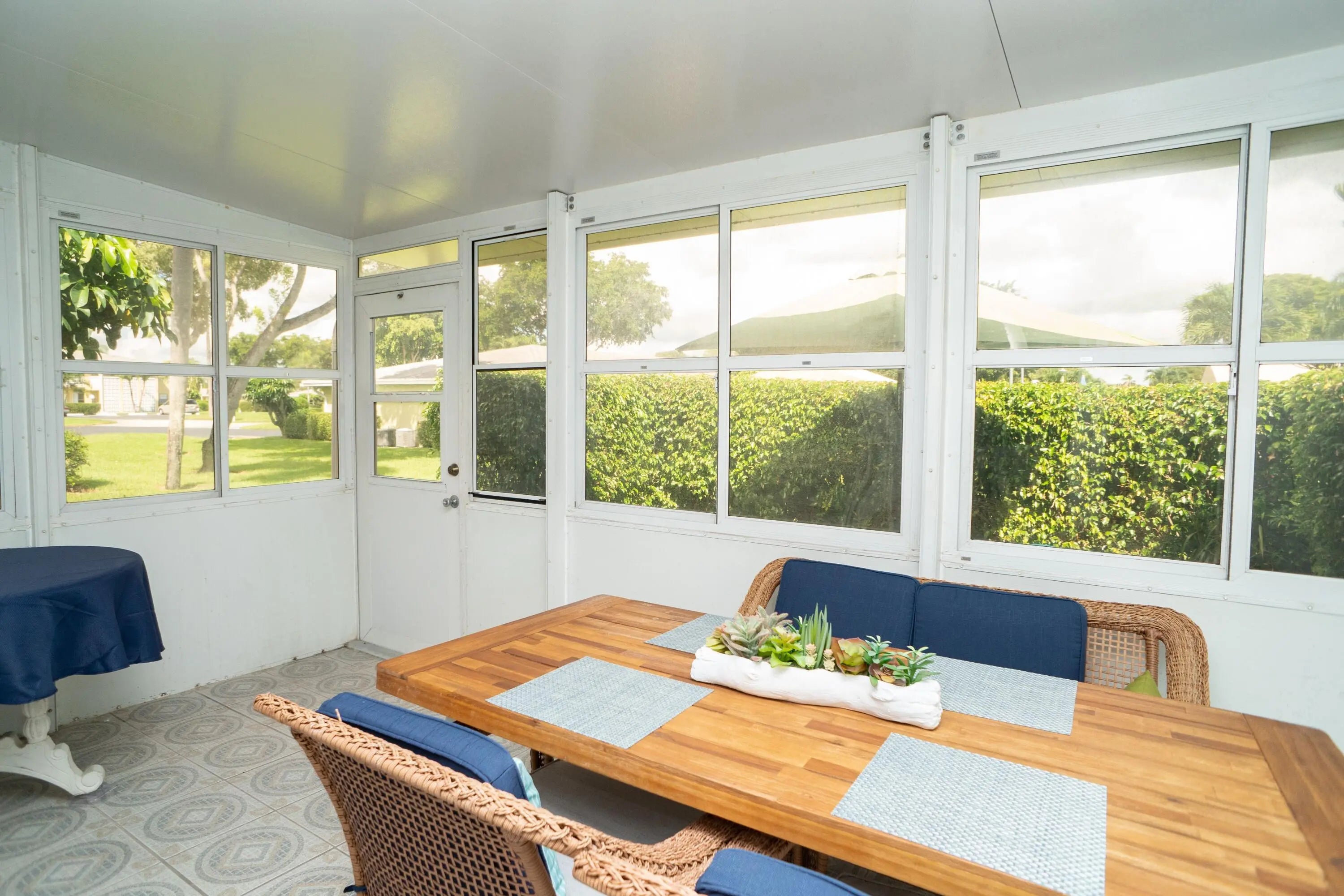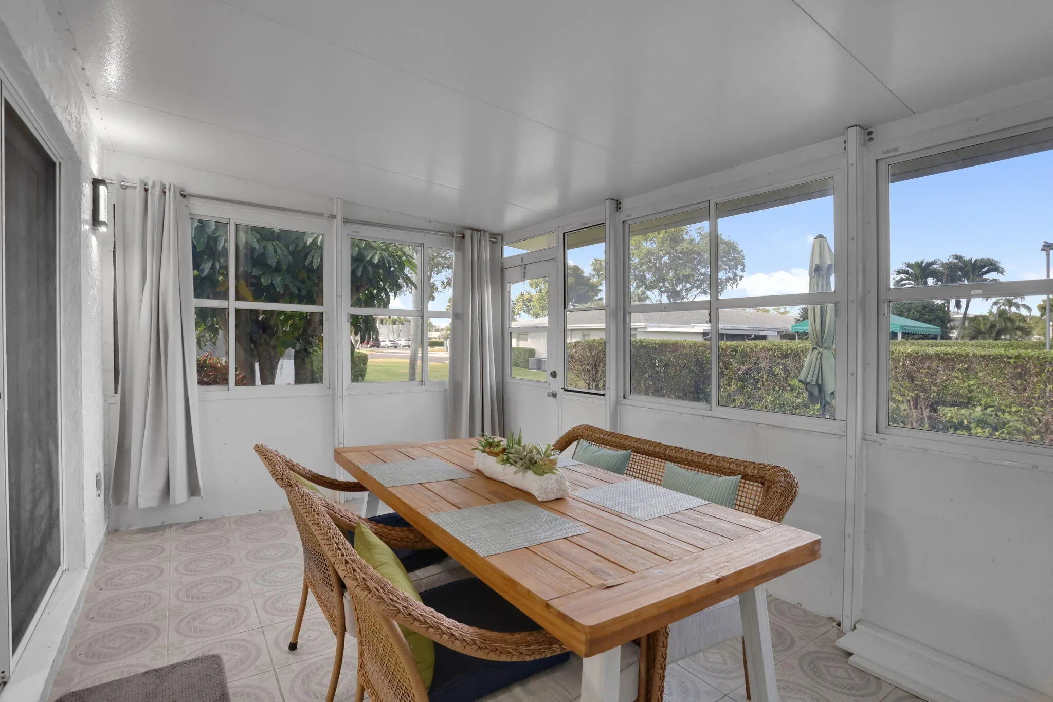 PINES OF DELRAY EAST Totally renovated one story villa 2 bed 2 bath with southern garden view and a private back patio with seating and a gas grill. This location is 2 miles to Delray public beach and 2 miles to downtown. Features: total impact glass, smooth ceilings, all new electric including the panel box, new a/c kitchen with extra cabinets, and quartz counter tops on an oversized counter, floor to ceiling window. Porcelain tile wood look floors through-ought. Sliding doors leads to enclosed porch. Convenient upfront park w/ many guests spots. Two pools and clubhouses. Tennis, fitness, pickleball bocce ,billiards. Come and enjoy everything that Delray Beach has to offer.