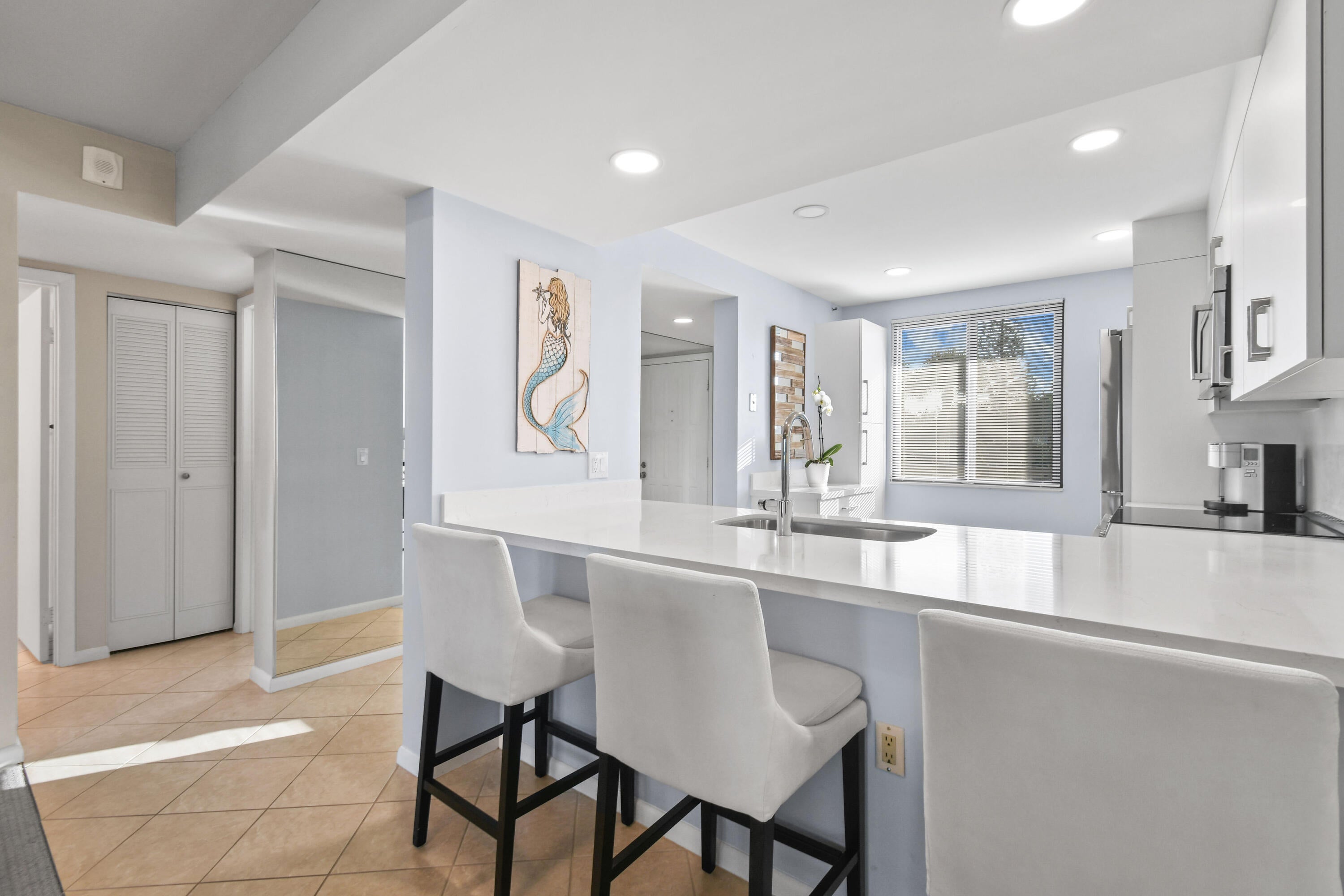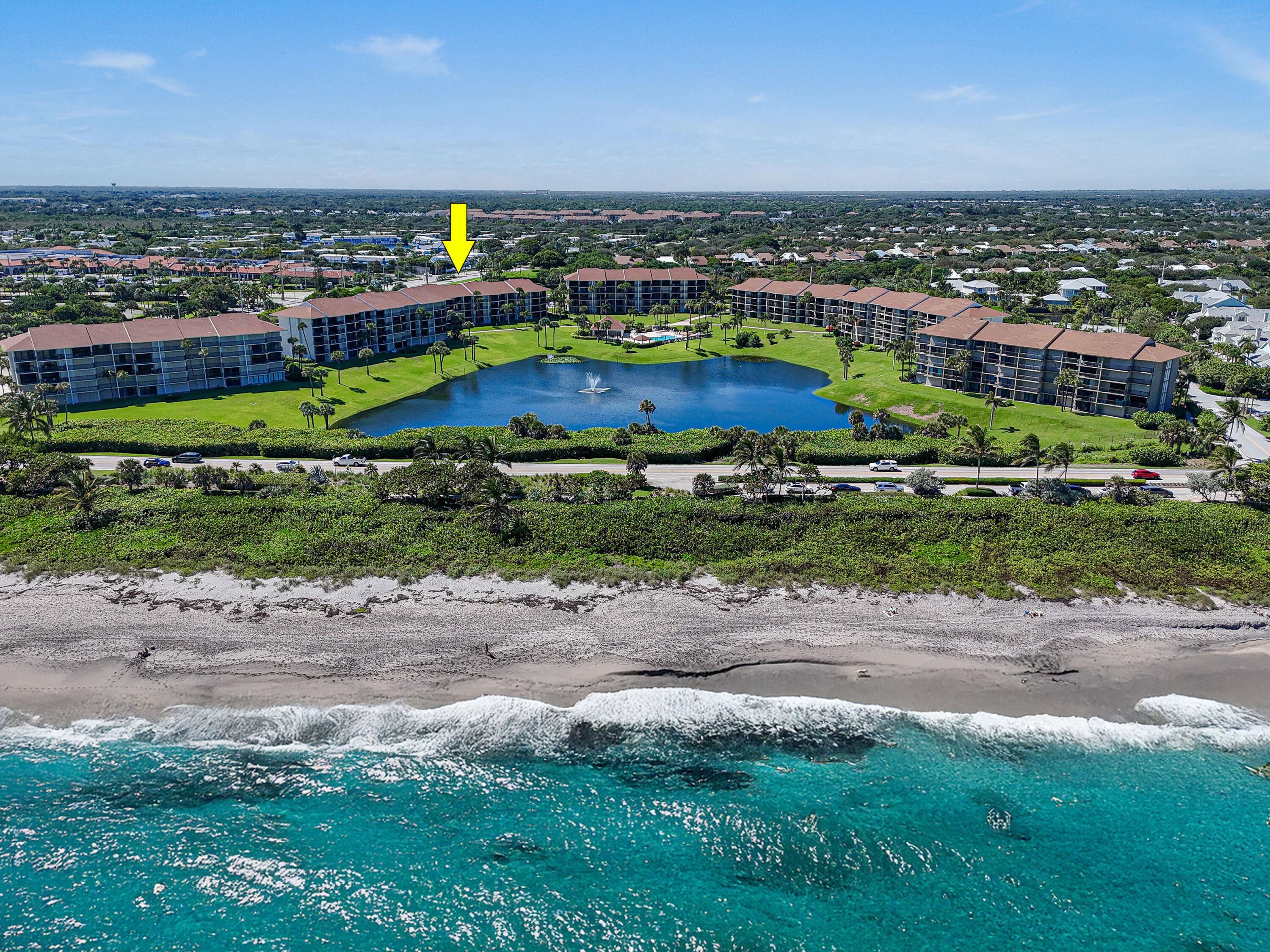 Welcome to coastal living at its finest in this beautifully updated corner condo at The Ocean at the Bluffs South. This highly sought-after end unit offers exceptional natural light, serene lake views, and refreshing ocean breezes from its desirable southeast exposure. Enjoy two private balconies--perfect for relaxing, dining, or taking in sweeping views of the lake, garden, and pool.Inside, the home features a renovated kitchen appointed with custom white cabinetry, quartz countertops, modern hardware, and stainless-steel Bosch appliances. The open layout flows seamlessly into the dining and living areas, highlighted by expansive sliding glass doors that frame the tranquil water views. Tile flooring through the main living areas and fresh finishes throughout create a bright, welcoming atmosphere. The spacious primary suite offers direct balcony access and wide water views, along with a large vanity, separate wet area, and generous closet space. A well-sized guest bedroom and full guest bath provide comfort for family and visitors. An additional bonus room offers versatility as a home office, hobby room, or extra storage. For convenience and peace of mind, the unit includes hurricane-impact sliders and windows, along with a full laundry room equipped with a side-by-side washer and dryer and abundant storage. Residents of The Ocean at the Bluffs South enjoy 24-hour gated security, a resort-style pool, tennis courts, and beautifully maintained groundsall just steps from Jupiter's world-famous beaches. Ideally located near Juno Beach, premier dining, shopping, and the Juno Pier, this residence captures the effortless coastal lifestyle buyers are looking for. Community Notes: Only service pets permitted. No leasing first year.