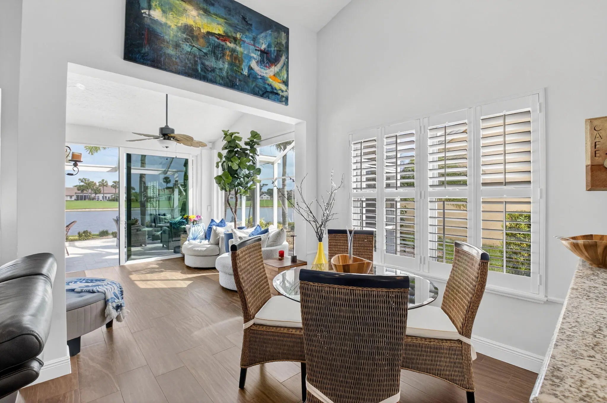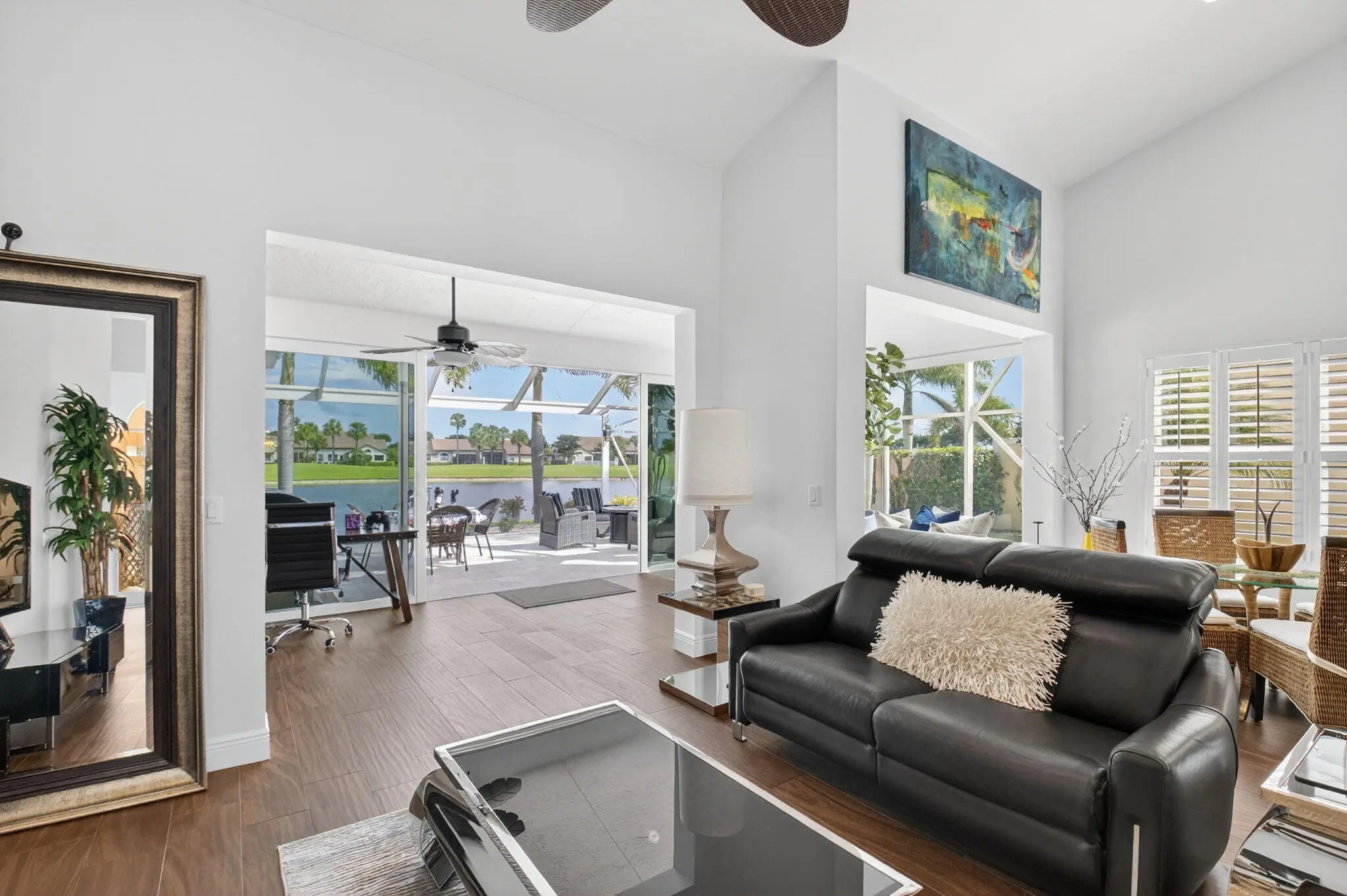 EXTENSIVE RENOVATIONS 3BR/2BA. New ROOF, IMPACT GLASS, extra square footage added overlooking a serene lake & golf view on the 5th hole. Enjoy your mornings & evenings in your NEW SCREENED LANAI enjoying the sunset, sunrise & wildlife. Kitchen & Baths all redone in soothing neutral colors. This home comes fully furnished excluding some artwork & personal items. Owners are seasonal so lightly used. There is nothing to do but move-in. Buyer to verify all info. Aberdeen is a mandatory membership club, please see attachments for fee info. Aberdeen features a challenging & immaculate Jim Fazio 18-hole golf course, 14 har-tru tennis courts, 6 pickleball courts, state of the art fitness, 3 pools at main clubhouse, 3 golf & 3 racquet pros, golf & tennis pro shops, 2 bocce ball courts, see more.