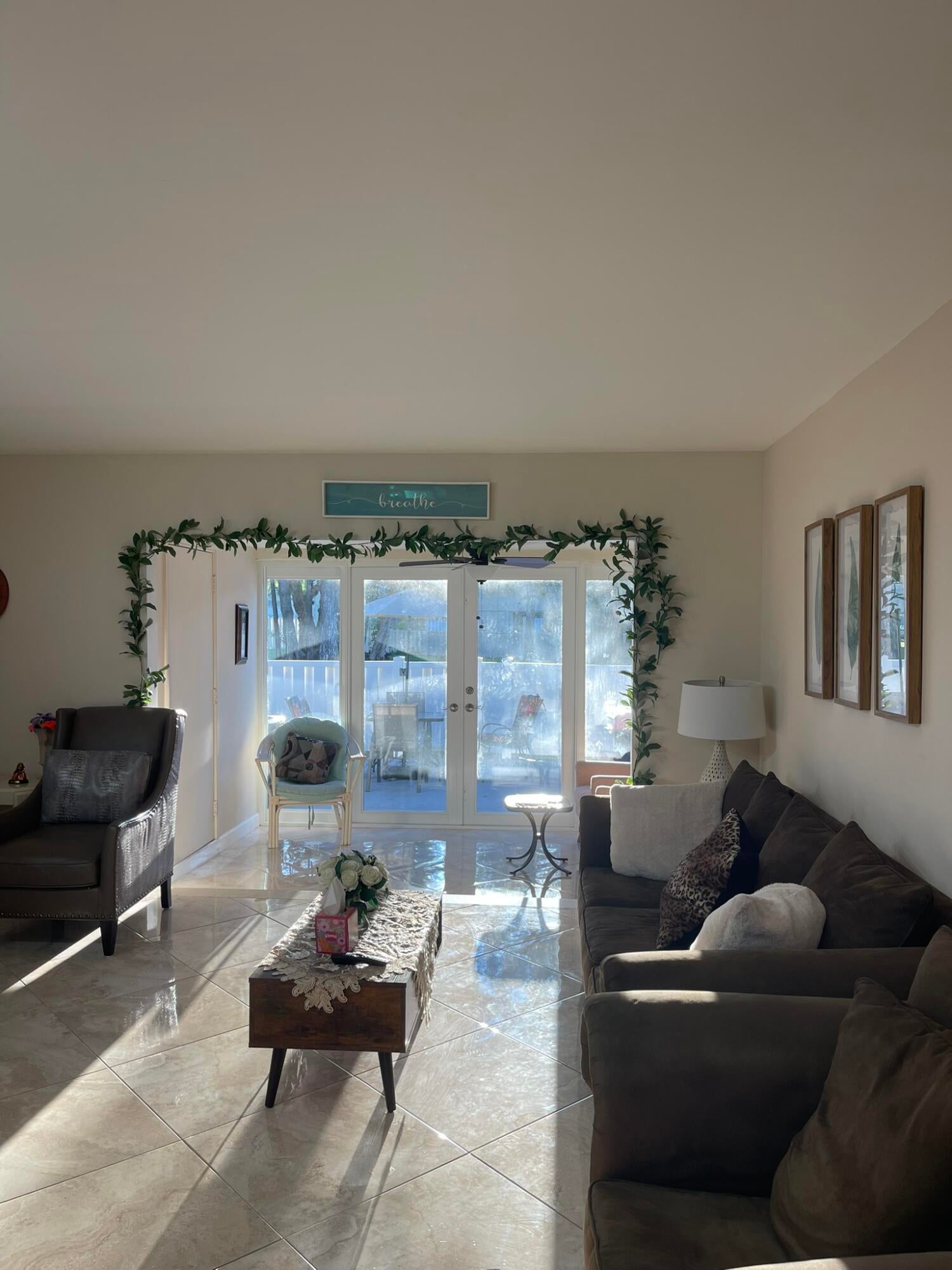 Spacious 3/2.5, 2 story townhouse with fenced patio. Gated community close to highways, PBI airport, beaches, new Tanger Outlet Mall. This is one of a kind townhouse in Palm Club West where the owner included part of the patio and the laundry room inside the AC first floor for more space and convenience of using the laundry. The unit is totally updated, newer appliances, kitchen and bathroom cabinets. Large tile porcelain tiles on first floor and laminate wood floors on the second floor.Patio doors are impact. Jacuzzi in the guest bathroom. Hurricane panels for all windows. AC is 5 years old, new roof (assessment included in the HOA payment.) HOA includes gate, water, internet, cable, and exterior and roof insurance. Community amenities include swimming pool, tennis & picnic area.