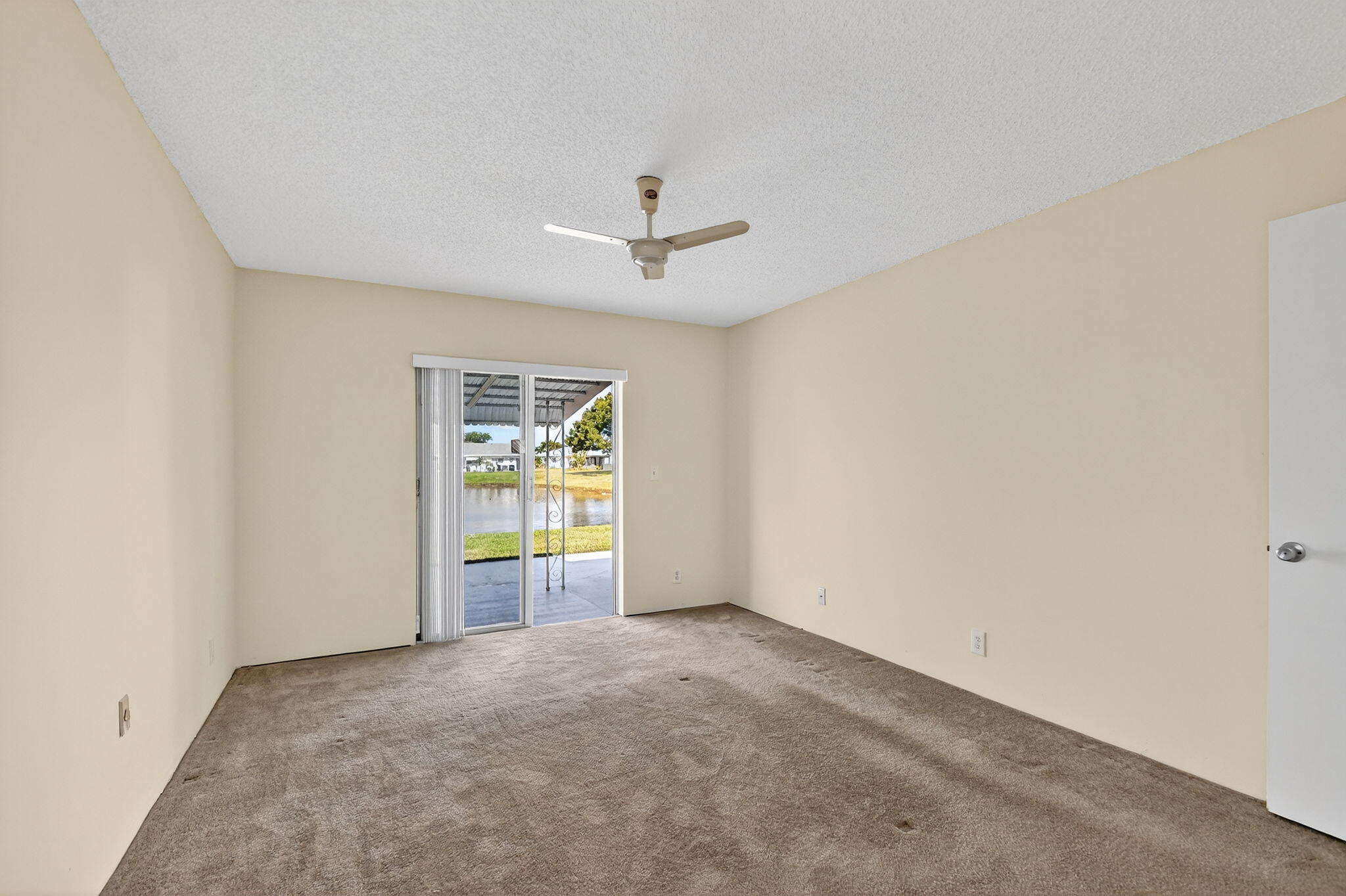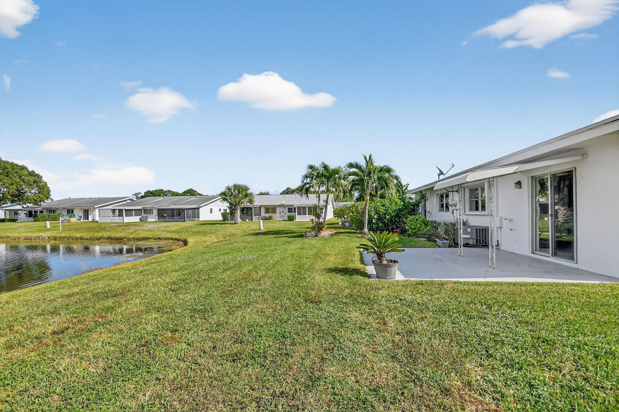 Lake & fountain views from both bedrooms & patio. Front patio & entrance south exposure.Central WPB, close to shops, grocery, restaurants, I-95 & turnpike. Roof completed 11/28/16. H,water heater 2024, partial accord. shutters, 2024, A/C 2023. Make new friends at the many activities. Cable/internet, golf, pickleball, card room, shows/movies, bingo allw/in this friendly community. 1/2 duplex, 3 exposures. Quick close possible.