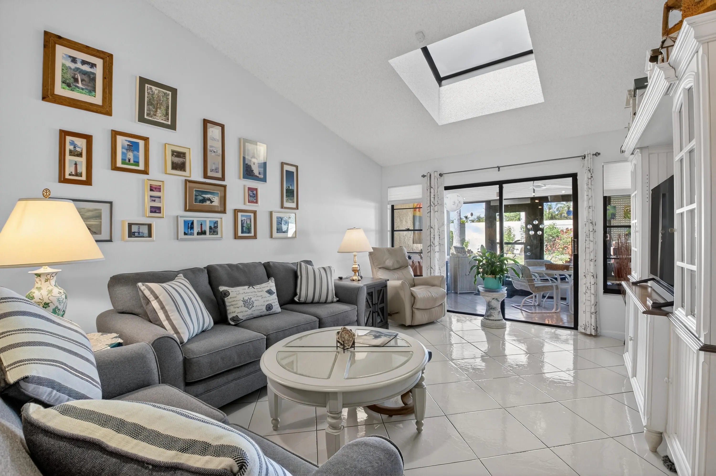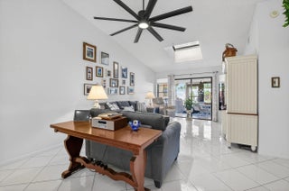 Brand new AC just installed! Move right into this delightful villa in desirable Palm Chase Lakes! This elegant home is tiled throughout and features renovated kitchen with Quartz counters, tile backsplash, pull out drawers & newer appliances. Home also has vaulted/cathedral ceilings, skylights and lovely landscaping. Enjoy the idyllic setting on your enclosed patio! Living room wall has been extended 6 feet and the 3rd bedroom is used as a den/study. This highly desirable active community features wide-open landscaped outdoor spaces with walking/biking trails. They don't make communities like this anymore! Palm Chase Lakes is an active 55+ community w/ resort style amenities featuring magnificent pool and spa, tennis, pickleball, shuffleboard, social hall+. Walking distance to worship!