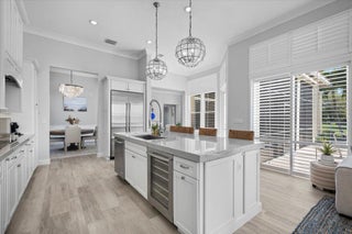 Stunning furnished seasonal rental with golf course and lake views in the gated Ironhorse community. This 4-bed, 3.5-bath pool home offers vaulted ceilings, a spacious split-bedroom layout, and a gourmet dome kitchen with island and pantry. The primary suite features a sitting area, dual sinks, separate tub and shower. Enjoy the screened porch, private pool, summer kitchen, and panoramic fairway + water views. Home includes impact glass, tile floors, decorative fireplace, built-ins, and 2-car garage. Pets considered with restrictions.