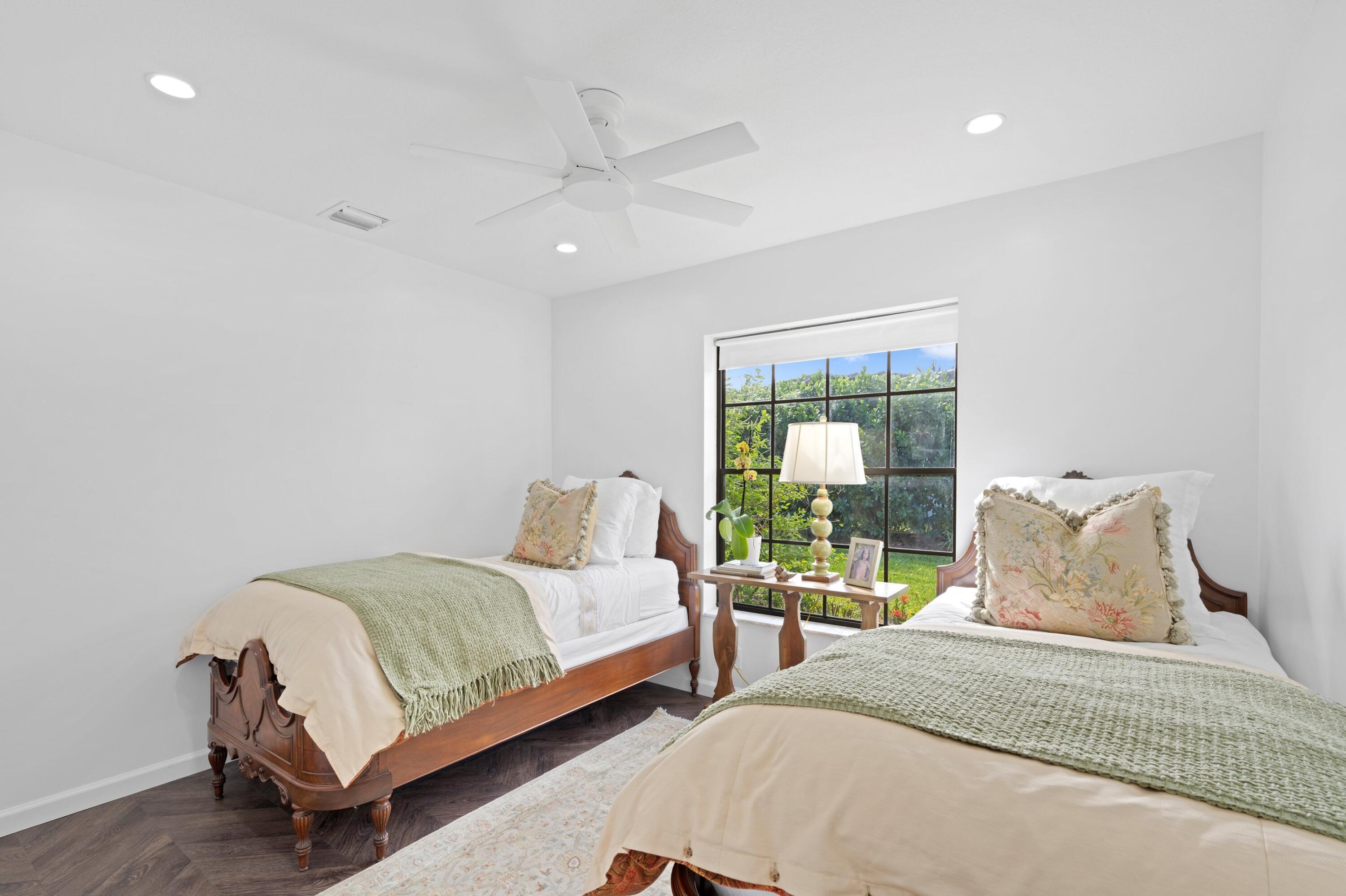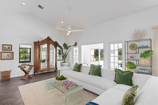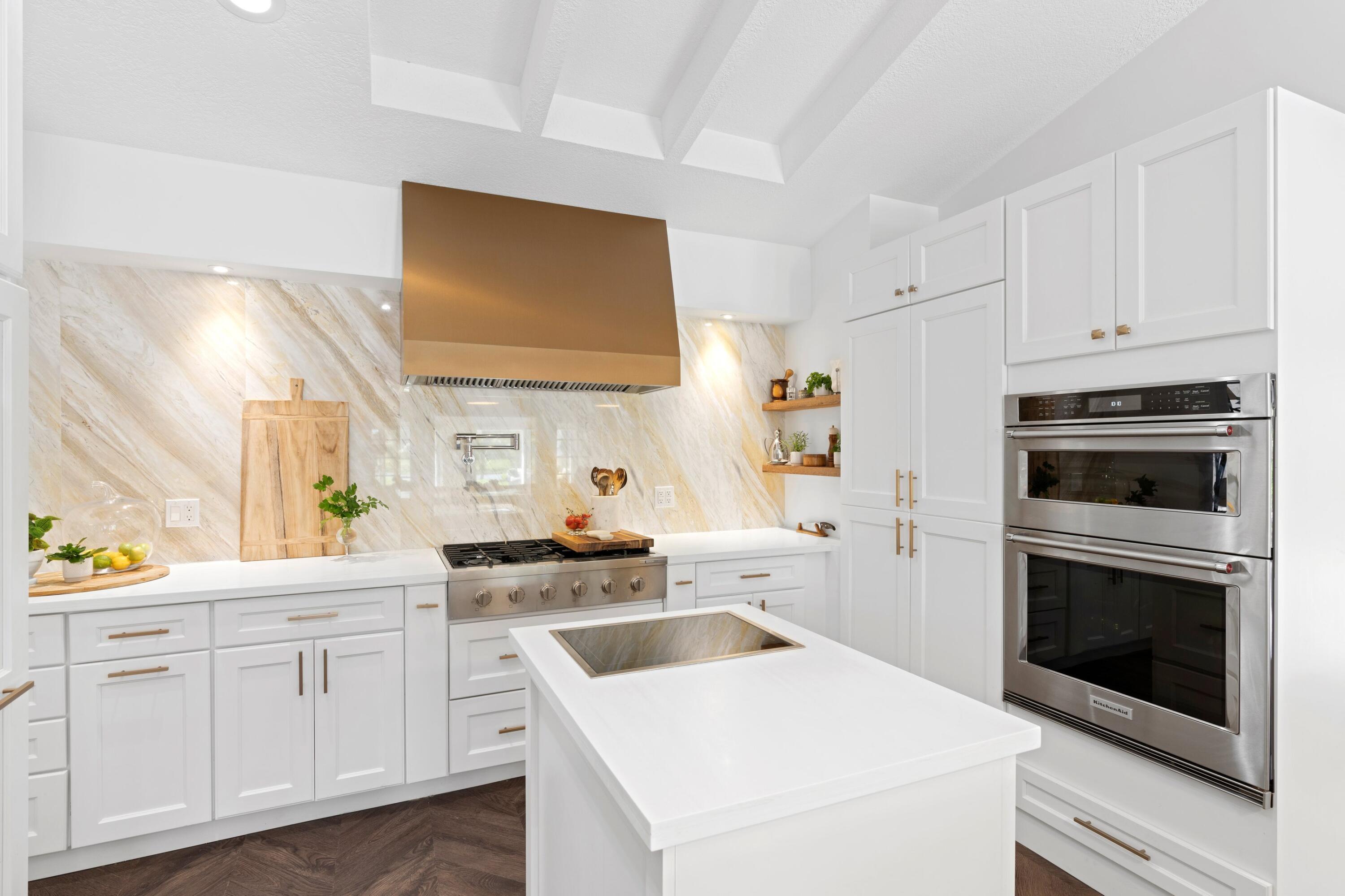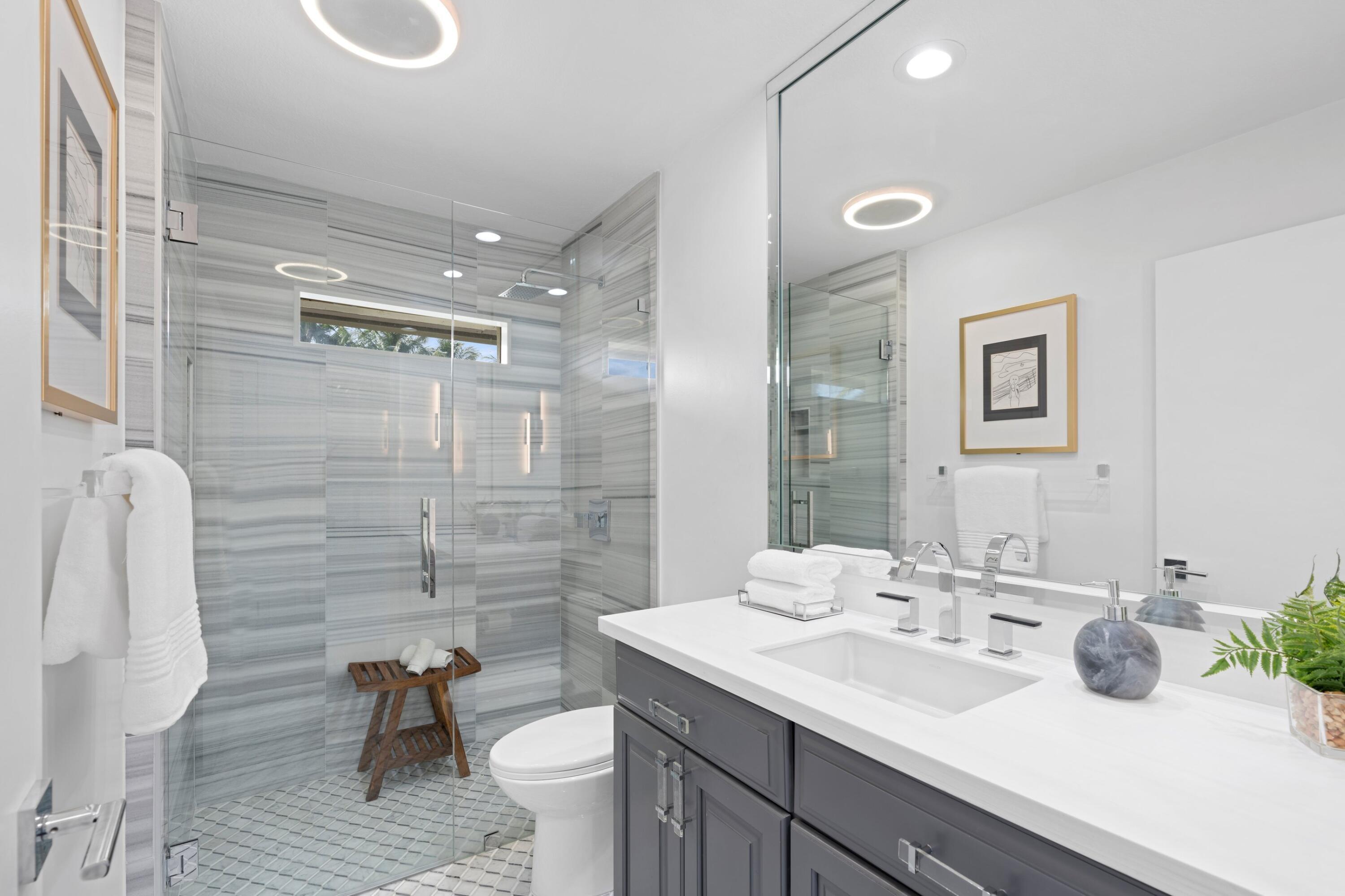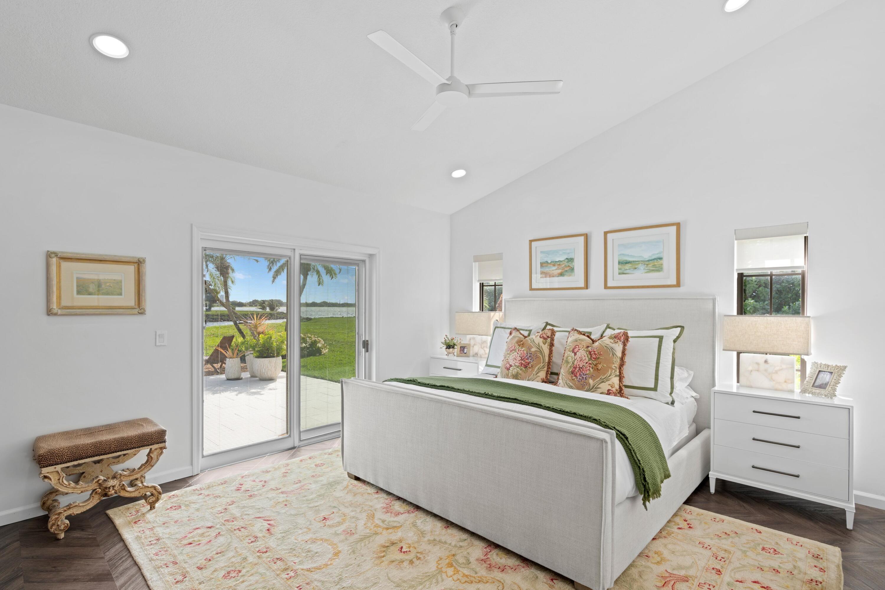 Beautifully updated direct lakefront home in Presidential Estates. A large one story contemporary home, with a large open floor plan. Chef's kitchen w/ gas cooktop., and large center island. 4 bedrooms, 3 baths, a mother-in-law guest suite, its own entrance, full bath, and 2nd kitchen that is great for catering, Luxury waterproof vinyl flooring throughout the home, vaulted ceilings in living areas, formal dining area, and office. The master suite has marble flooring, and tile, with soaking tub, and separate shower, and custom build in closets. All living areas look out to the water view, and expansive backyard, and pool deck. The kitchen opens to a marble paved patio for outdoor dining, and grilling. 2 car garage, many updated impact glass doors, and solid concrete block construction.The home has front, and back outdoor landscape lighting. Camera, and electronic door locks. The new baths have marble flooring, and custom marble tiles. The kitchen counters are quartz. Presidential Estates is east of 95, and one of the few gated communities in the city. The community has large lots, with tree lined streets. This waterfront home has direct views of Lake Mangonia, facing east. A great central location.