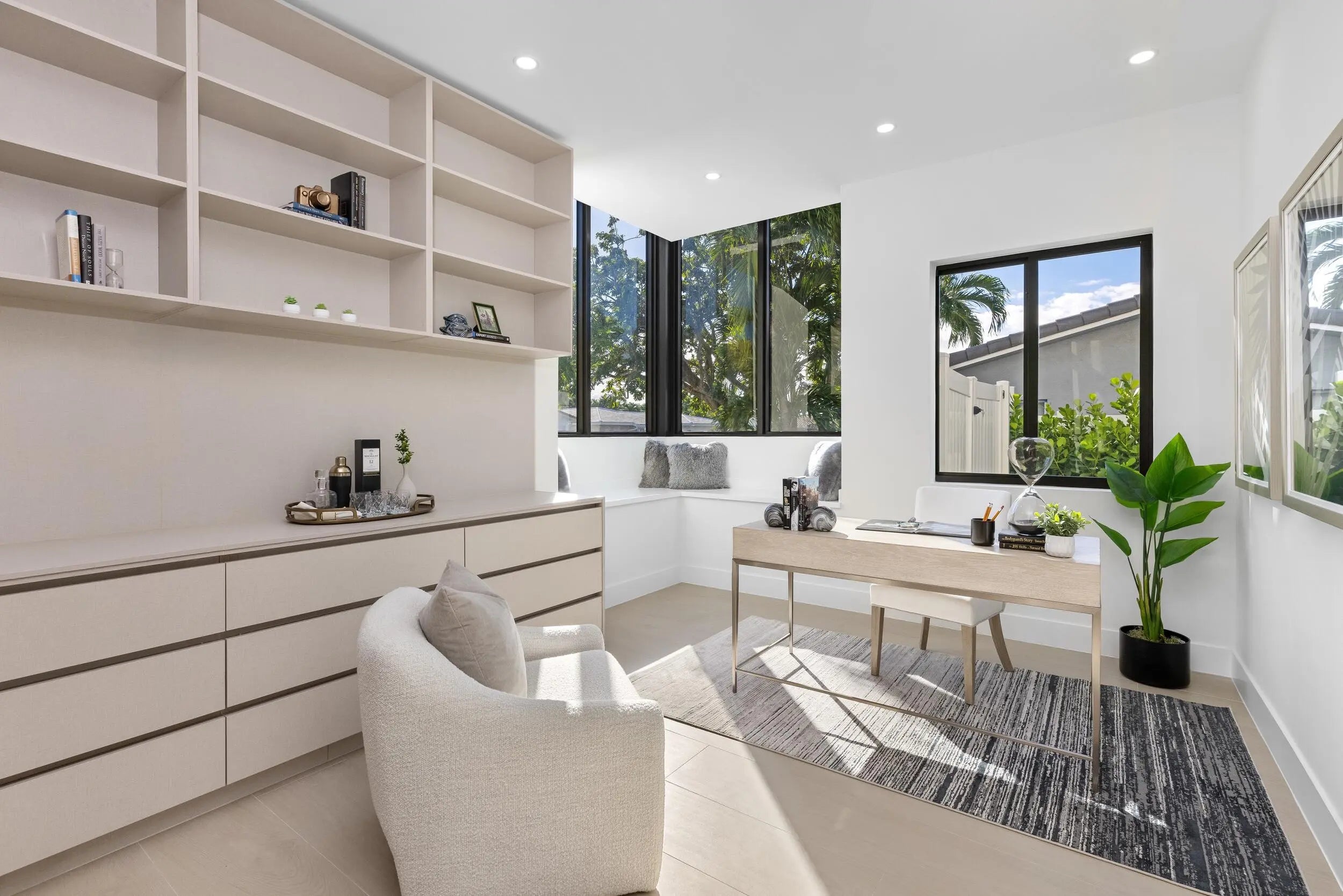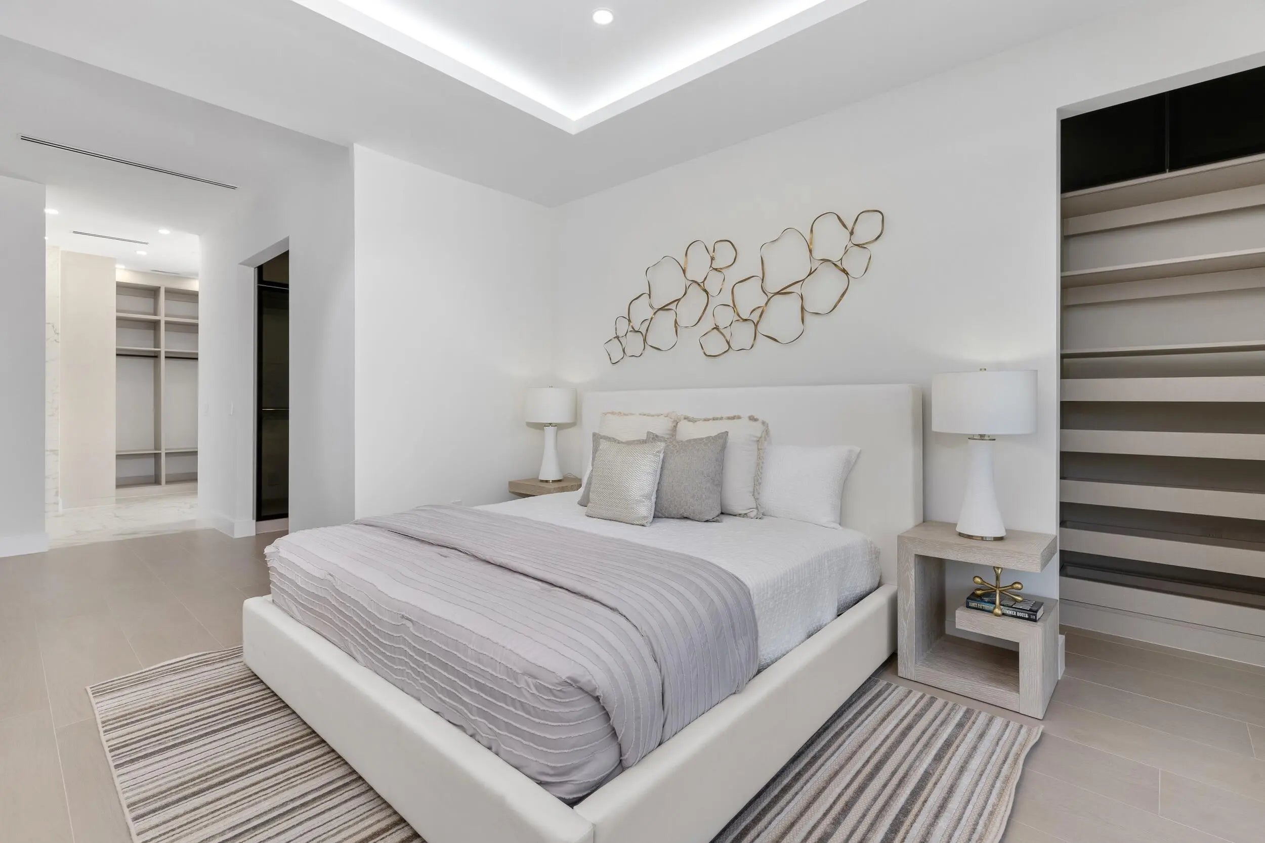 This new construction estate in prime East Boca Raton offers more than 5,000 sq. ft. of refined living space with modern architecture and resort-style amenities--an exceptional value for a move-in-ready residence in one of the area's fastest-appreciating communities. Designed for both everyday living and entertaining, the open-concept main level features double-height ceilings, custom cabinetry, and sophisticated finishes throughout. The home includes five bedrooms, six full bathrooms, one powder room, a private office, fully built-out closets, and a complete smart-home system with Sonos speakers, full camera coverage, and Wi-Fi access points.