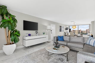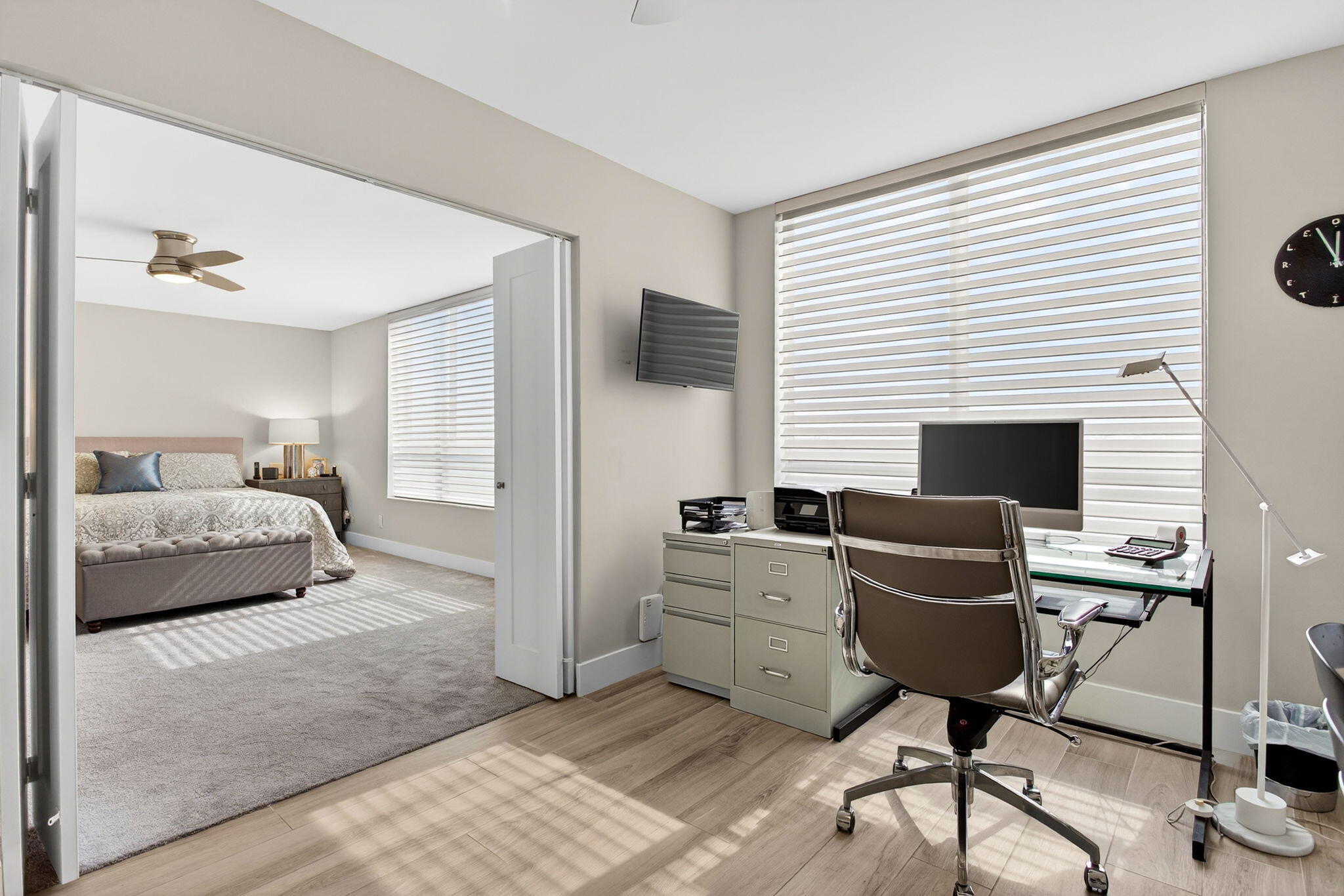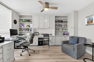 Stunning renovated condo in Promenade. Expanded living space for maximum use. Large modern white and gray tile flooring, electric blinds, upgraded doors and hardware, smooth ceilings, and more. Open kitchen offers white cabinetry, quartzite counters, glass tile backsplash, stainless appliances, added bar seating, and extra storage. 3rd bedroom converted into a spacious office off the primary suite, complete with custom built-in. Primary and 2nd bedrooms feature upgraded carpet and custom closets. Primary bath redone with double sinks, added storage, a large upgraded shower with bench, new toilet, elegant lighting, dual mirrors, and a built-in linen closet. 2nd bath and powder room both fully updated. Extra laundry tub and closet! Southern and eastern views overlooking golf and water.