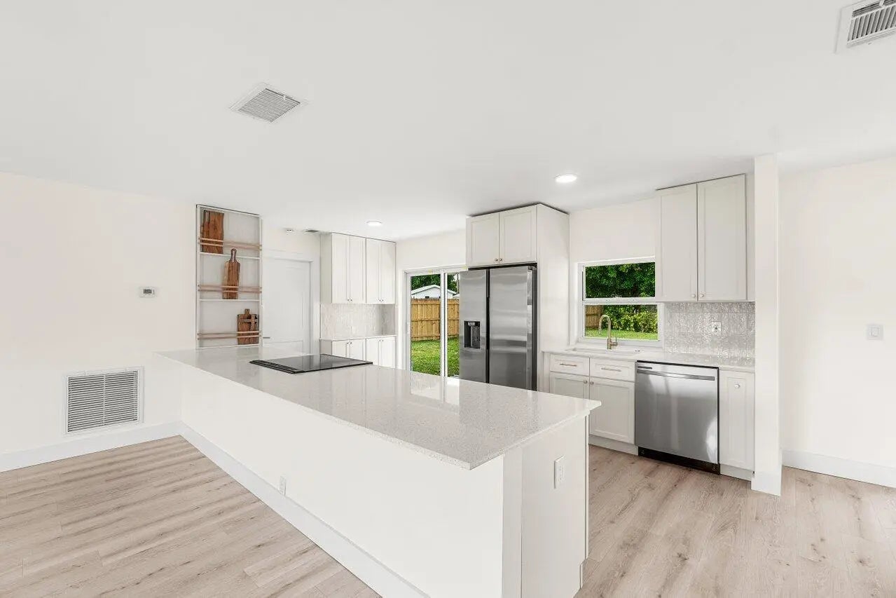 Welcome home to this beautifully renovated West Palm Beach gem! This move-in ready property features a brand-new roof, new impact windows, and a new AC. The home offers a fully redesigned kitchen with modern cabinetry, quartz countertops, and stainless-steel appliances, plus updated bathrooms, luxury flooring throughout, and fresh interior and exterior paint. Enjoy a spacious backyard perfect for entertaining. Located minutes from downtown, shopping, beaches, and major highways. Truly turnkey just move in and enjoy!