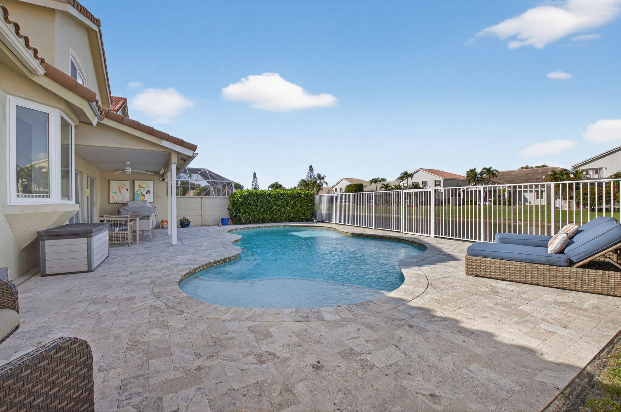 Spacious and meticulously maintained 3 bedroom, 2.1 bathroom split level home situated on private cul de sac in Boca Chase. Beautiful lake view. Windows in the home are impact glass. Updated bathrooms. Newer floors upstairs. Salt chlorinated heated pool was installed in 2018. Large outdoor entertaining space. Great entertaining space on main floor. All 3 bedrooms located upstairs. Roof is 2008.
