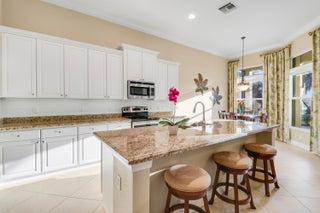 AMAZING LOT LOCATION on side street w/PEACEFUL LAKE VIEWS FRONT & BACK in the resort style community of PGA VERANO. This 3BR/2.5BA/2CG home has many upgrades t/o PLUS A WOW FACTOR NEWLY COMPLETED KITCHEN UPDATE with IVORY CABINETS & LUXURY TILE BACKSPLASH to compliment the granite counters, butler's pantry & SS appliances! Enjoy LAKE VIEWS from the charming BREAKFAST NOOK, GREAT ROOM & PRIMARY SUITE with dual closets PLUS a spa-like ensuite w/ dual vanities, soaker tub & separate shower! Guest bedrooms have access to the hallway bathroom. ANOTHER HIGHLIGHT of this property is the expanded, screened lanai w/ outdoor grill area! The perfect spot to enjoy your morning coffee or dine al fresco! More features include custom draperies, IMPACT GLASS windows & doors, newer AC (2024).VERANO is an amenity rich resort style community with a 27 court pickleball center, walking paths, multiple community pools & fitness centers, sauna, dog park, tennis courts, social clubhouse with activities and more. HOA dues include basic cable, internet, alarm monitoring, lawn care, common area maintenance, gated security and access to all amenities. For avid golfers, there is a cart path from the community leading to the PGA Golf Club (membership is optional and availability varies). This community truly has something for everyone. Call today to view this exceptional property and start enjoying the Florida Lifestyle!