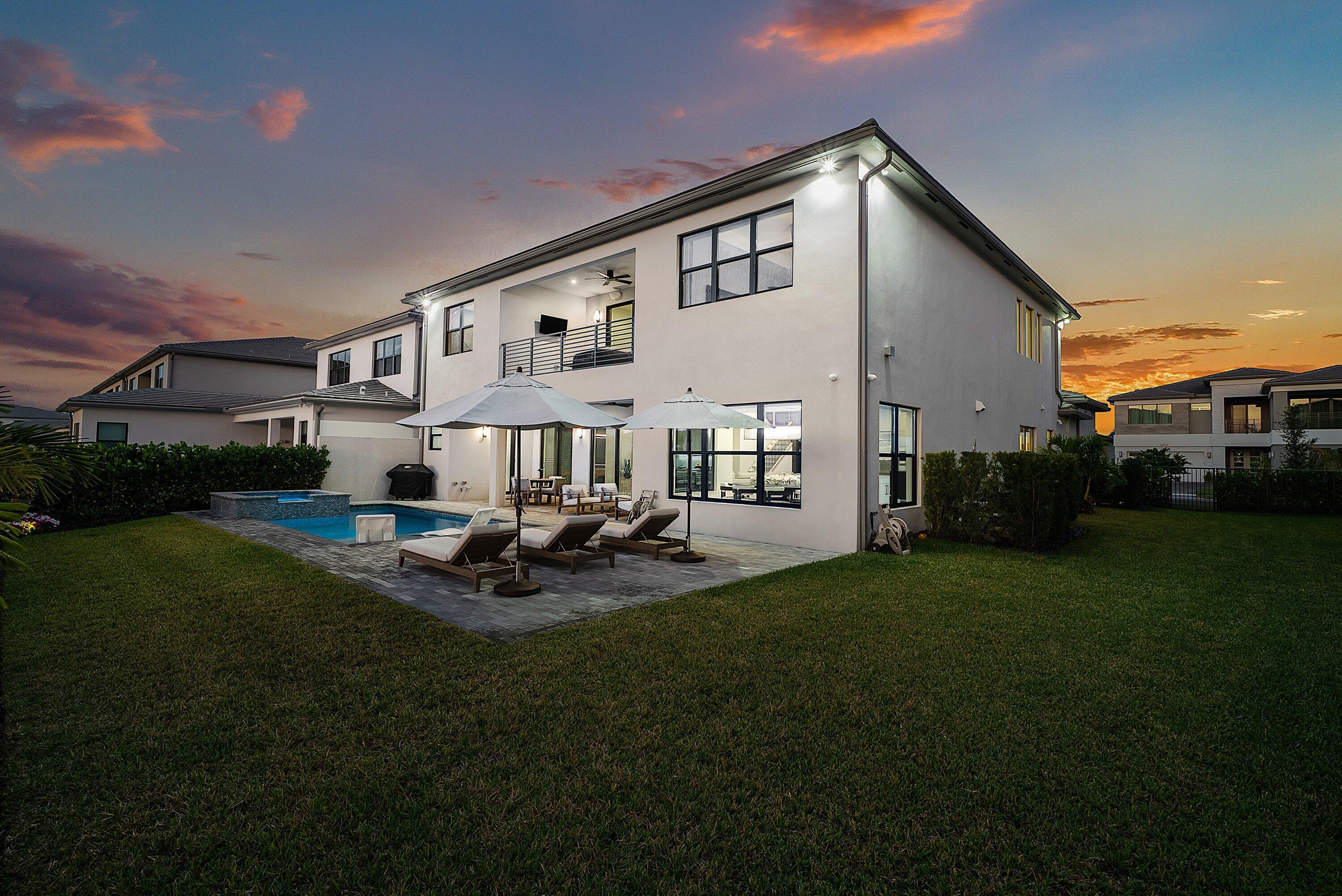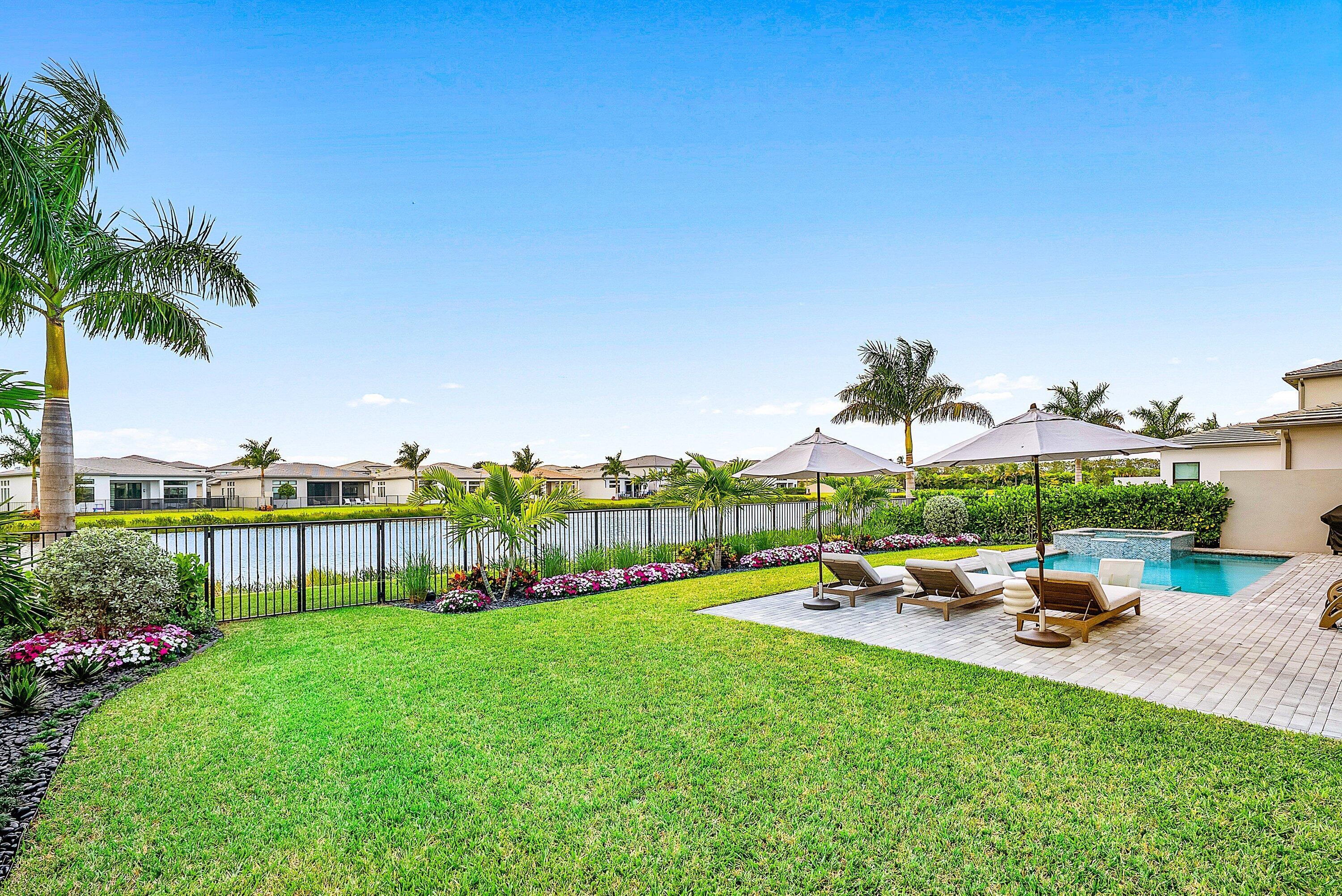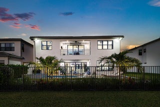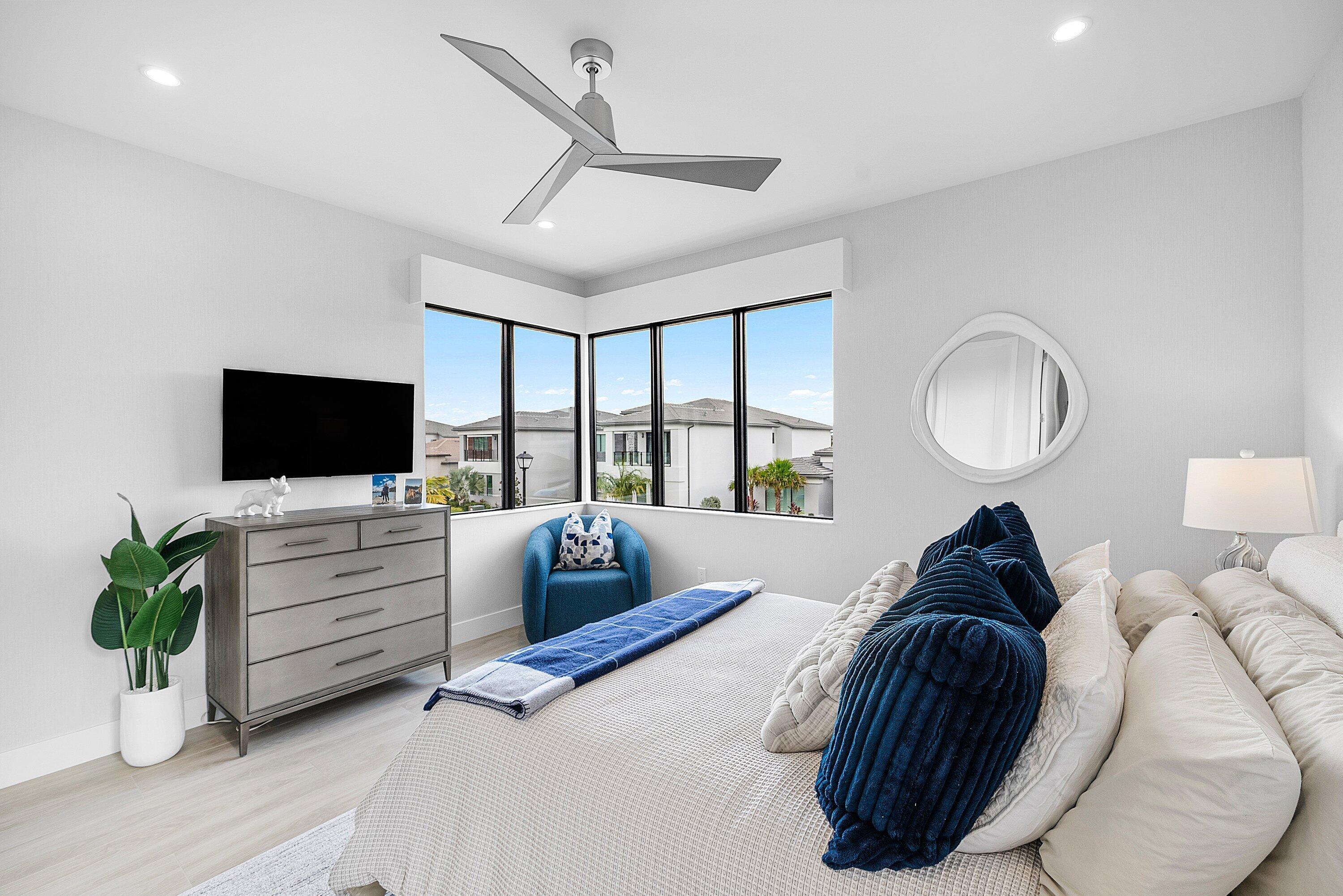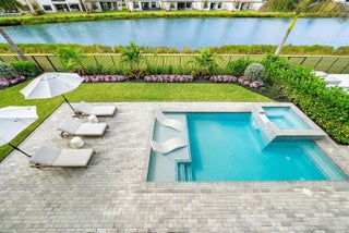 Welcome to this exceptional Laguna residence in the sought-after community of Lotus Palms, perfectly positioned on a premium lake lot at the end of a quiet cul-de-sac. From the moment you arrive, you are greeted with beautiful lake views from both the front and back of the home, creating a serene and private setting rarely found in the community. Masterfully upgraded inside and out, this residence delivers refined design, thoughtful functionality, and a true resort-style living experience.A grand entry sets the tone with a custom foyer chandelier, paneled feature wall, and designer finishes that continue throughout the home. Thoughtfully designed for today's lifestyle, the residence offers 5 total bedrooms, including one full bedroom with a private en-suite bath on the main level--ideal for guests or multigenerational livingplus four additional bedrooms upstairs along with a spacious loft. The main level also features a stylish club room with an accent wall, and a beautifully designed cabana bathroom with convenient access to the pool and patio. At the heart of the home sits a chef-ready kitchen equipped with a Sub-Zero refrigerator, Wolf oven and stovetop, Wolf microwave, Cove dishwasher, ceiling-height cabinetry, and a large center island perfect for gatherings. The adjacent family room is anchored by a custom TV wall with cabinetry and LED lighting, creating a warm yet modern atmosphere. Upstairs, the expansive loft serves as an additional living area complete with a custom TV wall unit with shelving and LED accents. The master suite is a true retreat, offering sweeping lake views, a custom accent wall, designer light fixture, dual walk-in closets, and an expansive spa-inspired master bathroom enhanced with level-5 cabinetry, premium finishes, upgraded Toto fixtures, and a custom shower enclosure. Each upstairs bedroom features custom built-in closets, designer wallpaper, upgraded Toto toilets, and custom shower doors where applicable. The second floor is finished with ceramic wood-grain flooring, while the staircase and railings have been fully customized beyond builder offerings. A whole-home speaker system enhances everyday living, with audio in the kitchen, family room, club room, loft, master bathroom, and both upstairs and downstairs patios. The outdoor space is a private lakeside sanctuary showcasing sweeping lake views from the west-facing backyard, a heated saltwater pool with sunshelf, spa, and an expanded side yard enhanced by custom landscaping, landscape lighting, and a frog fence. A gas hookup, water line, and drain are already in place for a future summer kitchen. The sunset-facing exposure provides dramatic skies and glowing lake reflections every evening. Additional features include a 3-car garage with epoxy floors, EV charging outlet, extended driveway, security cameras, WiFi boosters, ceiling fans in all secondary bedrooms, the loft, and patios, and a fully upgraded laundry room with GE washer & dryer. Enjoy a premier lifestyle with a state-of-the-art clubhouse offering gourmet dining, a fully equipped fitness center, resort-style pools, tennis, and pickleballall within minutes of the beaches, Mizner Park, and Boca Town Center.