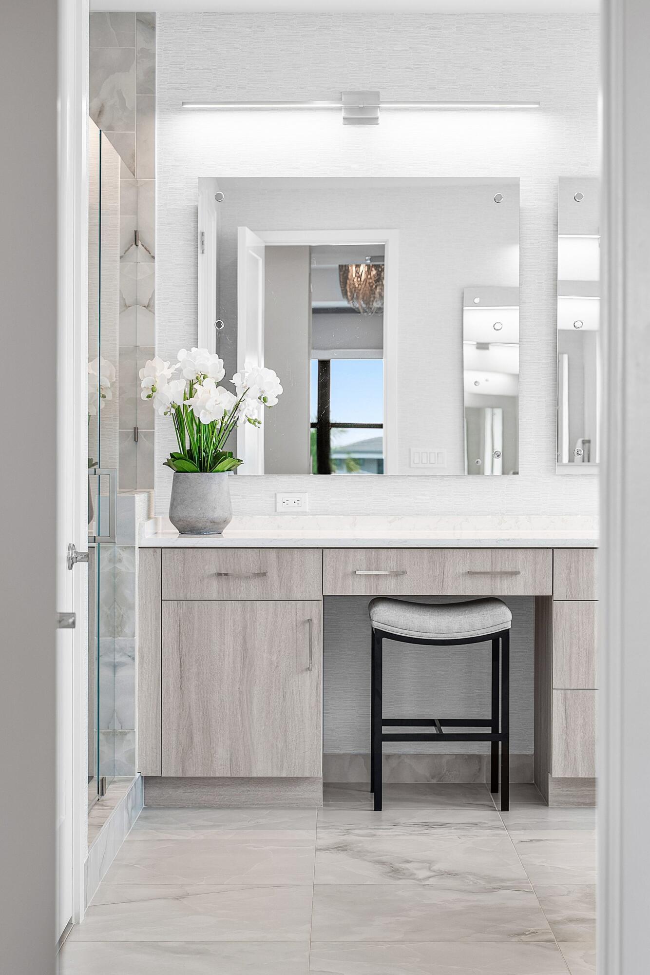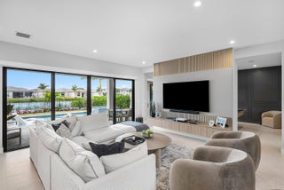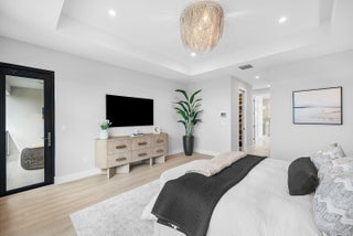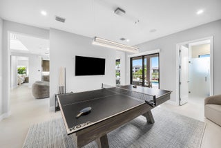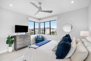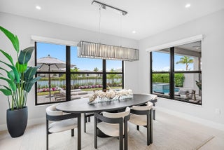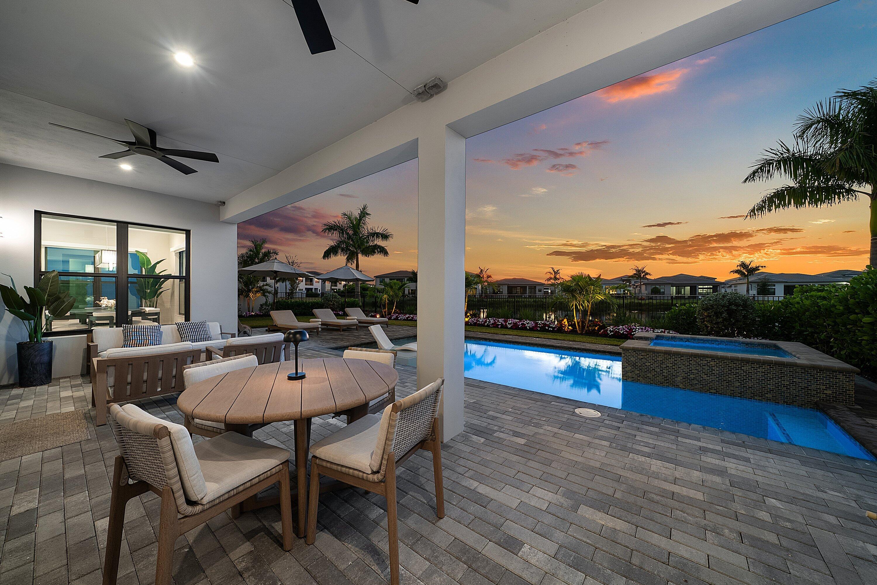 Welcome to this exceptional Laguna residence in the sought-after community of Lotus Palms, perfectly positioned on a premium lake lot at the end of a quiet cul-de-sac. From the moment you arrive, you are greeted with beautiful lake views from both the front and back of the home, creating a serene and private setting rarely found in the community. Masterfully upgraded inside and out, this residence delivers refined design, thoughtful functionality, and a true resort-style living experience.A grand entry sets the tone with a custom foyer chandelier, paneled feature wall, and designer finishes that continue throughout the home. Thoughtfully designed for today's lifestyle, the residence offers 5 total bedrooms, including one full bedroom with a private en-suite bath on the main level--ideal for guests or multigenerational livingplus four additional bedrooms upstairs along with a spacious loft. The main level also features a stylish club room with an accent wall, and a beautifully designed cabana bathroom with convenient access to the pool and patio. At the heart of the home sits a chef-ready kitchen equipped with a Sub-Zero refrigerator, Wolf oven and stovetop, Wolf microwave, Cove dishwasher, ceiling-height cabinetry, and a large center island perfect for gatherings. The adjacent family room is anchored by a custom TV wall with cabinetry and LED lighting, creating a warm yet modern atmosphere. Upstairs, the expansive loft serves as an additional living area complete with a custom TV wall unit with shelving and LED accents. The master suite is a true retreat, offering sweeping lake views, a custom accent wall, designer light fixture, dual walk-in closets, and an expansive spa-inspired master bathroom enhanced with level-5 cabinetry, premium finishes, upgraded Toto fixtures, and a custom shower enclosure. Each upstairs bedroom features custom built-in closets, designer wallpaper, upgraded Toto toilets, and custom shower doors where applicable. The second floor is finished with ceramic wood-grain flooring, while the staircase and railings have been fully customized beyond builder offerings. A whole-home speaker system enhances everyday living, with audio in the kitchen, family room, club room, loft, master bathroom, and both upstairs and downstairs patios. The outdoor space is a private lakeside sanctuary showcasing sweeping lake views from the west-facing backyard, a heated saltwater pool with sunshelf, spa, and an expanded side yard enhanced by custom landscaping, landscape lighting, and a frog fence. A gas hookup, water line, and drain are already in place for a future summer kitchen. The sunset-facing exposure provides dramatic skies and glowing lake reflections every evening. Additional features include a 3-car garage with epoxy floors, EV charging outlet, extended driveway, security cameras, WiFi boosters, ceiling fans in all secondary bedrooms, the loft, and patios, and a fully upgraded laundry room with GE washer & dryer. Enjoy a premier lifestyle with a state-of-the-art clubhouse offering gourmet dining, a fully equipped fitness center, resort-style pools, tennis, and pickleballall within minutes of the beaches, Mizner Park, and Boca Town Center.