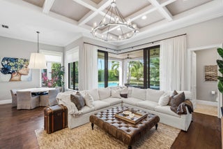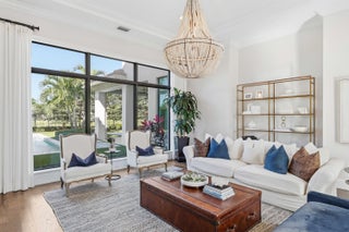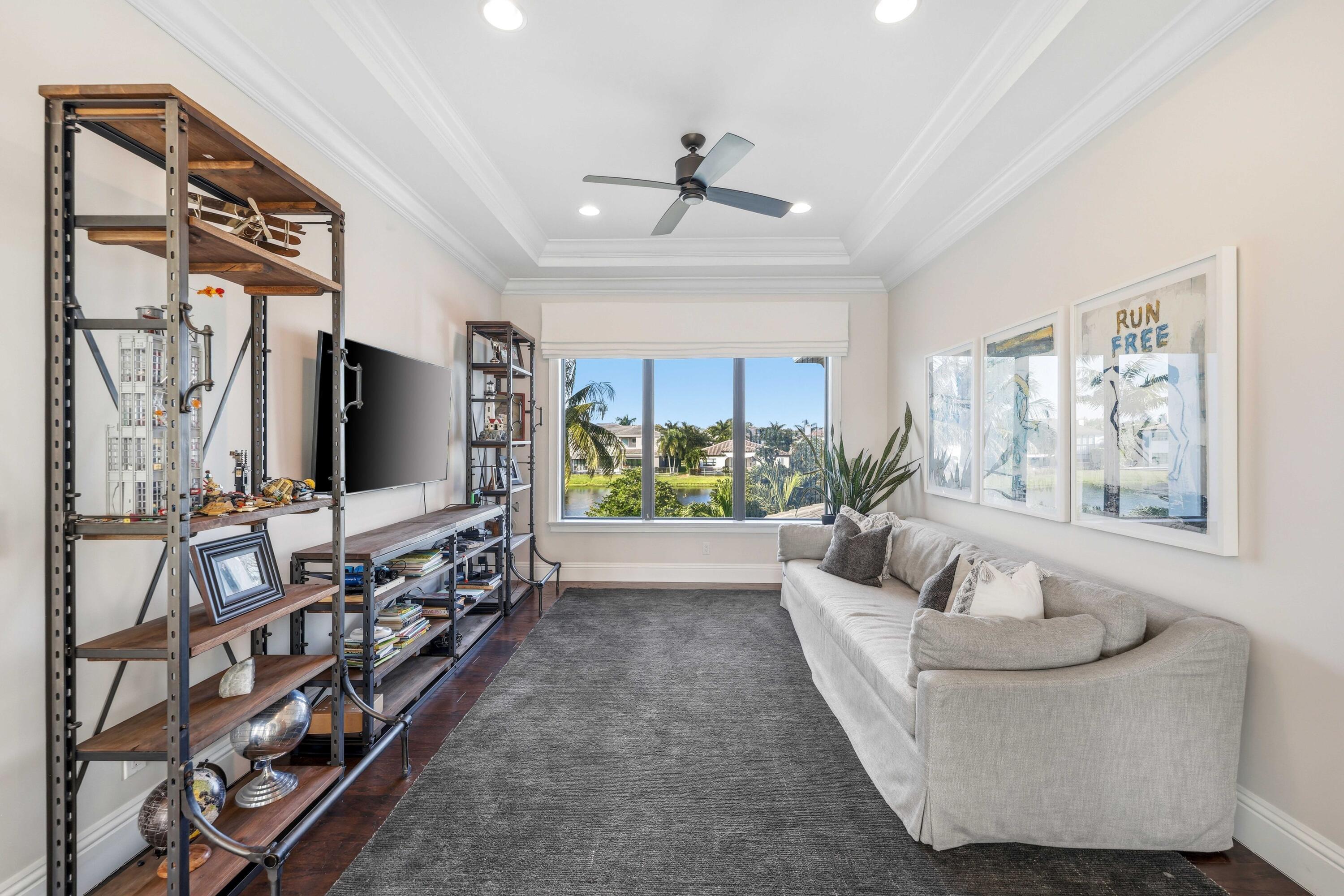 As you enter the home, you are immediately struck by the light streaming in from the stunning backyard, the soaring ceilings, and the thoughtful, high-end finishes. The home boasts a formal living room with tray ceilings and fireplace that flows into an expansive club room/office with beam ceiling detail, a full bathroom, and built-ins. The formal dining room has been outfitted with wainscoting and designer wallpaper andand is located across from the marble-walled wine and bar room. The stunning open chef's kitchen includes a honed Calcutta island, marble backsplash, a Wolf gas range and hood, a Subzero refrigerator, two Asko dishwashers, a pot filler, two sinks (including one on the island), a warming drawer, wall oven, and an abundance of storage including the built-out, walk-in pantry. The kitchen's dining nook overlooks the backyard and has designer built-ins. The kitchen opens into the spacious family room with coffered ceilings, a cabana bath, and stackable sliders leading into the backyard oasis. The home's oversized, private, waterfront backyard was meticulously designed and boasts artificial turf, mature foliage, and 16"x24" marble pavers. The covered patio includes a wood ceiling and a built-in, high-end sauna. The expansive pool is heated and salt water chlorinated and includes a hot tub, sun shelf, and water feature. The first floor of the home also boasts a guest suite (currently being used as a gym) with plantation shutters, ensuite bath, and walk-in closet, as well as a powder room and a laundry room. The second floor of the home offers a spacious loft overlooking the backyard and lake, a second laundry room, and four bedrooms (including the primary suite)--all boasting expansive closets, ensuite baths, and designer finishes. The primary suite is a true sanctuary. The suite includes a massive walk-in, built-out closet and a spa-like bathroom with marble floors, designer accent tile, double vanities, a separate tub, and frameless shower with handheld, standard, and rain shower fixtures. The spacious suite boasts tray ceilings and opens onto a private wood-ceiling balcony with sweeping water views. Other whole-house features include hardwood floors, Restoration Hardware lighting, impact glass, and elegant millwork throughout, two newer ACs (2021 & 2022), a newer hot water heater (2022), and two garages with room for three cars in total. The oversized driveway provides for ample additional parking. 9089 Pintura Way is located in The Oaks in Boca Raton close to shopping, dining, and entertainment. The highly-coveted, non-equity gated community boasts a gorgeous clubhouse, restaurant and bar, a resort-style pool and spa, tennis, pickleball, kid and teen rooms and activities, full service spa, as well as a high-end fitness facility. A VIDEO OF THE HOME CAN BE FOUND IN THE LISTING--PLEASE CHECK IT OUT!