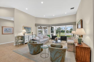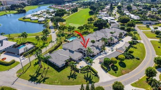 Gorgeous, sweeping views of golf course and lake from sophisticated, spacious recently-renovated residence. Small boutique building comprised of 10 units. Desirable top floor location with private elevator to vestibule and living space. Two bedrooms plus den, two and a half baths, large laundry room with tub near kitchen. Professionally designed kitchen with upgraded appliances, quartz countertops, stone backsplash, handsome white cabinetry and wine fridge Inviting covered screened room off eat-in kitchen is perfect for entertaining or simply relaxing in tranquil setting Airy 12 -ft ceilings, recessed lighting, complete impact glass. Open floor plan with large stunning living room. Residence includes one car garage, carport and golf cart barn. Heated pool. Small pet okay. Rareopportunity in the sought after gated City of Atlantis.