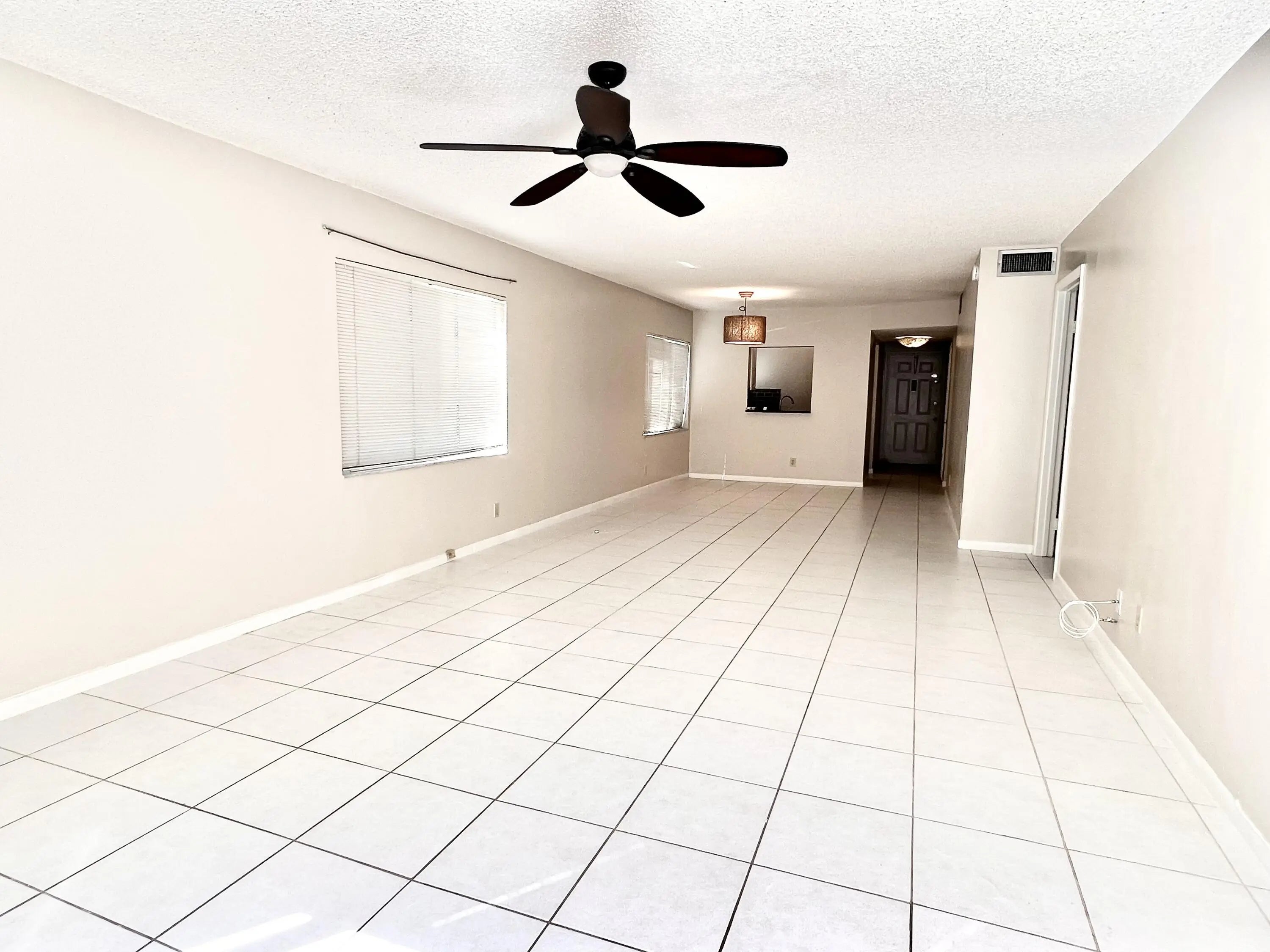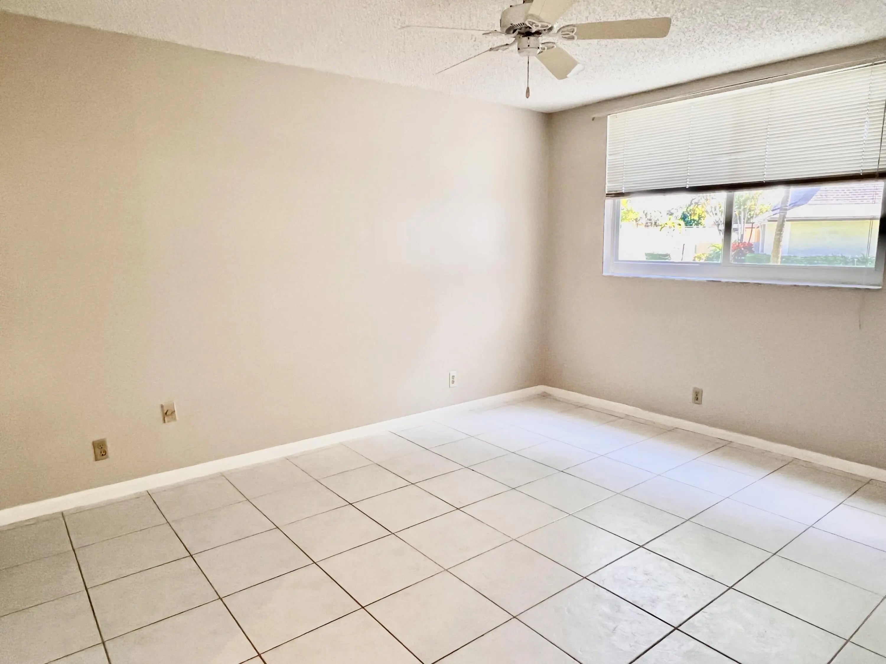 This 2 bedroom 2 bathroom first floor condo features a modern feel with tile flooring throughout and laminate in the second bedroom. The updated kitchen includes stainless steel appliances, and there's plenty of closet space and the added bonus of a washer and dryer in the condo for your convenience. Step outside to enjoy a park like setting right at your back door and the community pool just a short walk away. This is an all age community located conveniently in Delray Beach.