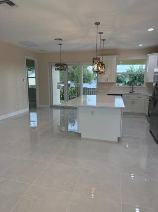 Brand new construction with multi generational living possible. The home features hurricane impact low E windows, porcelain tile flooring throughout The kitchen features self closing white wood cabinets, with quartz countertops, stainless steel appliances. There is a a bar with additional cabinets and quartz counters with tons of storage. The home features 2 bedrooms o n each side with dual front entrances. The possibilities are endless.
