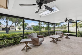 Spacious, bright, and well maintained 2 Bedroom + den detached home in Boca Chase 55+ subdivision, Greenbriar. Enjoy vaulted ceilings, natural light, and a 20x20 covered & screened patio. The home features many updates including: 2022 roof, 2022 AC, newly dug well for sprinklers and new sprinkler heads, newly paved driveway, new trellis column, new interior paint, new baseboards, new skylights in the patio, two renovated bathrooms, and stainless steel appliances. Greenbriar offers tennis, pickleball, and a heated pool for a very reasonable HOA fee. Enjoy the peace and tranquility of detached living in this prime location just minutes away from shopping, dining, golf, and parks!