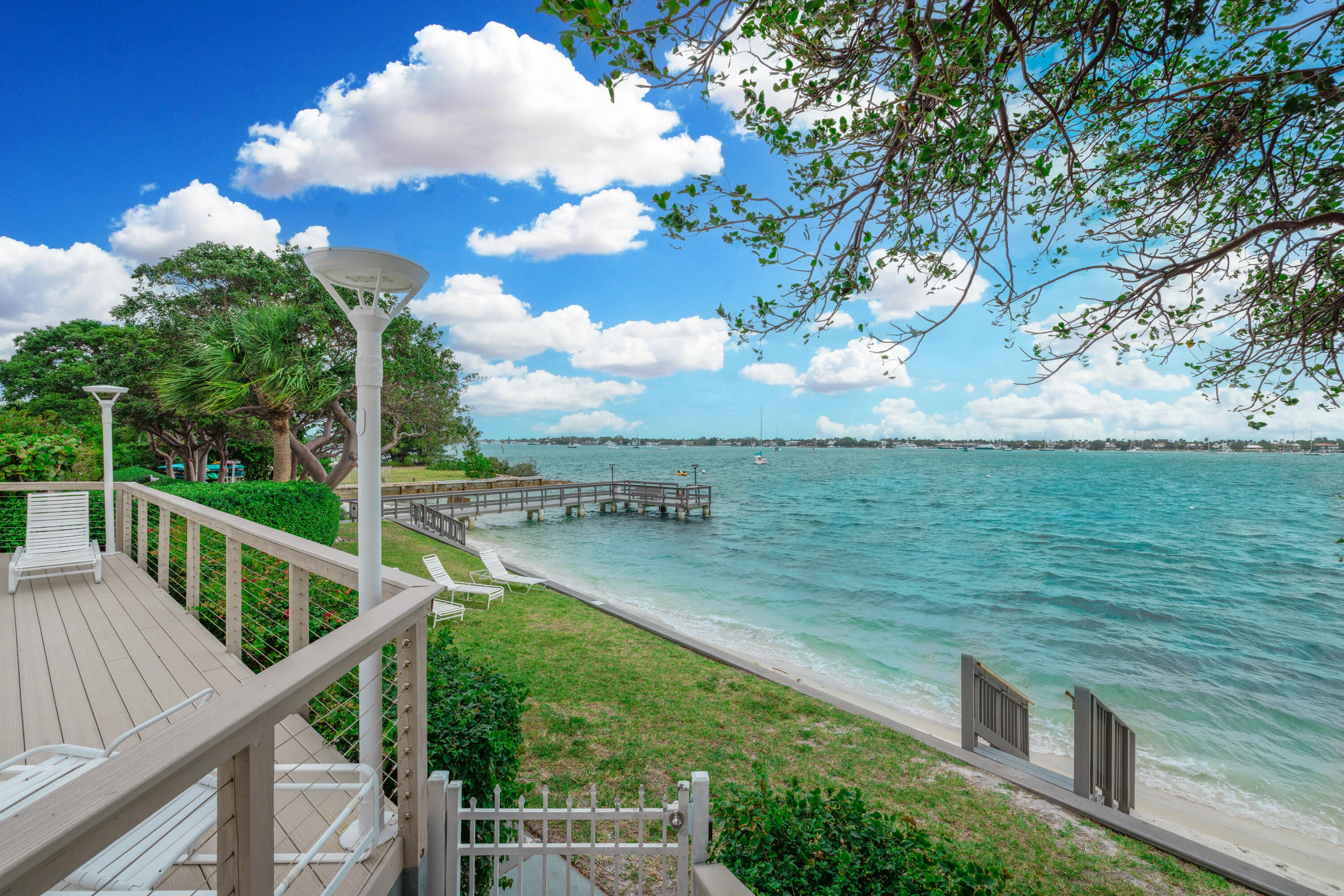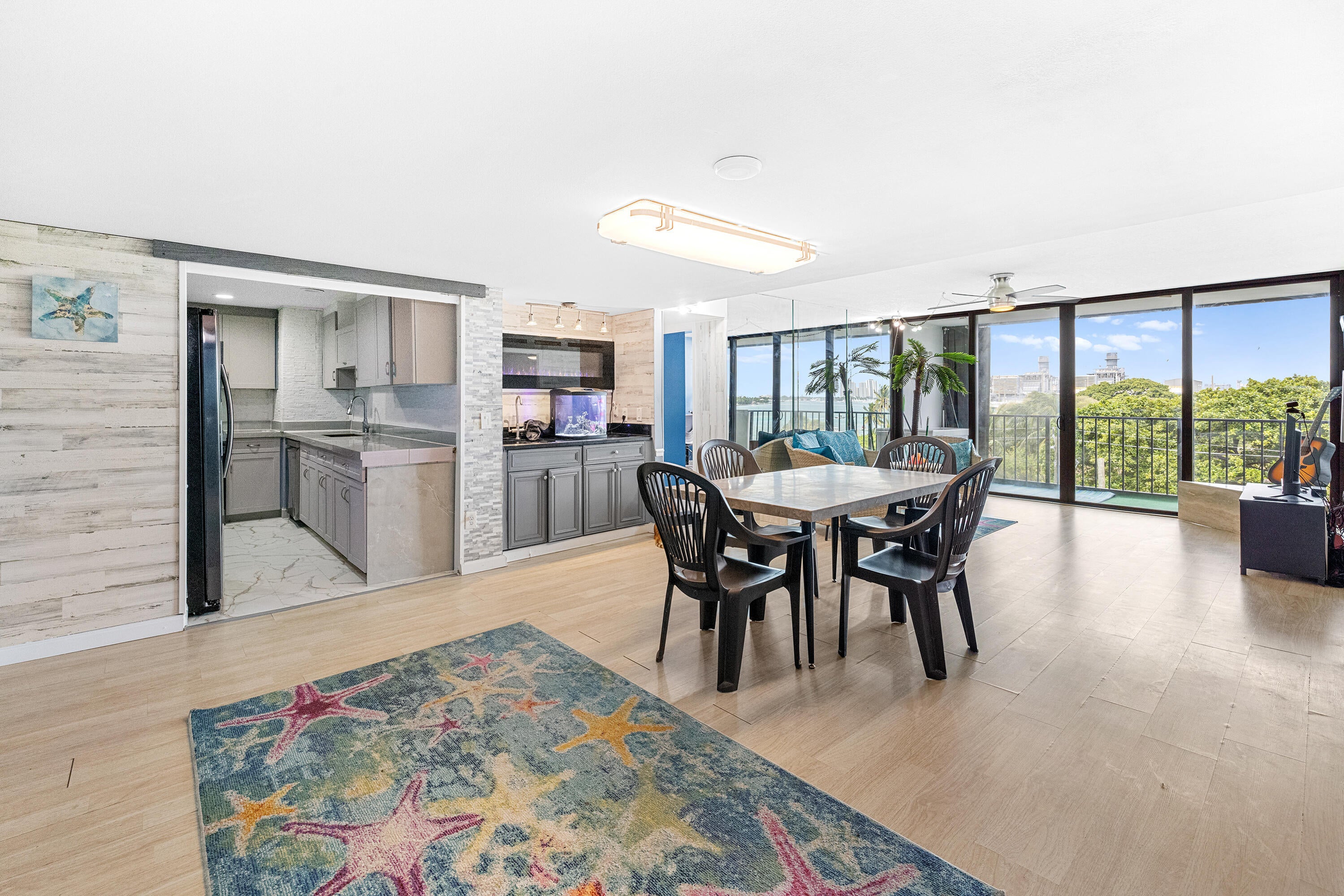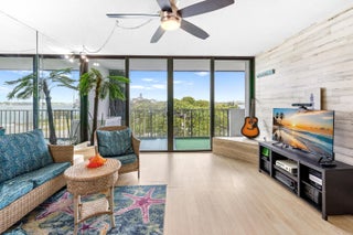 Enjoy gorgeous intracoastal views from this bright and airy 3 bedroom, 2 bathroom unit that comes with VERY RARE TWO MOORING BALL BOAT PARKING near the building's private fishing dock! When not used, you can easily rent those spots to other residents in the building. The living area and hallway are finished with shiplap. The split floor plan offers a lot of privacy. The primary bedroom offers access to the covered balcony and has a walk-in closet. The guest bathroom has a shower, quartz vanity and a stone encased wall. HOA includes exterior building insurance, internet, basic cable, water, sewer, trash, pest control and common area maintenance. Palm Beach House offers amazing amenities including its own private beach on intracoastal, three BBQ grills, lap pool, party rooms, library,fitness center, tennis, manned-gate and an attended lobby. All measurements are approximate. Take a look at the 3D virtual walkthrough.
