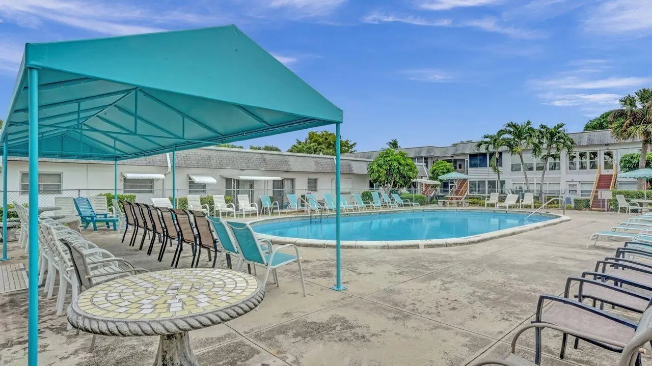Welcome to Century Village, a premier 55+ community in West Palm Beach! This 1-bed, 1.5-bath condo features an open-concept layout, updated kitchen, and private balcony with scenic views. Enjoy resort-style amenities including a heated pool, tennis courts, fitness center, sauna, clubhouse, and walking trails. Stay active with clubs, fitness classes, arts & crafts, and more. Conveniently located near shopping, dining, beaches, and Palm Beach International Airport. Live the vibrant Florida lifestyle--schedule your private showing today!This unit is ideal for seasonal or year-round living in a secure, gated community with 24/7 security. HOA includes water, cable, exterior maintenance, and access to all amenities. Courtesy buses provide easy transportation
