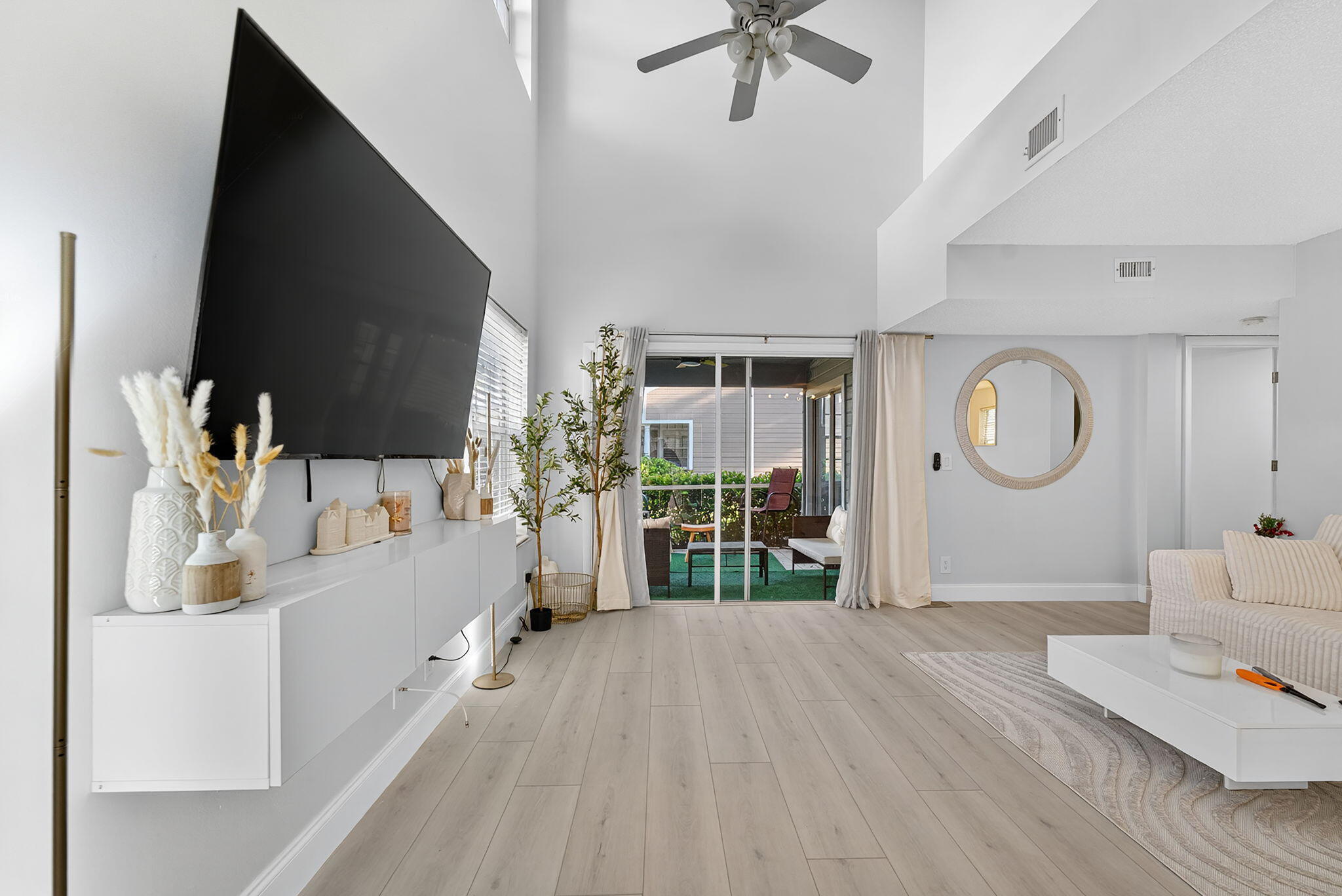 Beautiful first-floor unit with a private 1-car garage, featuring new wood flooring, an updated kitchen and bathrooms, and fresh interior paint throughout. Enjoy the airy, open feel created by high ceilings, a sun-filled skylight, and a living room that flows seamlessly to a screened-in porch. Additional upgrades include a brand-new AC and a new electrical panel, offering peace of mind and long-term value. Fairfield is ideally situated in the heart of Boca Raton, just steps from a major shopping center with multiple restaurants and everyday conveniences. This gated community offers outstanding amenities, including a clubhouse, community pool, and a 24-hour manned guard gate. A new roof was recently installed, and the assessment has already been paid for by the owner