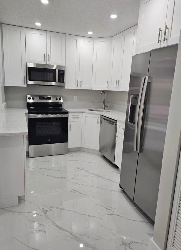Beautifully updated modern 2nd floor,2/2 in a desirable gated community, open concept living with porcelain marble looking tile throughout. SS applicances washer dryer in unit, sparkle Quartz countertops, white shaker soft close cabinets, spacious bedrooms with walk in closets in both rooms! Fully renovated upscale bathrooms! Community features a resort style pool, tennis court, playground, walking trail around lake. Minutes to the Palm Beach Outlets, downtown, the beaches, I-95, Turnpike and PBIA, 680 minimum credit score required by HOA.
