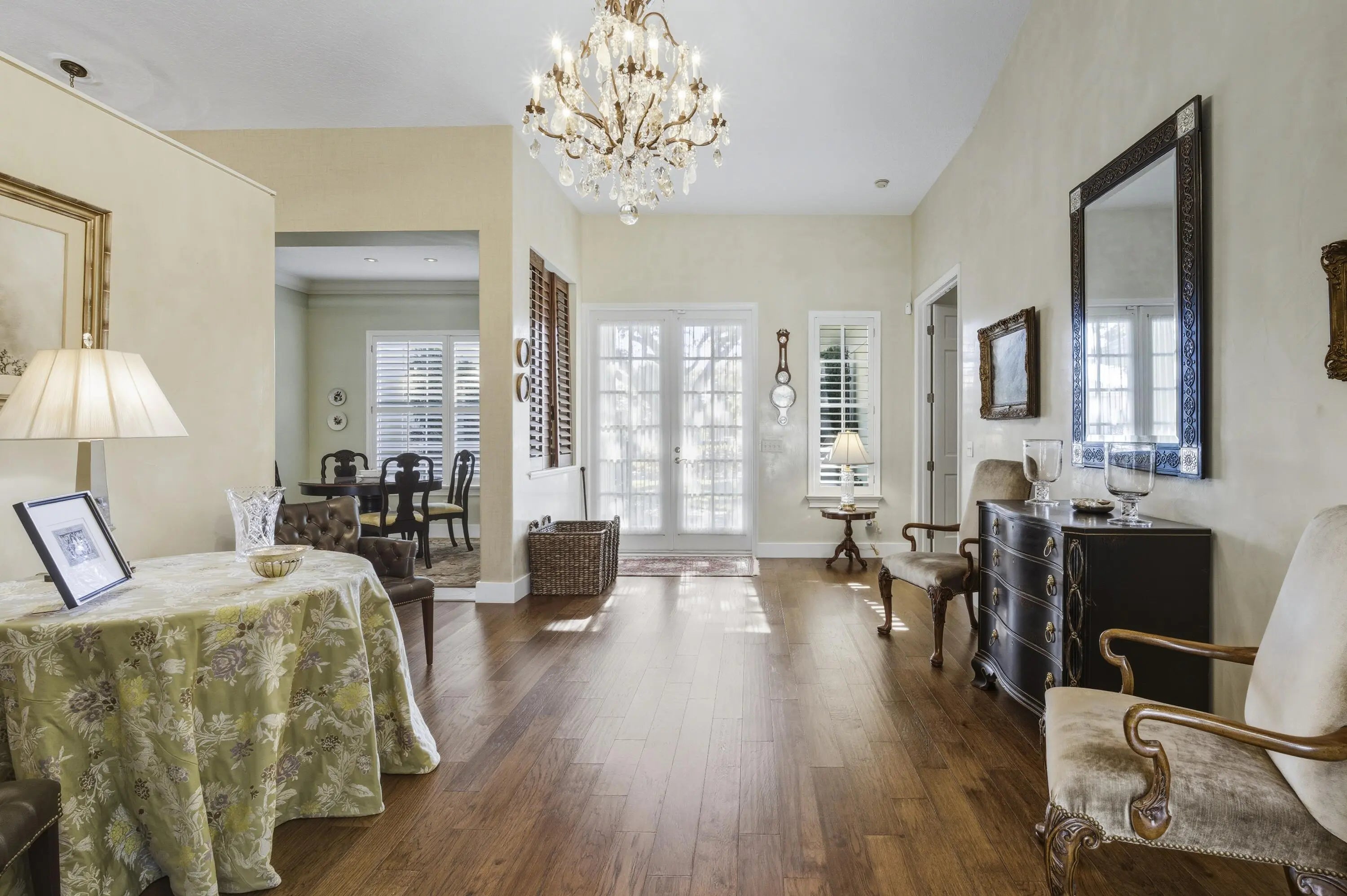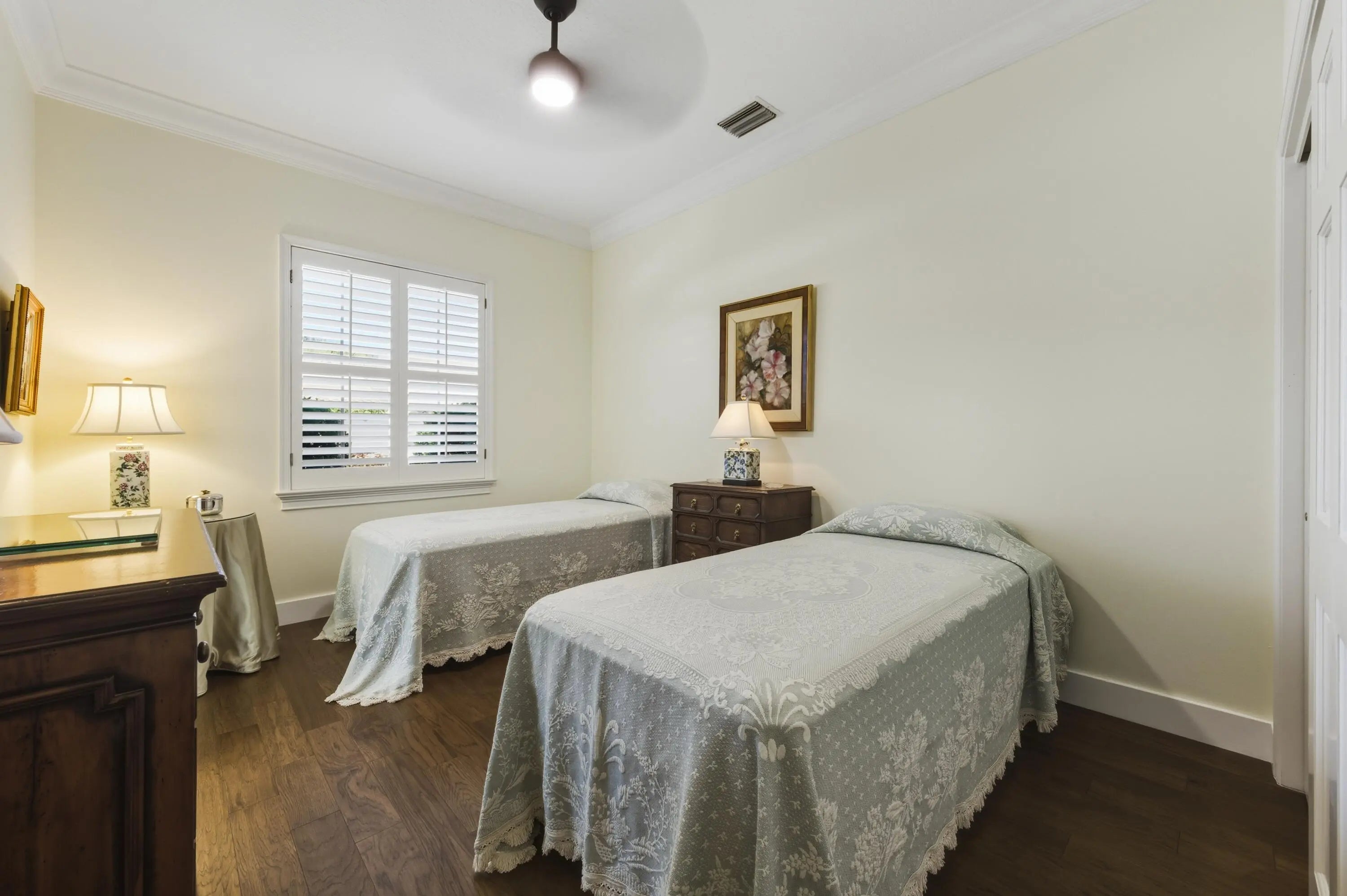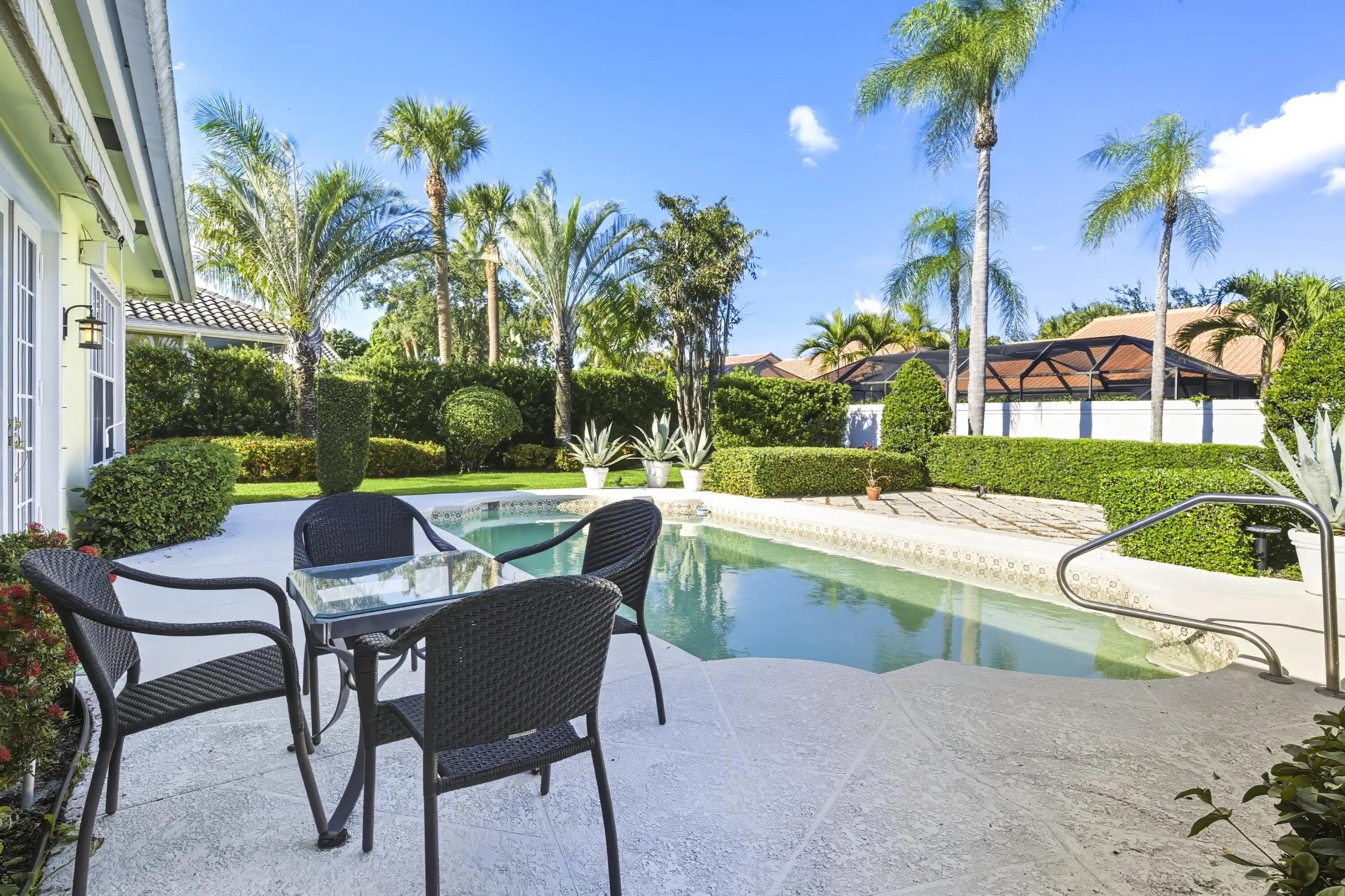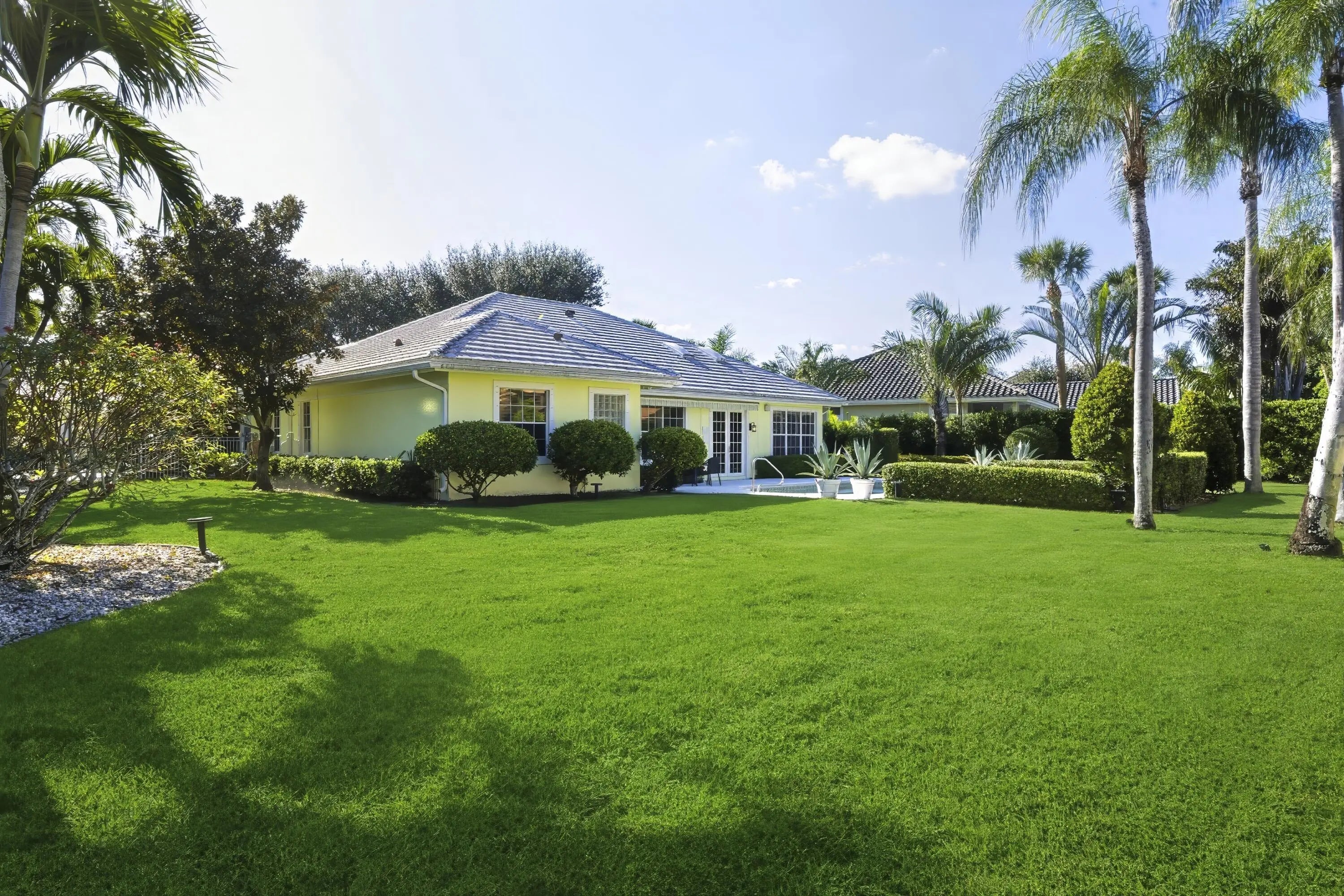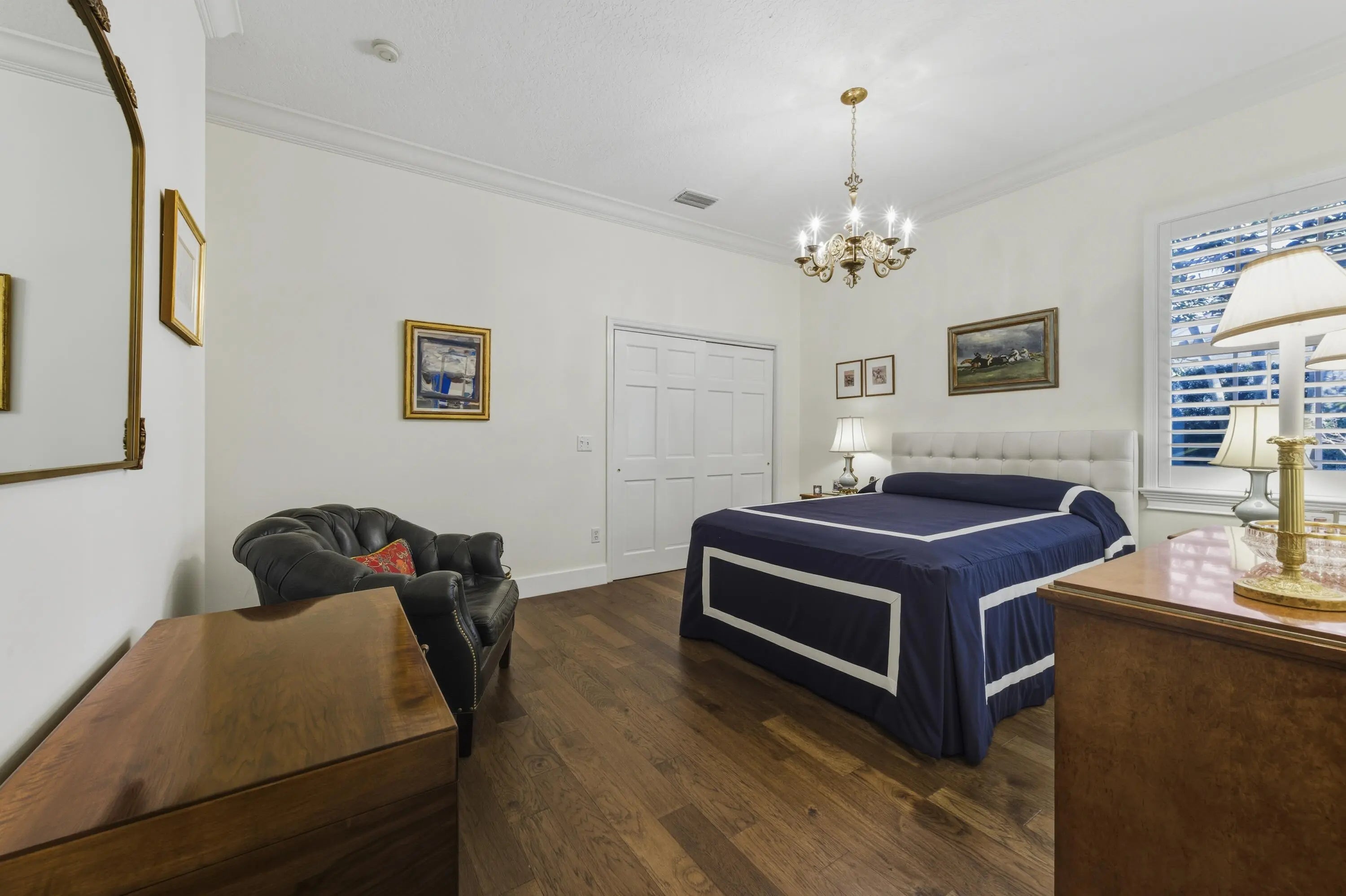 Elegant and tasteful one story home in sought after Bear Lakes Estates. Newly updated and immaculately maintained 4 Bedroom 3.5 bath residence is move-in ready. New roof 2019, newer three-zone HVAC, as well as new luxury updates to primary bath and two guest baths. With generous volume rooms, the soaring cathedral ceilinged chef's kitchen is a gourmet cook's dream. Viking gas cookware, Sub Zero, high-end St. Charles stainless steel cabinets and center island with granite countertops. New hickory hardwood floors are complemented by warm terra-cotta tiles in the living room. Custom plantation shutters provide optimal privacy and light control. Spacious primary suite with two walk-in closets offers privacy from the three large guest bedrooms.