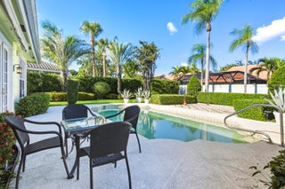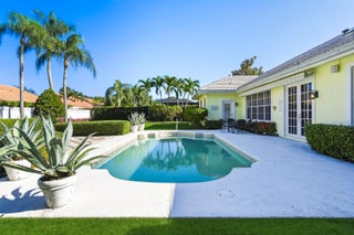 Elegant and tasteful one story home in sought after Bear Lakes Estates. Newly updated and immaculately maintained 4 Bedroom 3.5 bath residence is move-in ready. New roof 2019, newer three-zone HVAC, as well as new luxury updates to primary bath and two guest baths. With generous volume rooms, the soaring cathedral ceilinged chef's kitchen is a gourmet cook's dream. Viking gas cookware, Sub Zero, high-end St. Charles stainless steel cabinets and center island with granite countertops. New hickory hardwood floors are complemented by warm terra-cotta tiles in the living room. Custom plantation shutters provide optimal privacy and light control. Spacious primary suite with two walk-in closets offers privacy from the three large guest bedrooms.From the living room, french doors lead to a large and lushly landscaped garden and a beautiful pool and patio with electric retractable awning for relaxing and grilling. All windows fitted with fabric panels for storm protection. Fully fenced rear yard. Exclusive Bear Lakes Estates is conveniently near everything. Golf or Social membership at Bear Lakes Country Club is available but not mandatory. The community offers jogging and bike trails, tennis, basketball, picnic areas, and more. Perfect for the Palm Beach lifestyle. 24 hour manned gate. A must see.